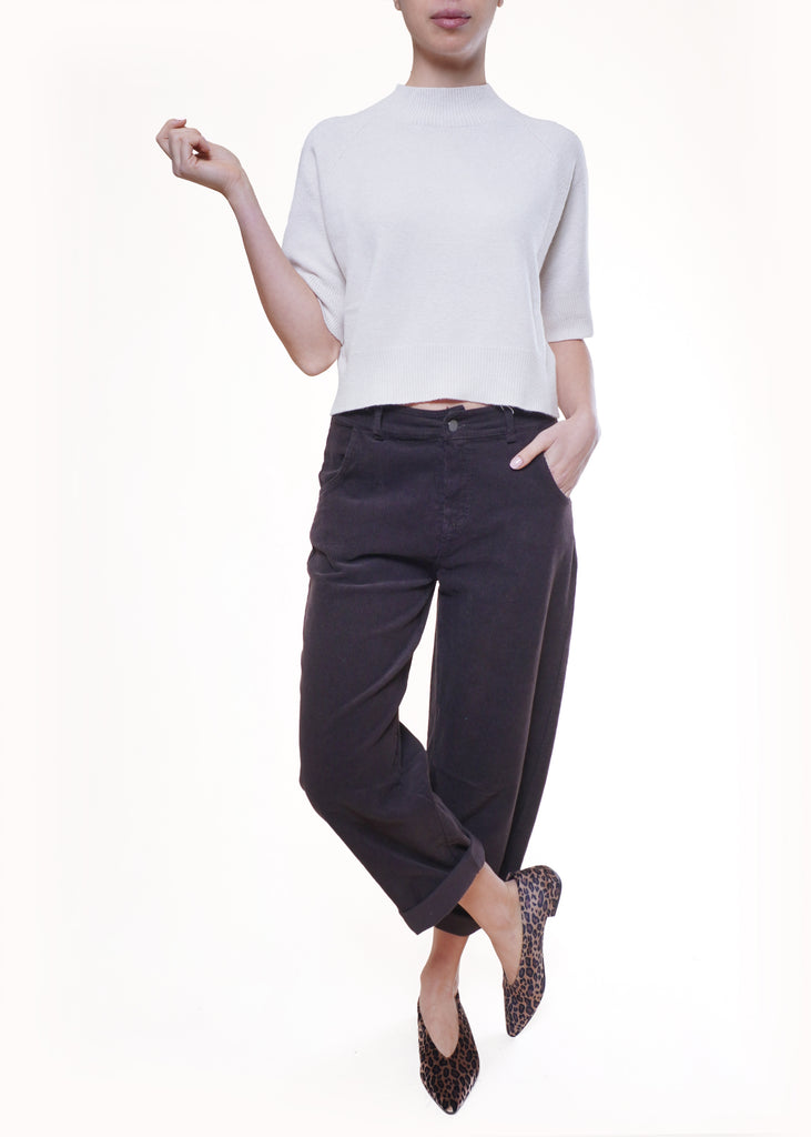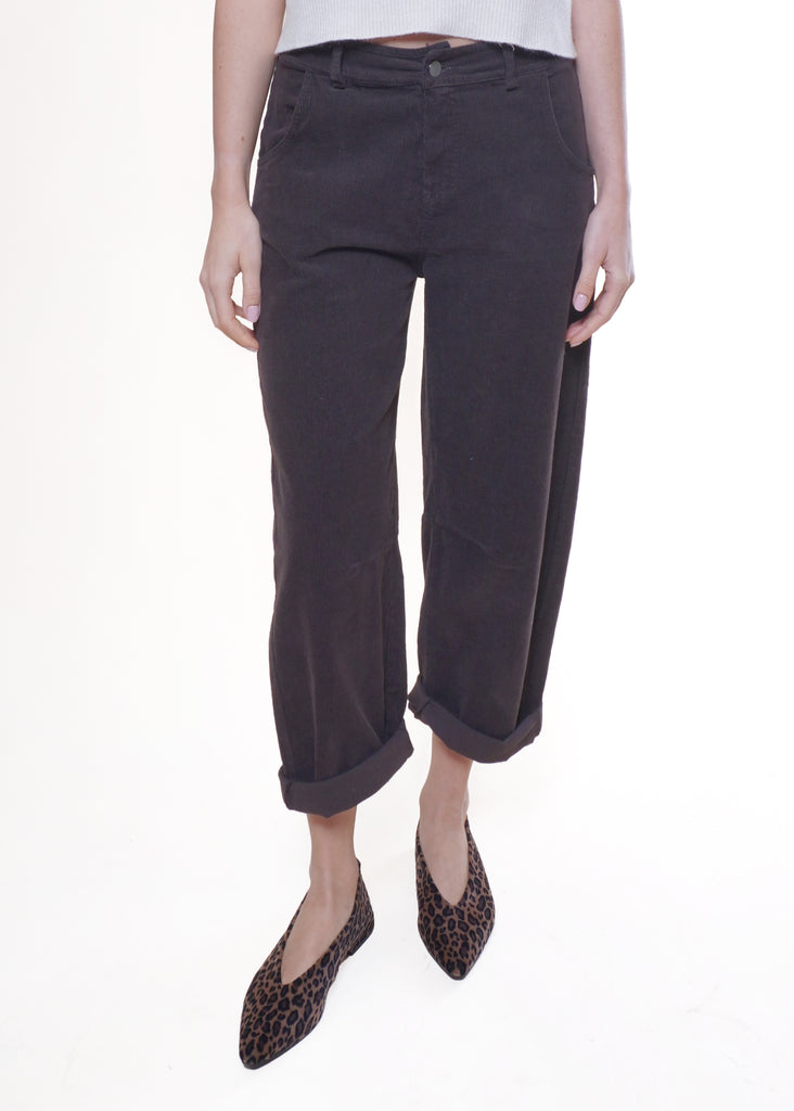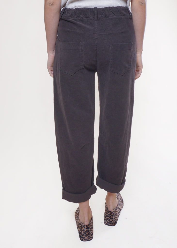 Motel - Pantalone barrel in velluto con elastico - MORO