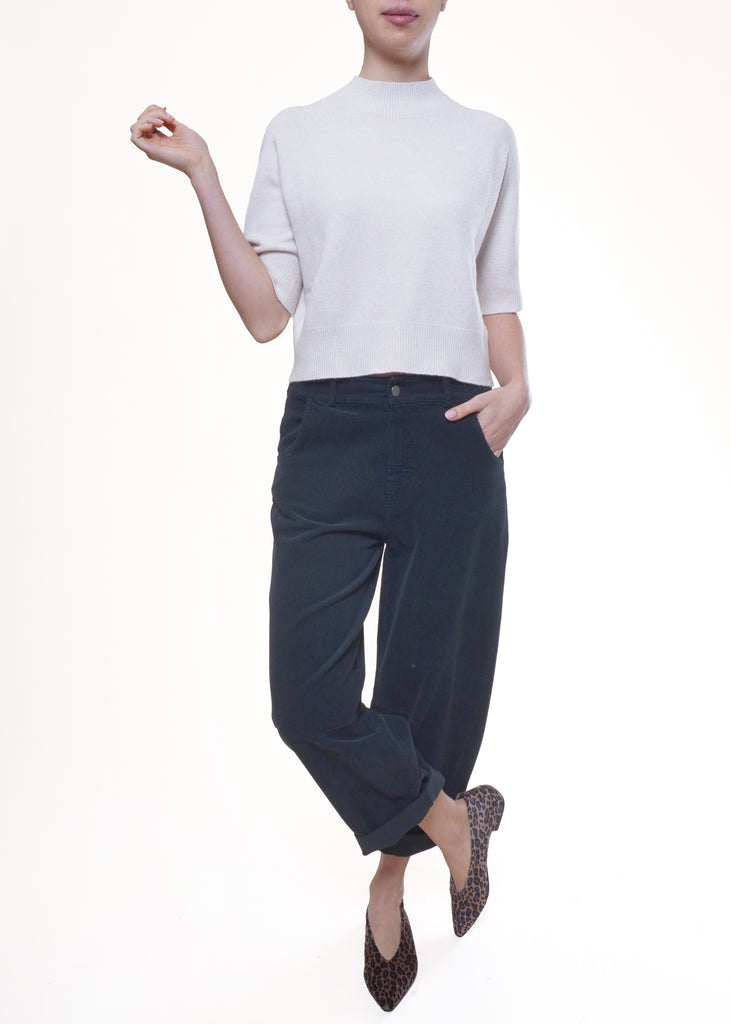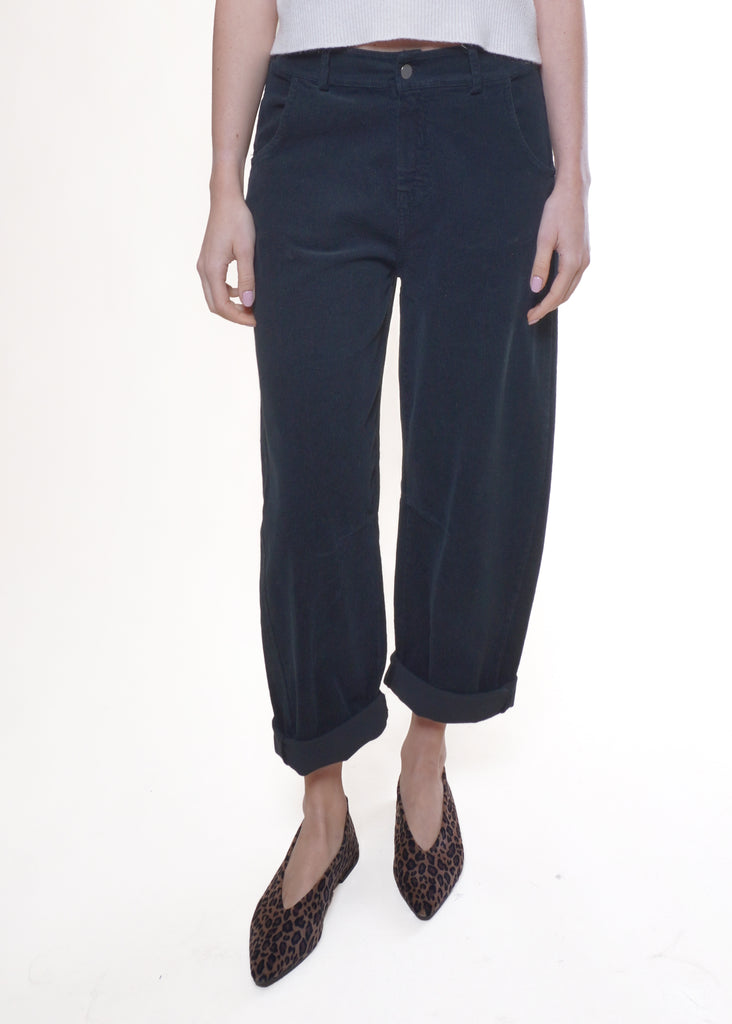 Motel - Pantalone barrel in velluto con elastico - NERO
