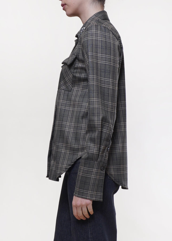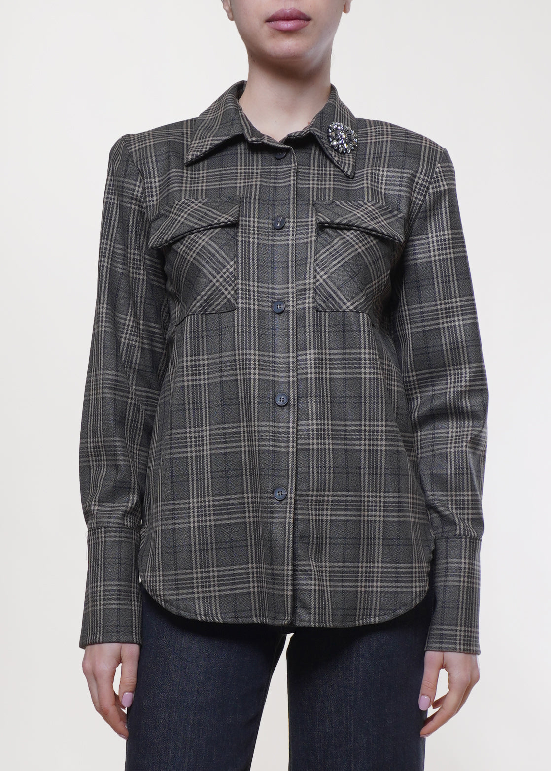 Motel - Camicia stampa check con spilla - MORO