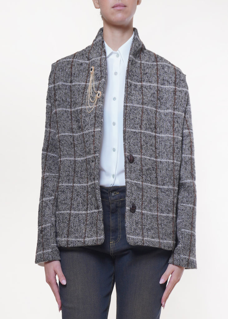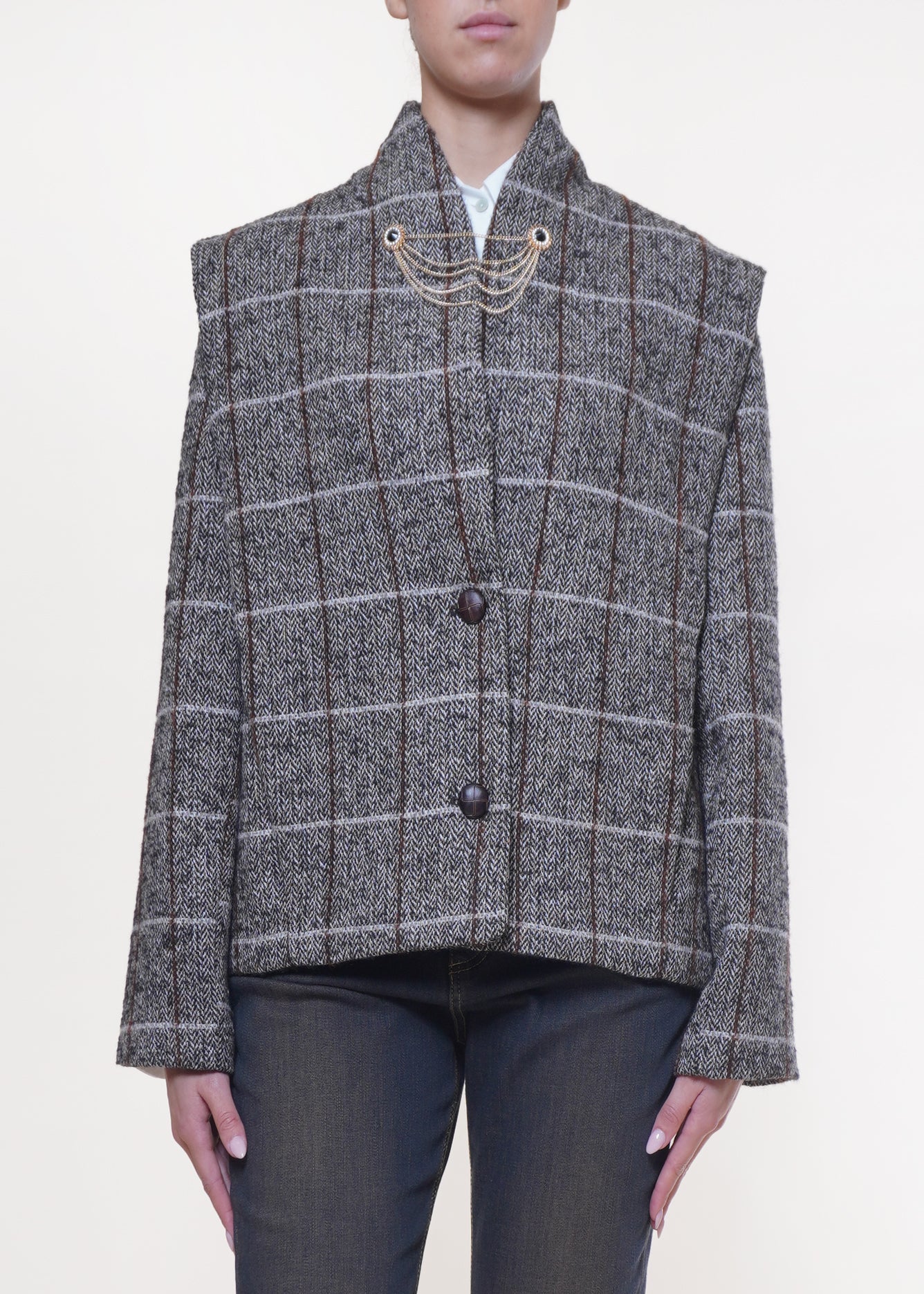 Motel - Giacca spinata con spilla misto lana - MORO/NERO