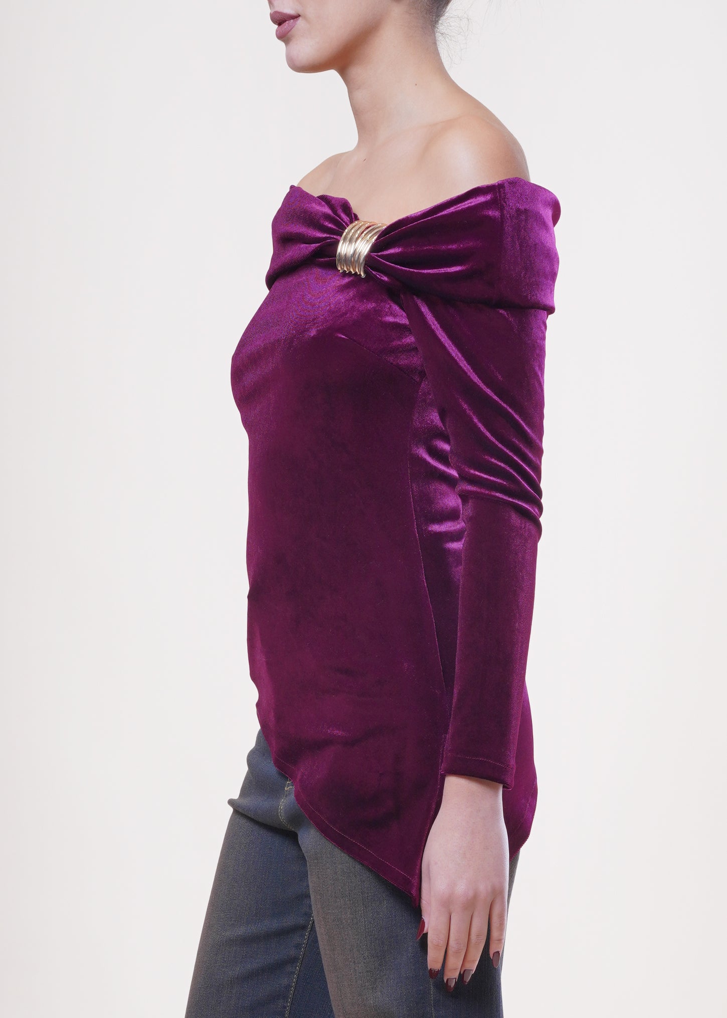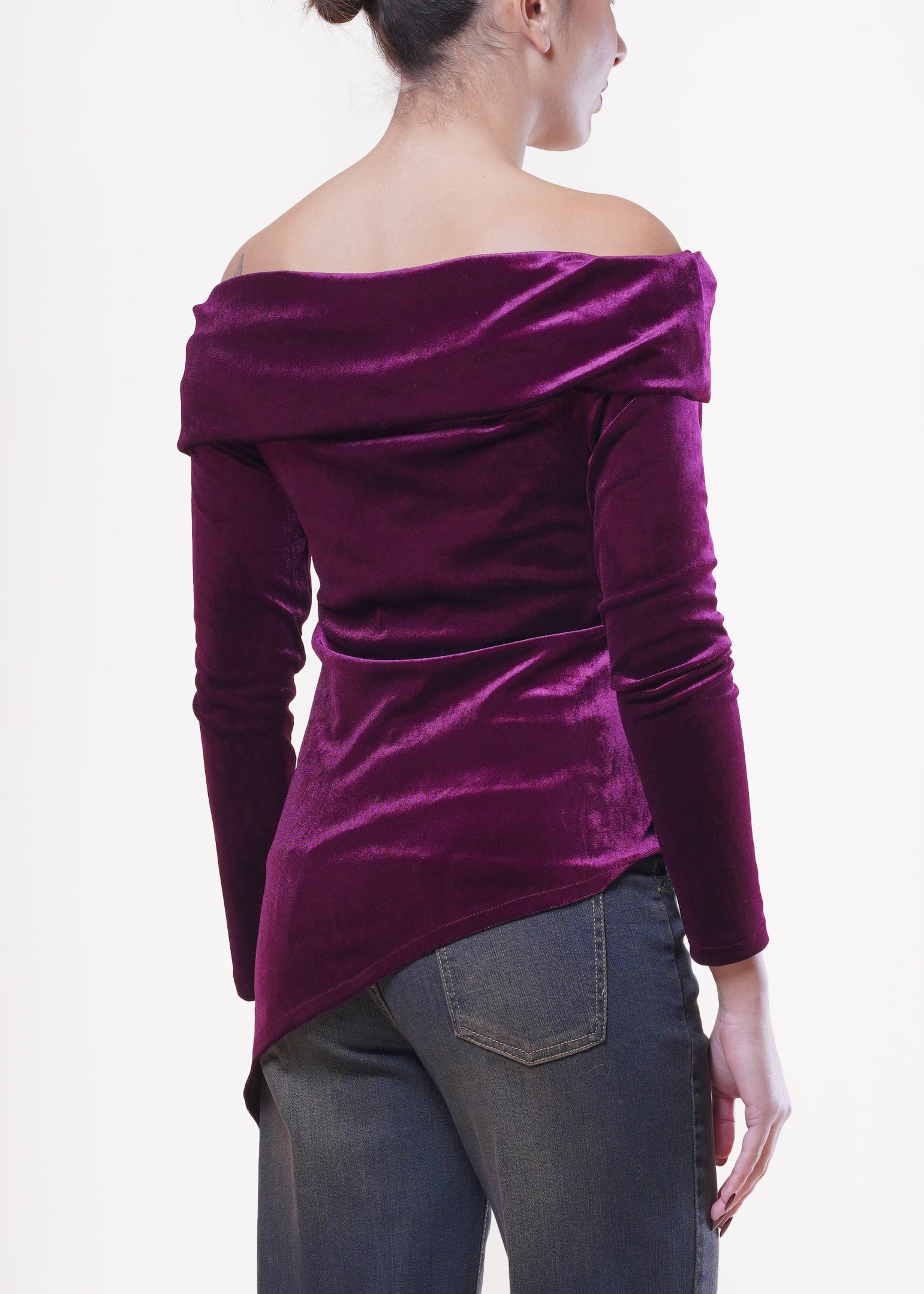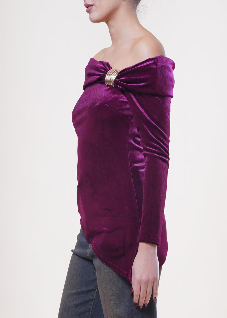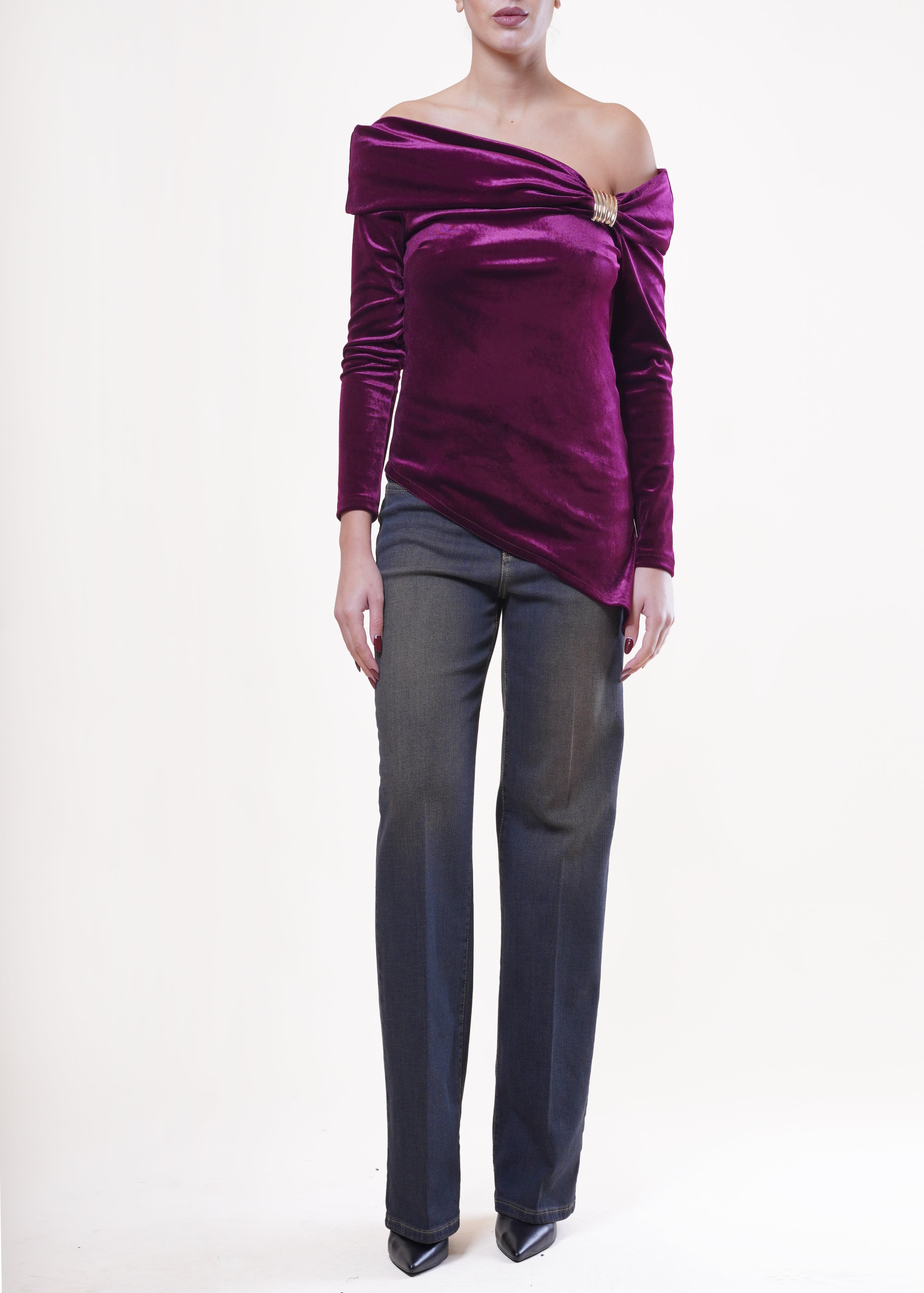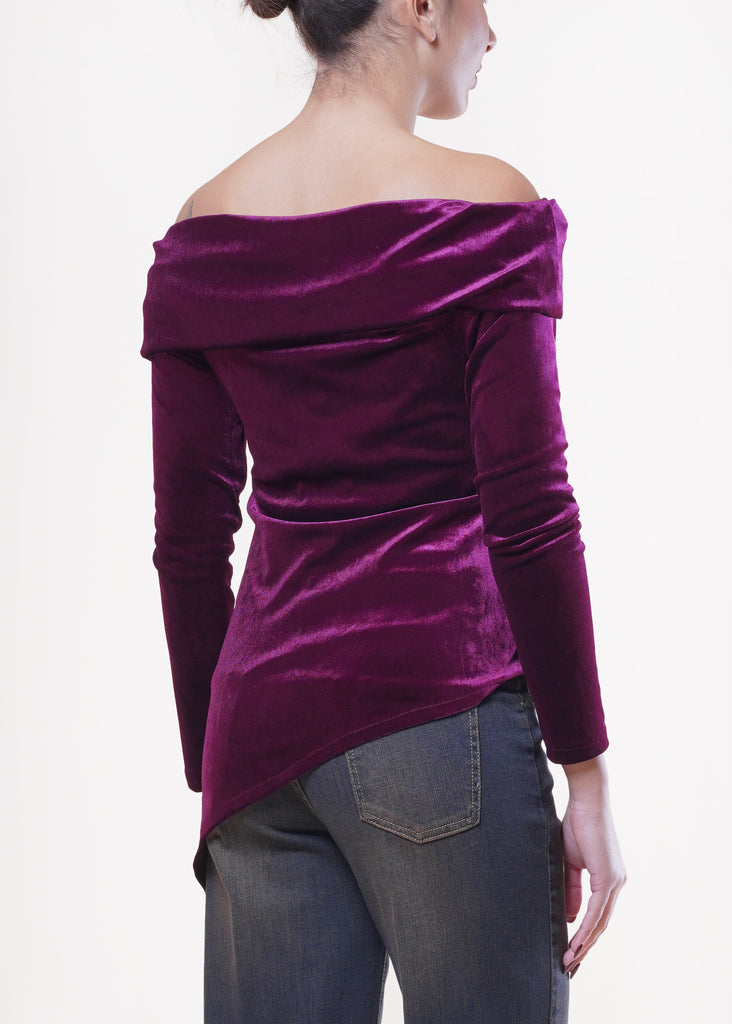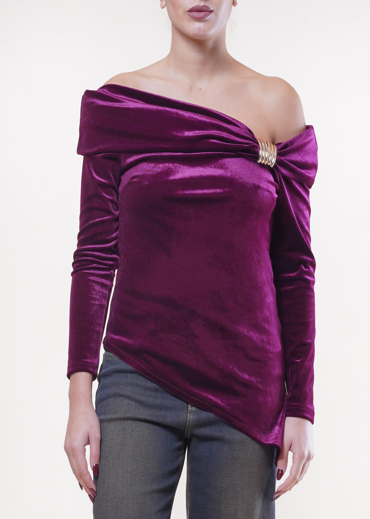 Motel - Maglia in velluto asimmetrica - BORDEAUX