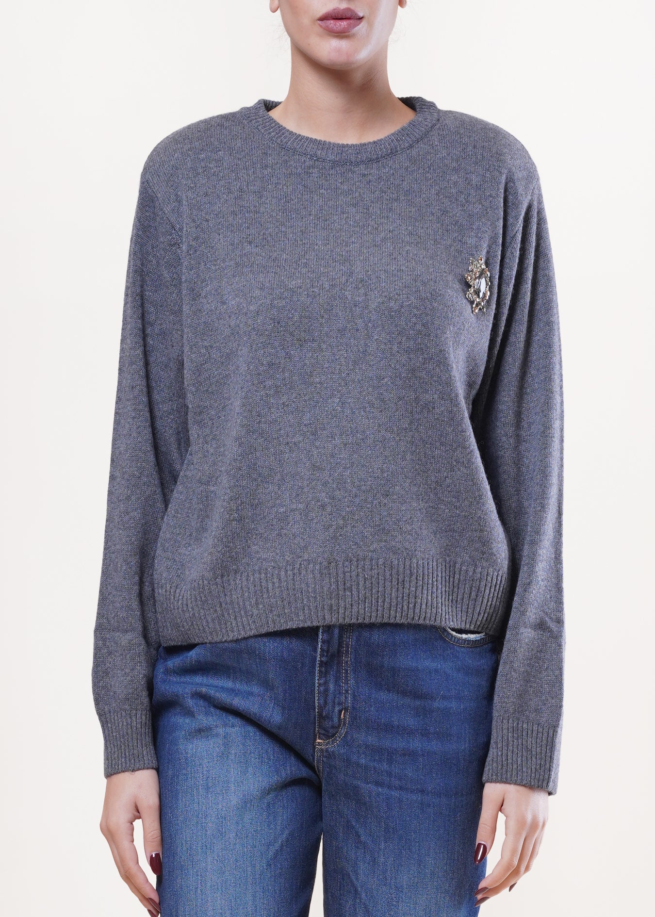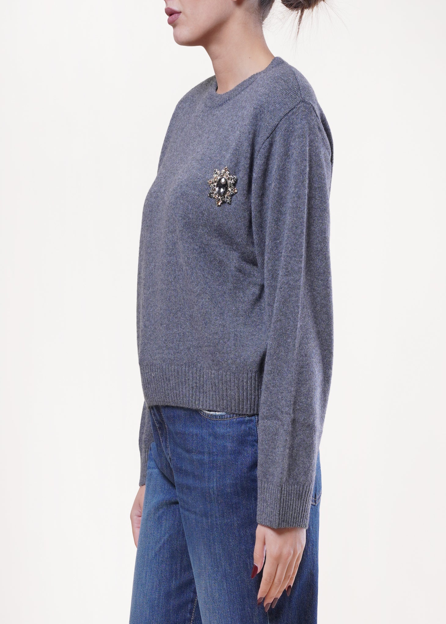 Motel - Maglia girocollo con spilla in misto lana - ANTRACITE