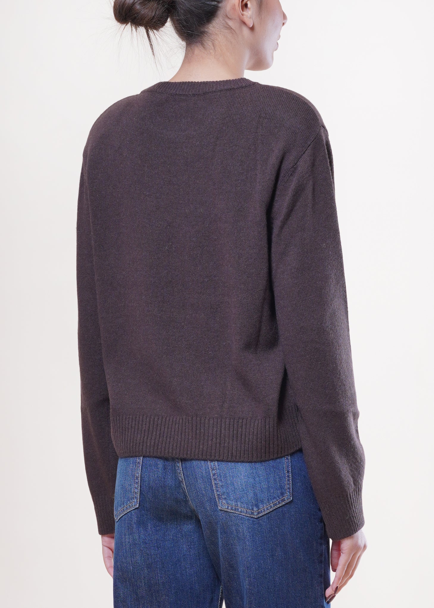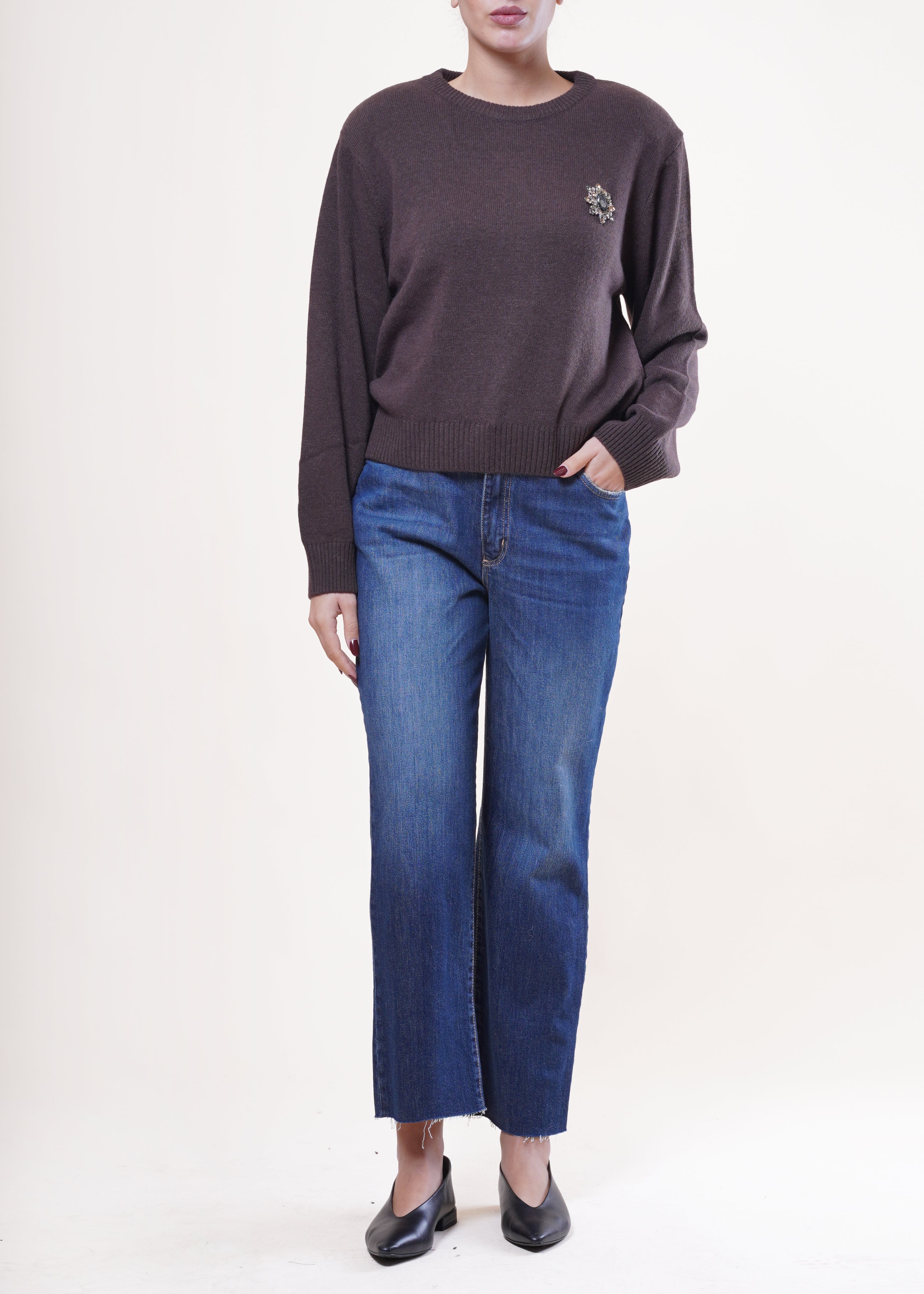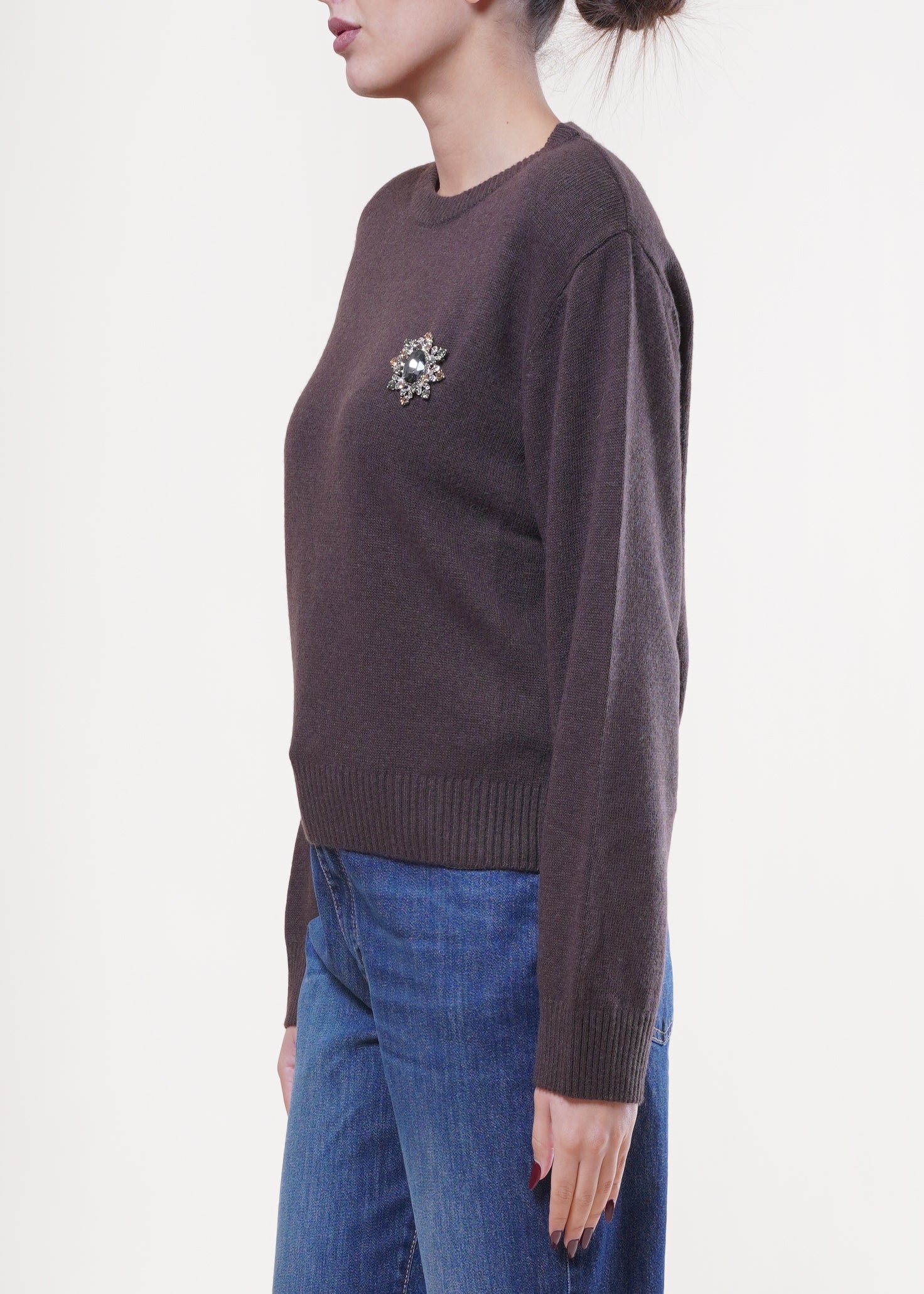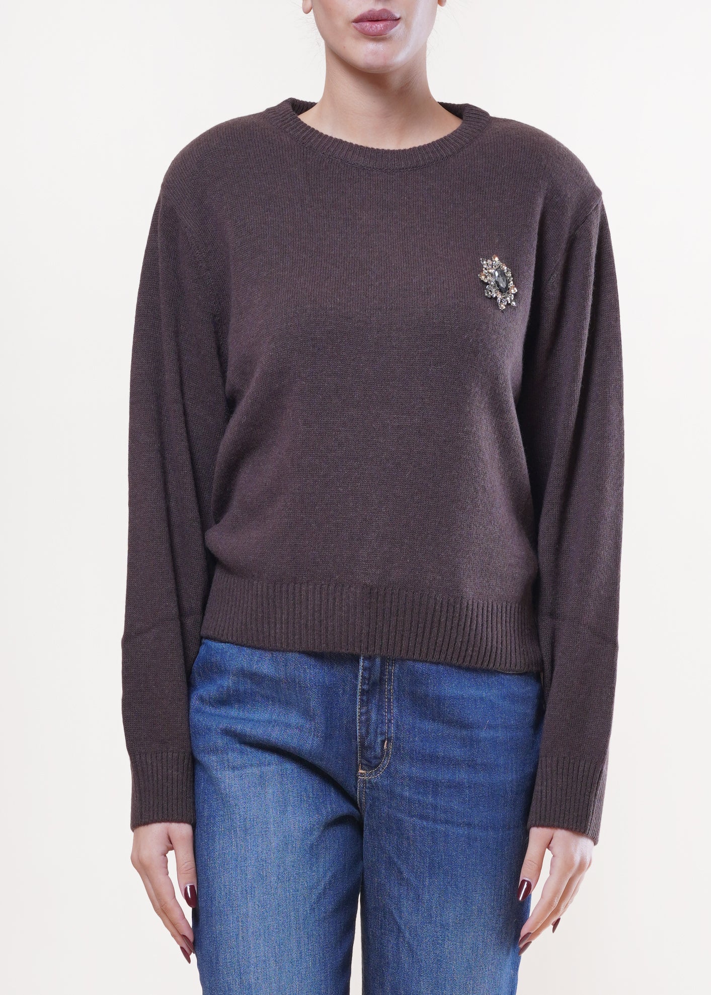 Motel - Maglia girocollo con spilla in misto lana - MORO