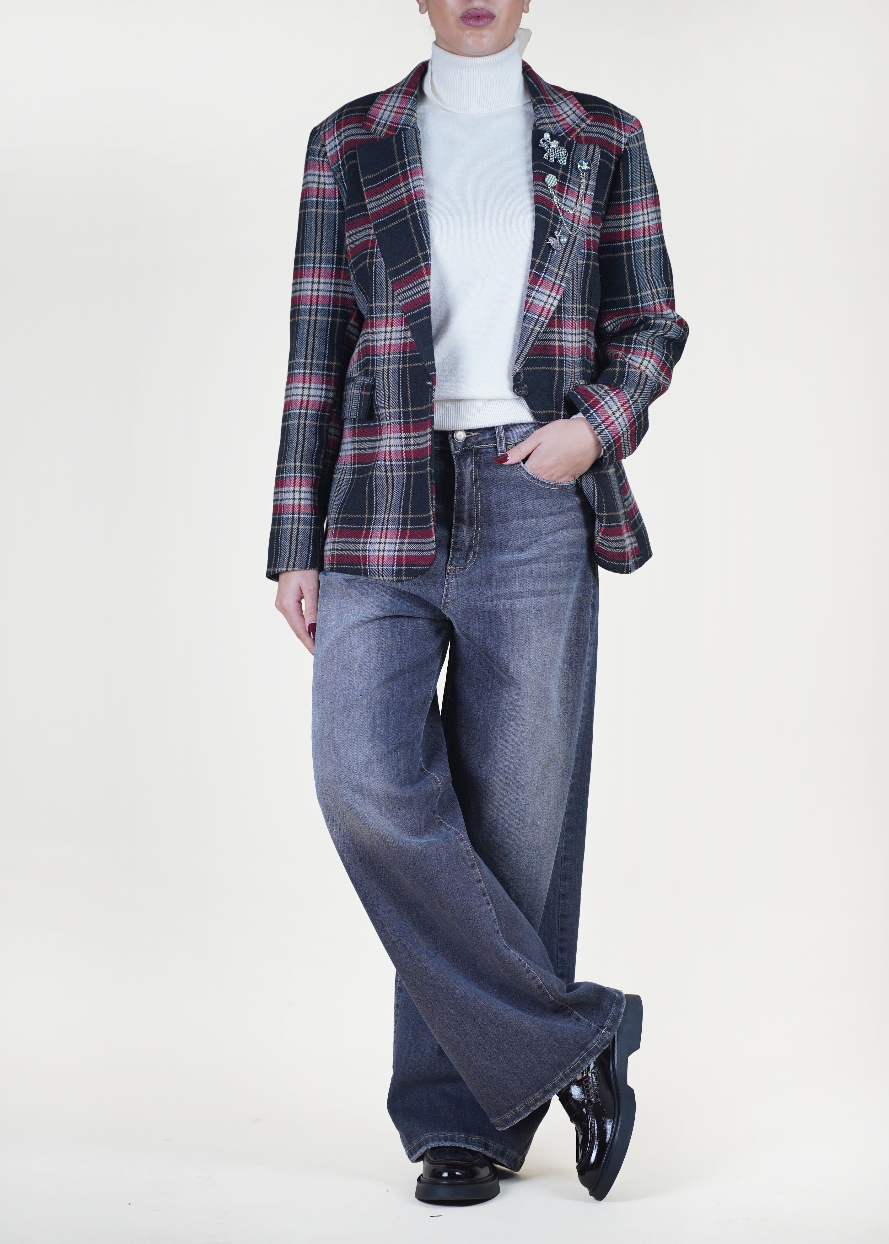 Motel - Giacca check con spille misto lana - VARIANTE UNICA