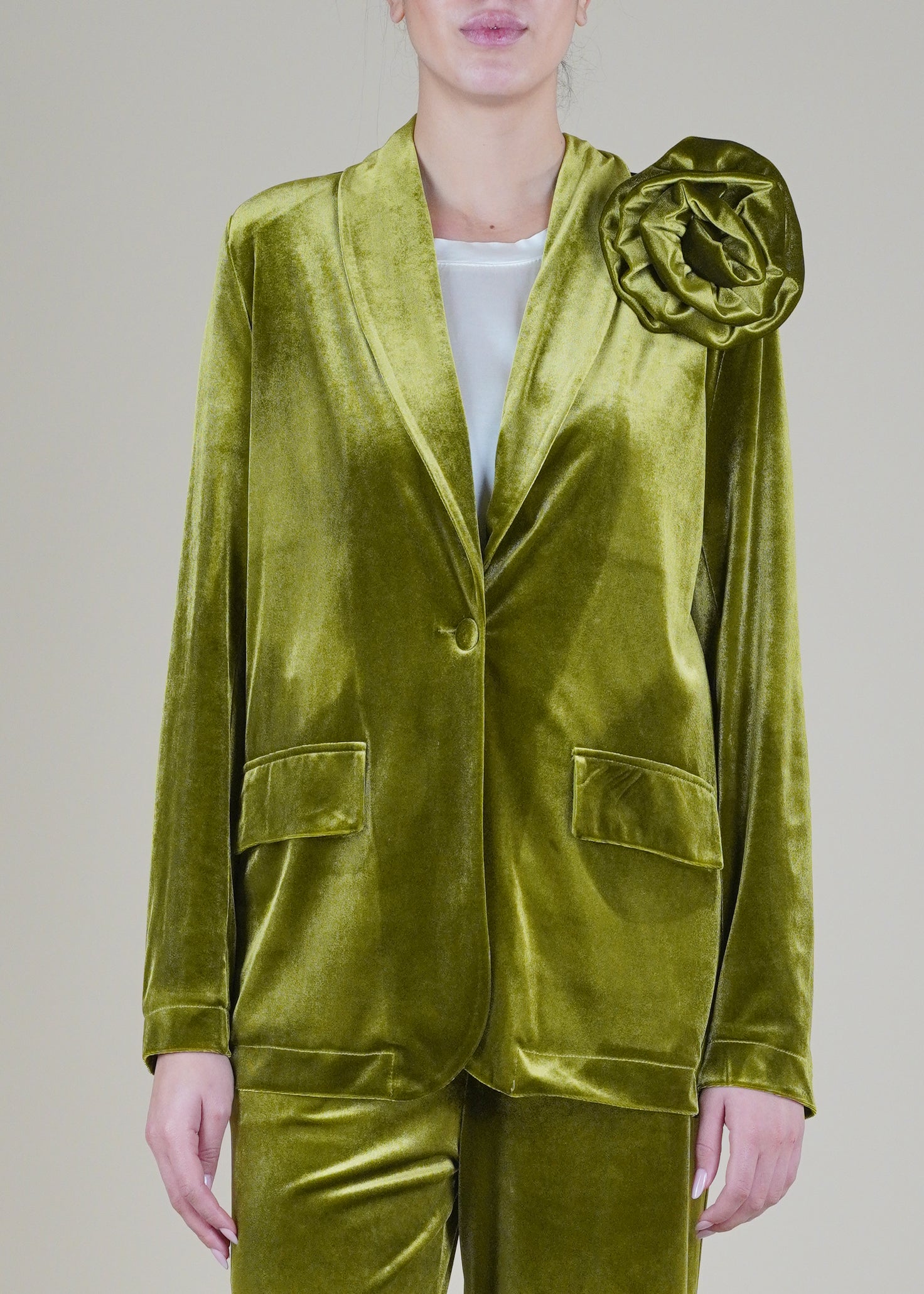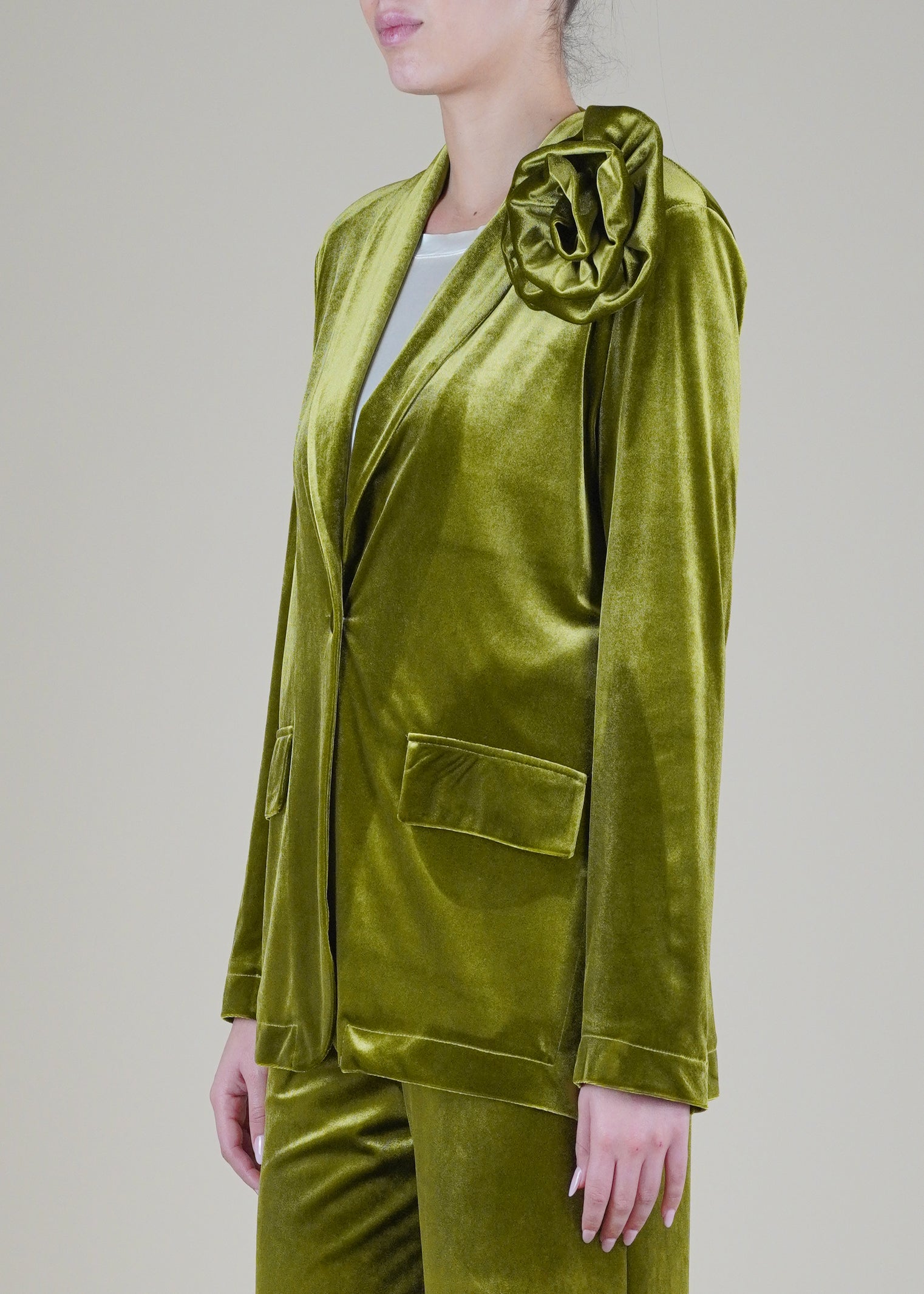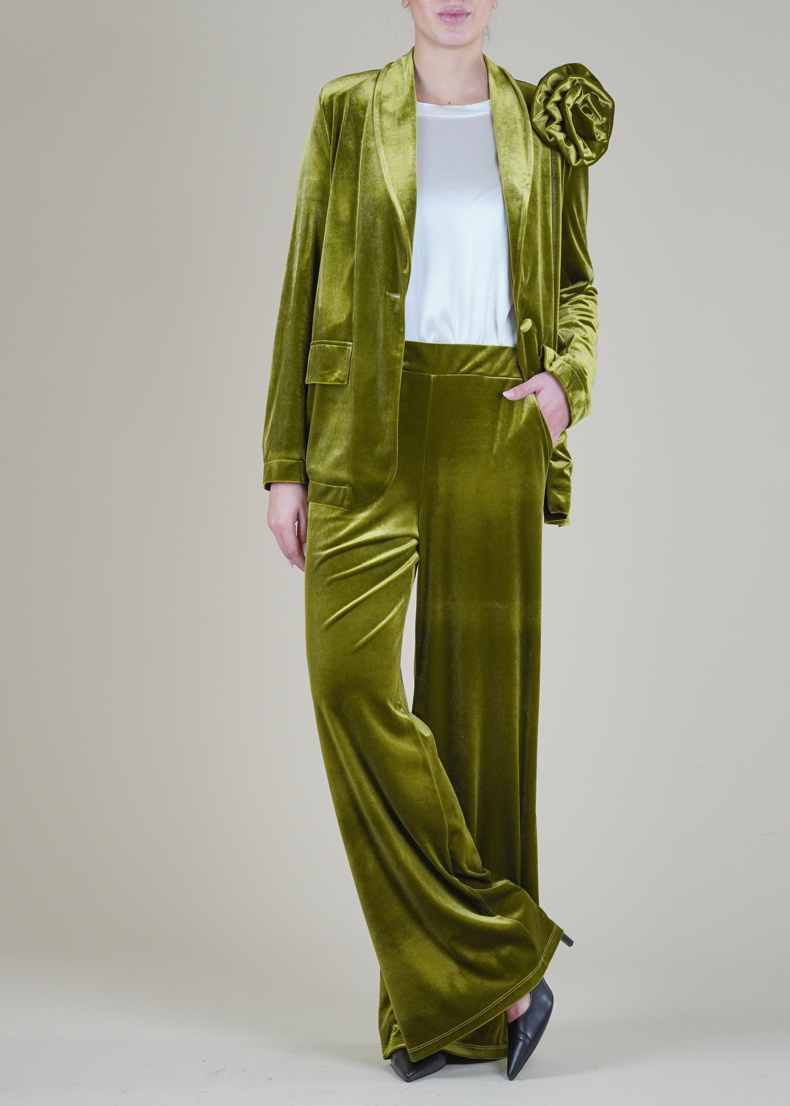 Motel - Giacca in velluto liscio con spilla - OLIO