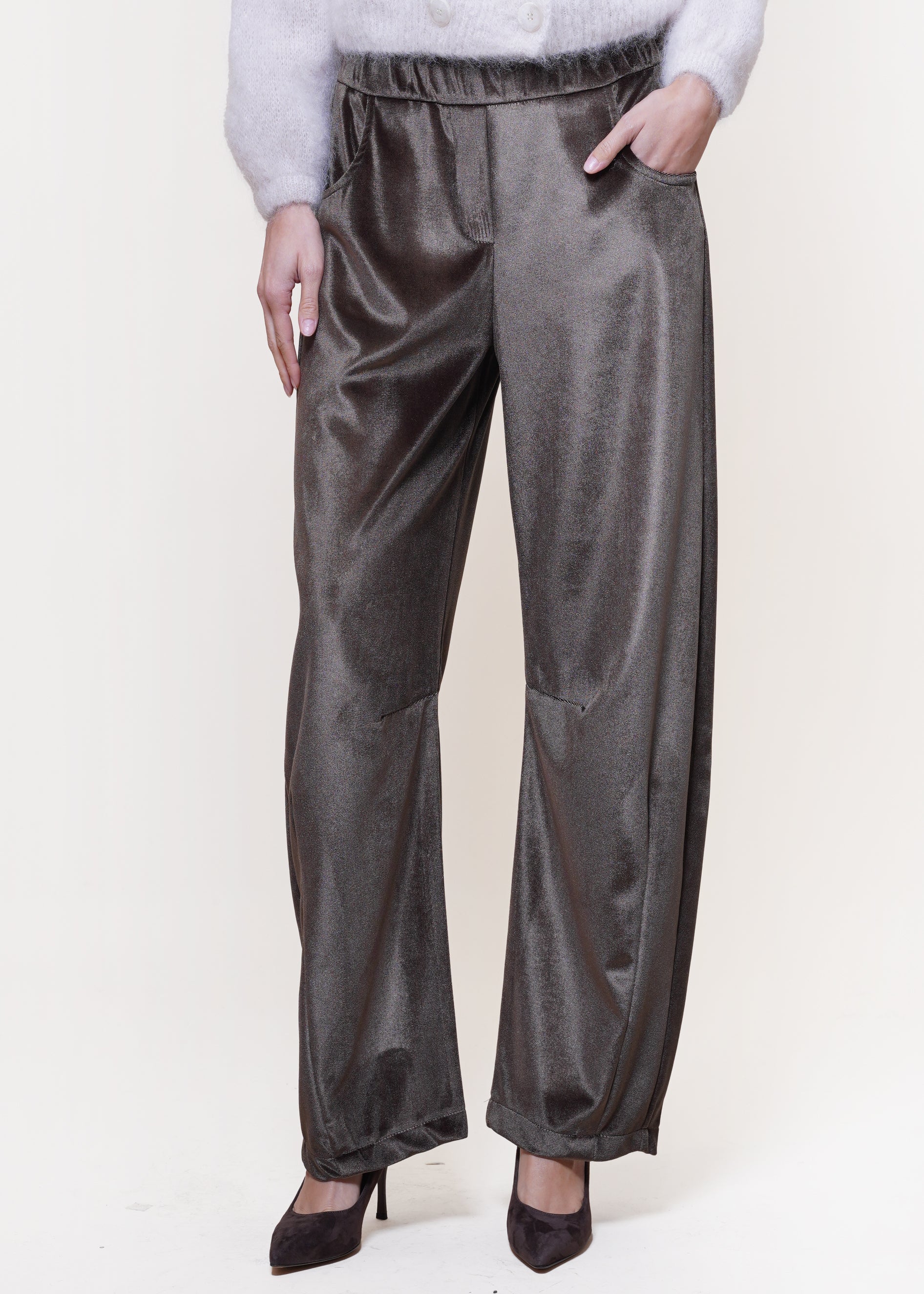 Motel - Pantalone barrel in velluto - MORO