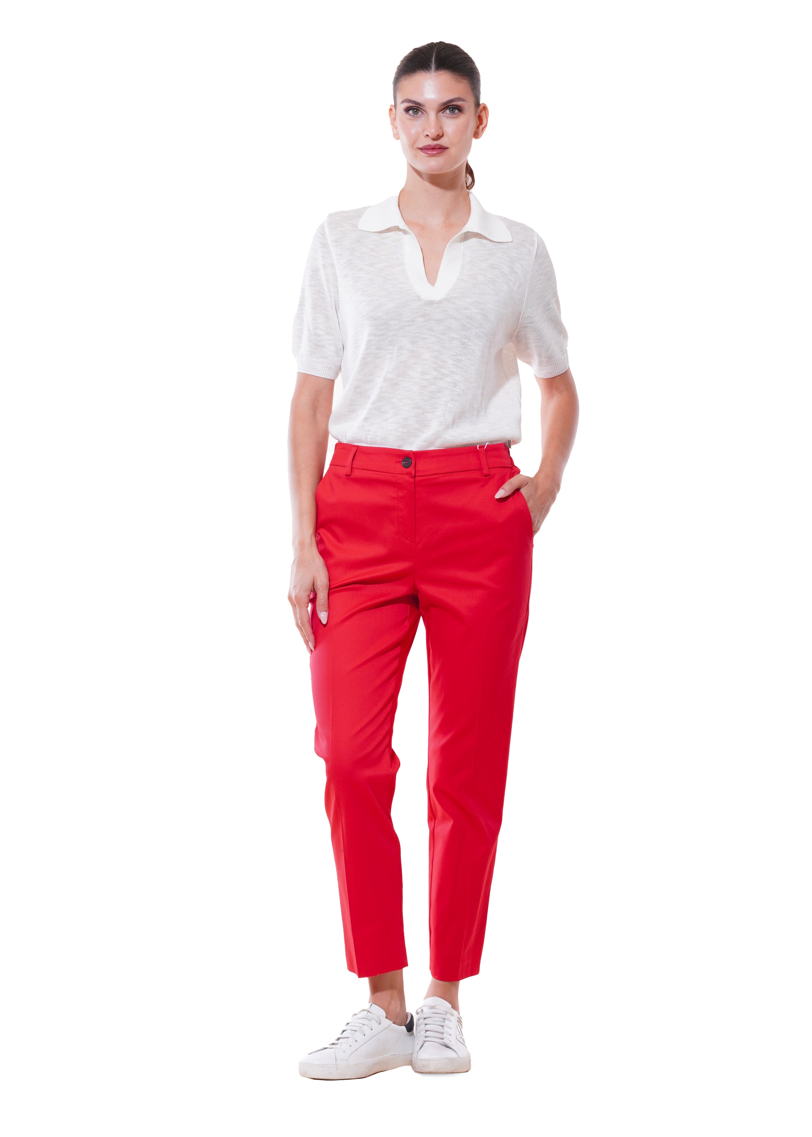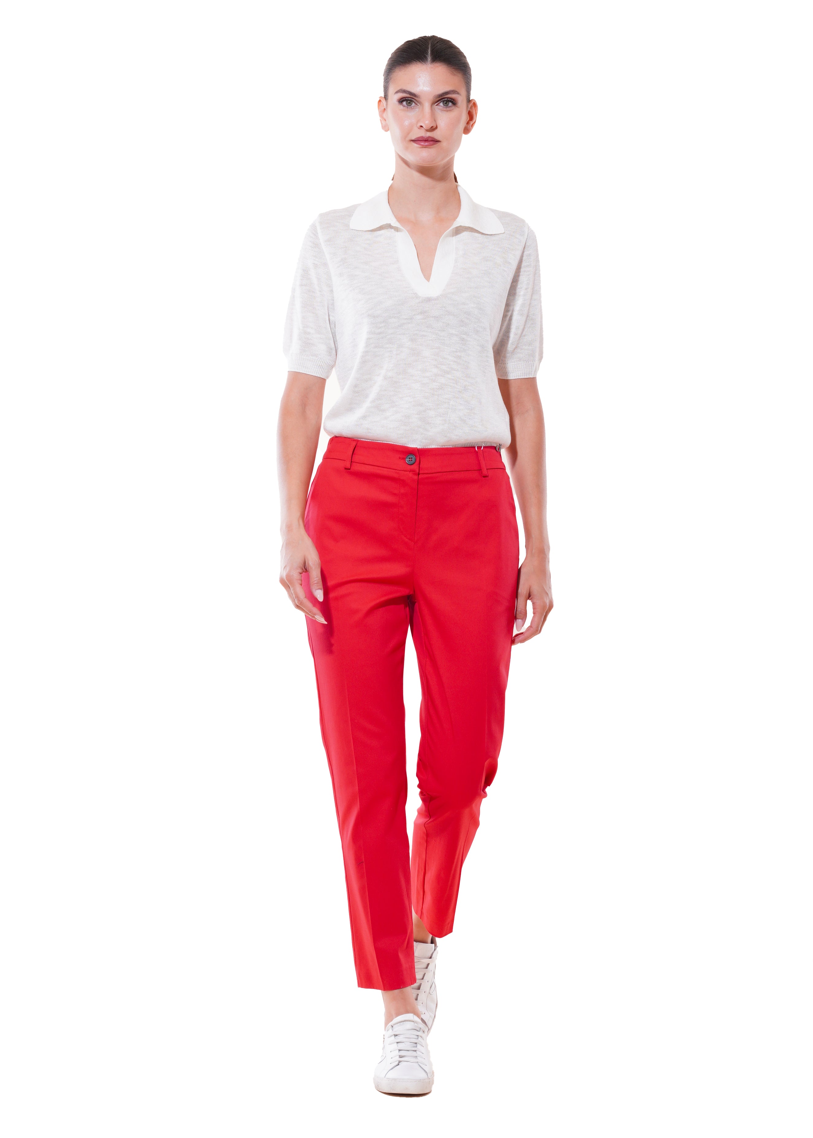 Motel - Pantalone in cotone con elastico in vita - ROSSO