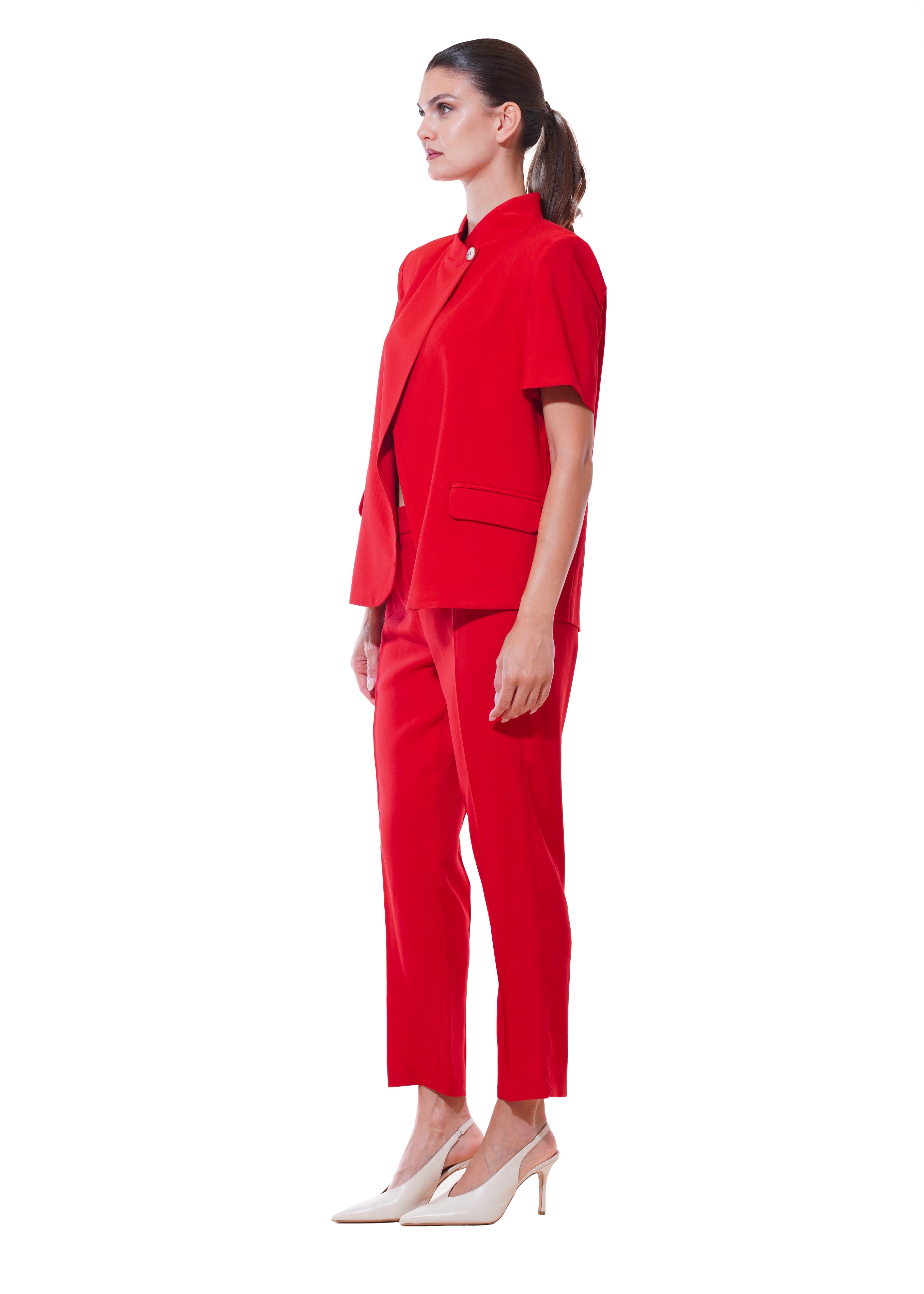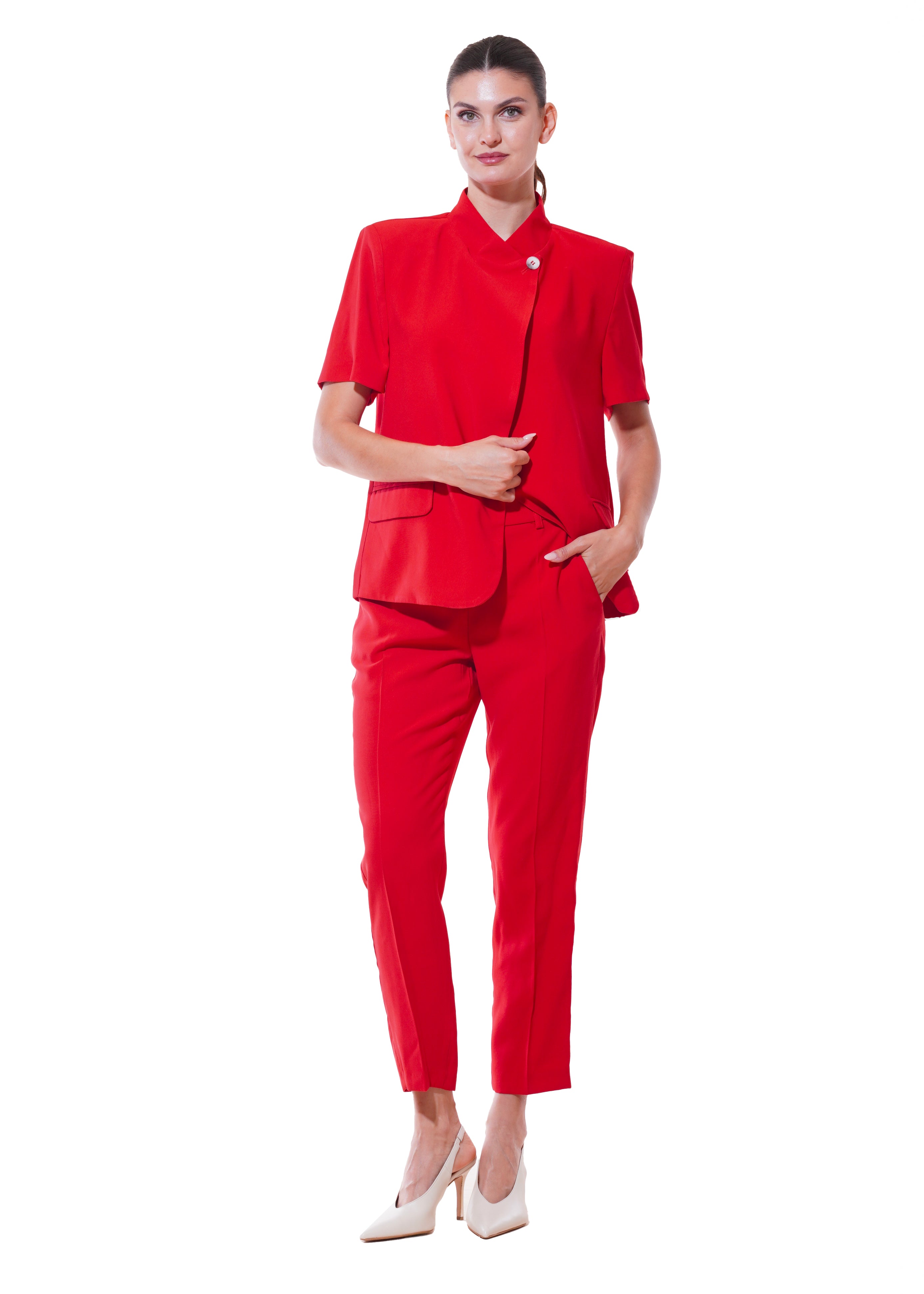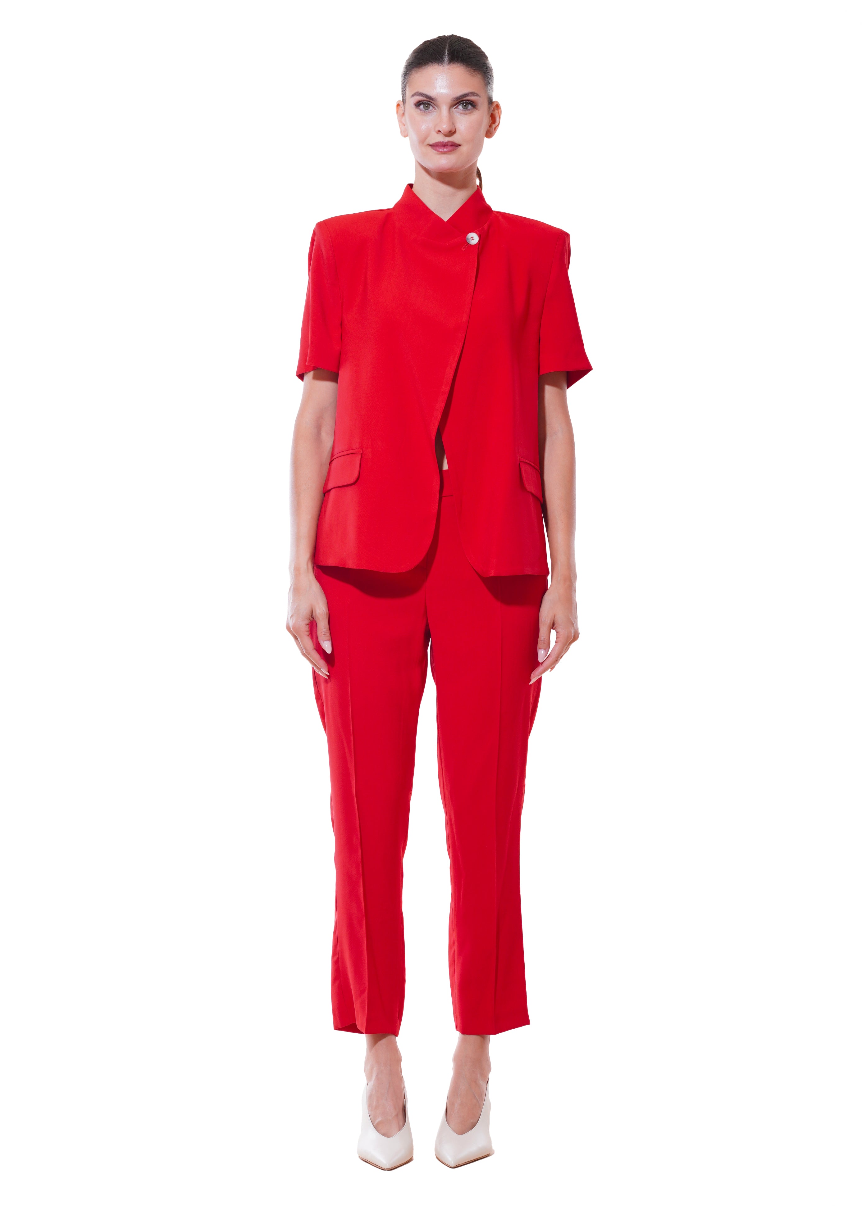 Motel - Completo giacca asimmetrica e pantalone - ROSSO
