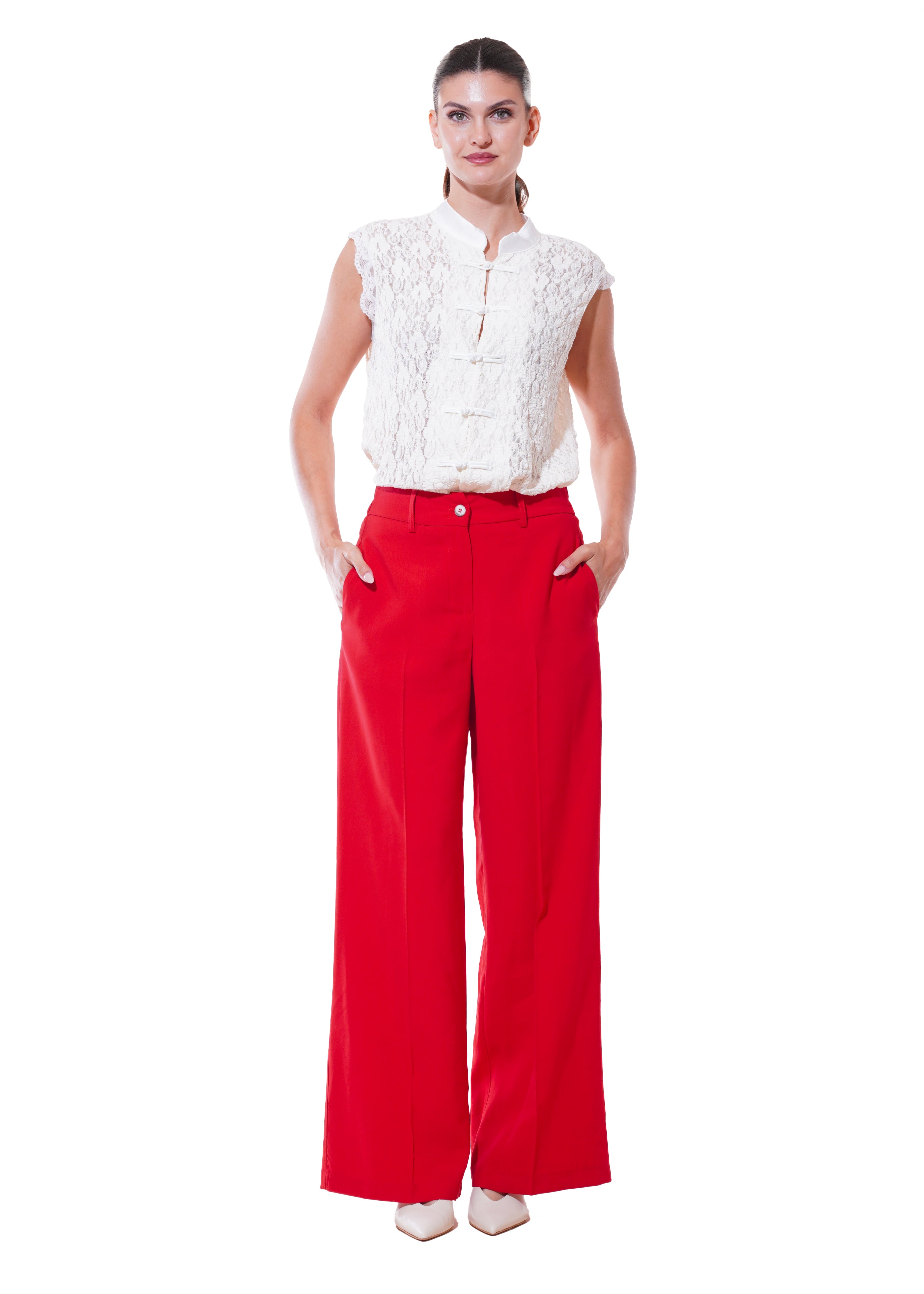 Motel - Pantalone palazzo con elastico in vita - ROSSO