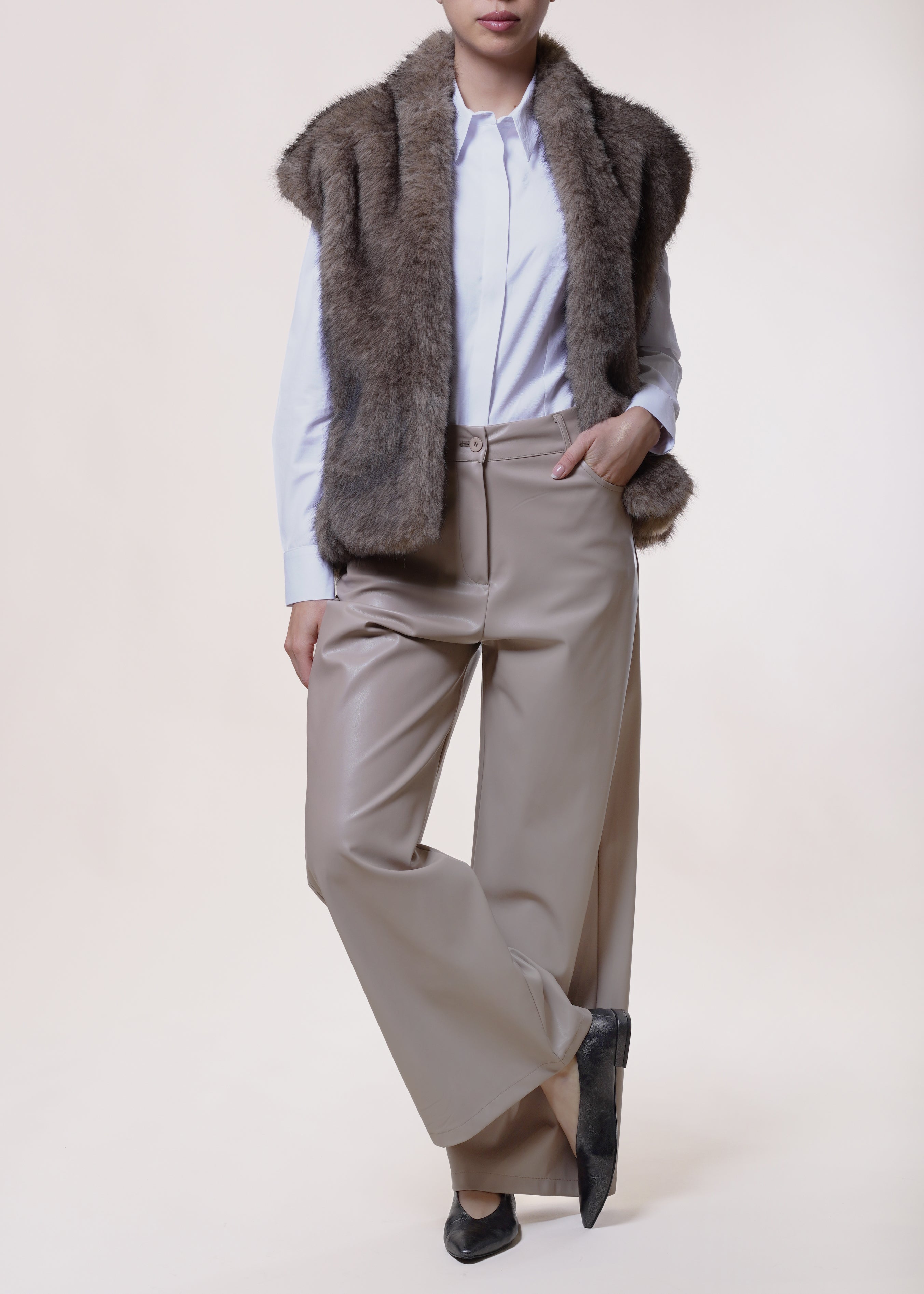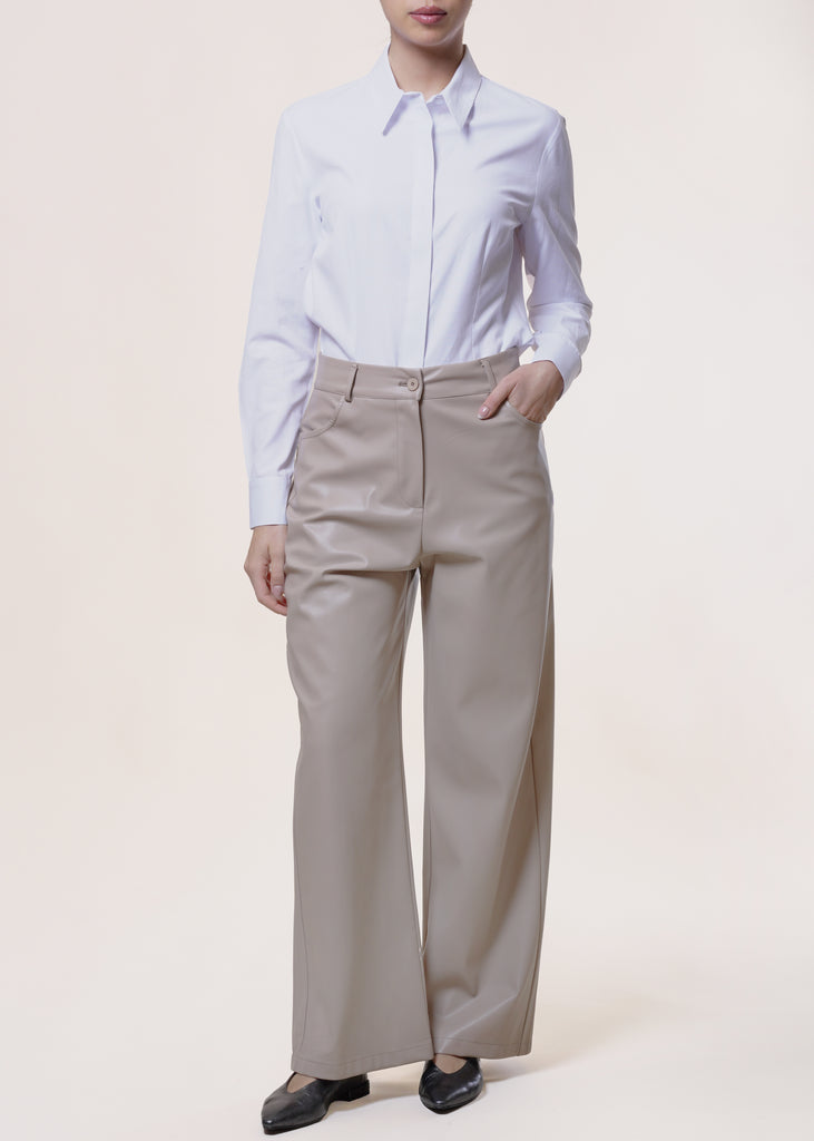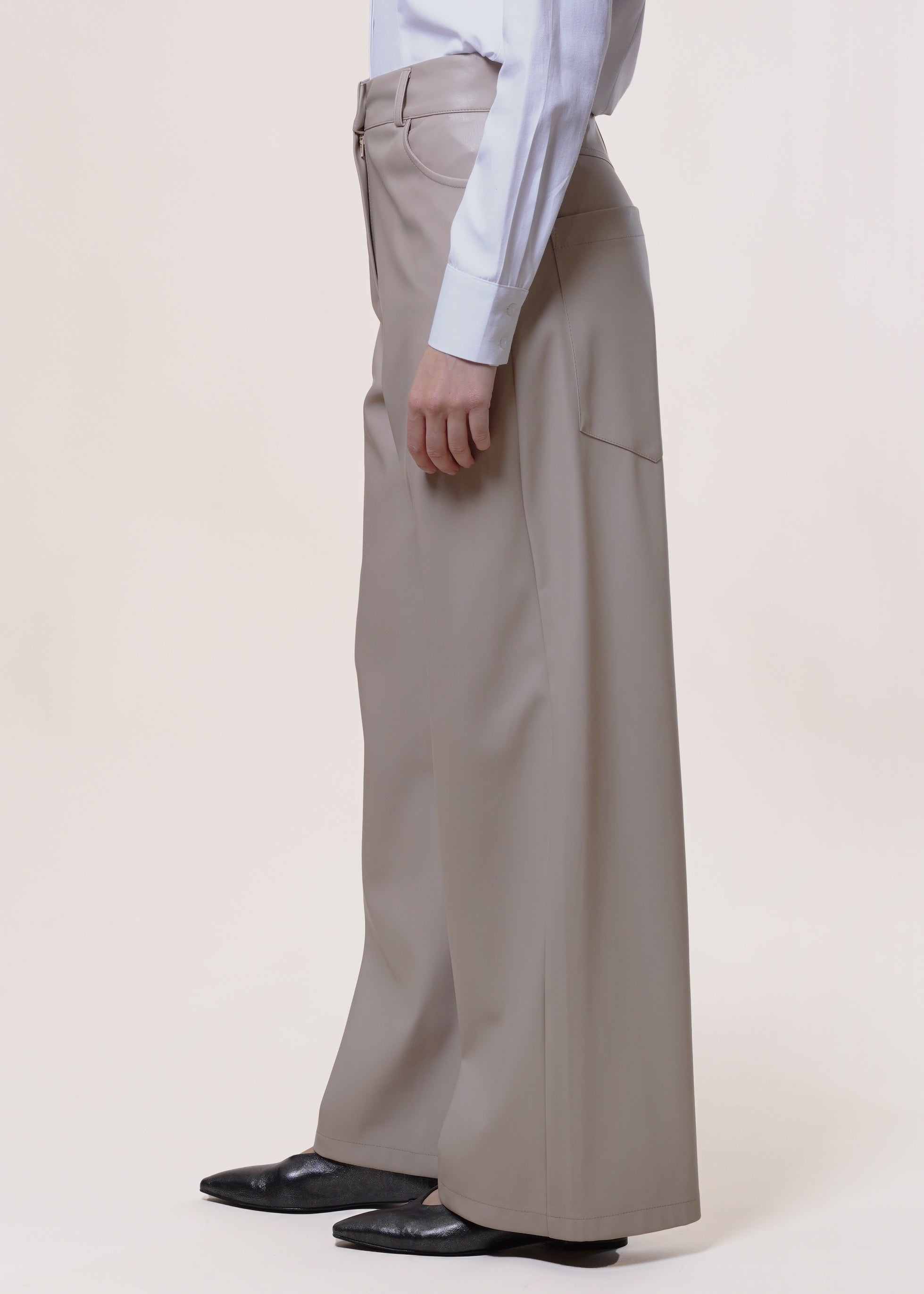 Dixie - Pantalone wide leg in eco-pelle - CREMA