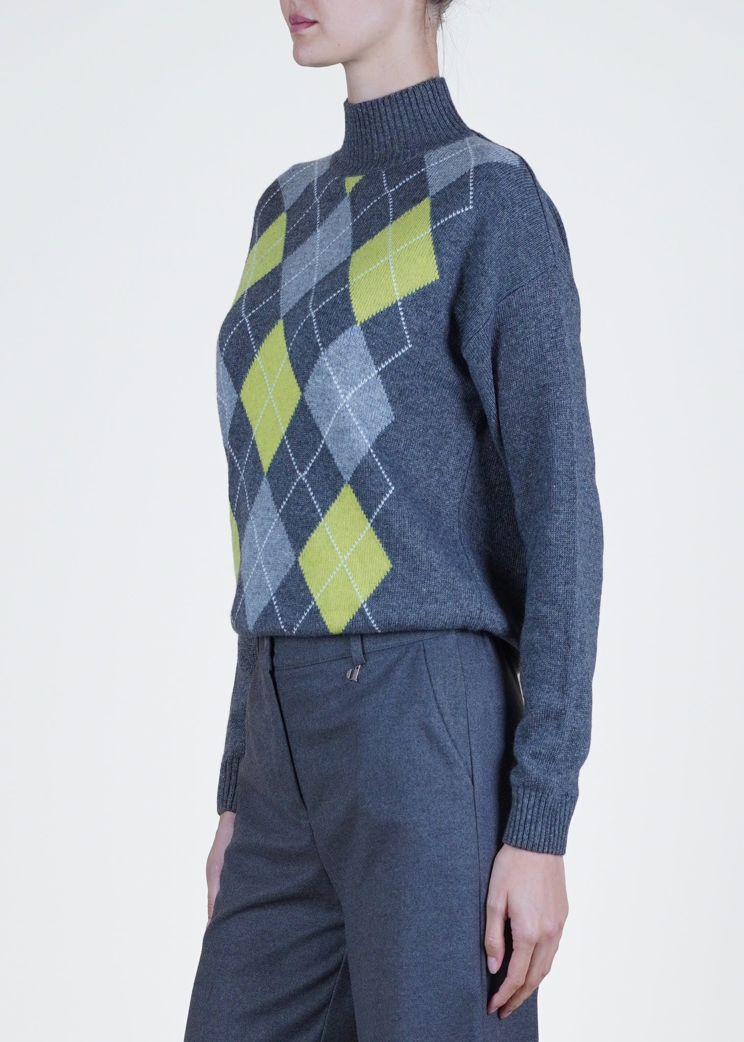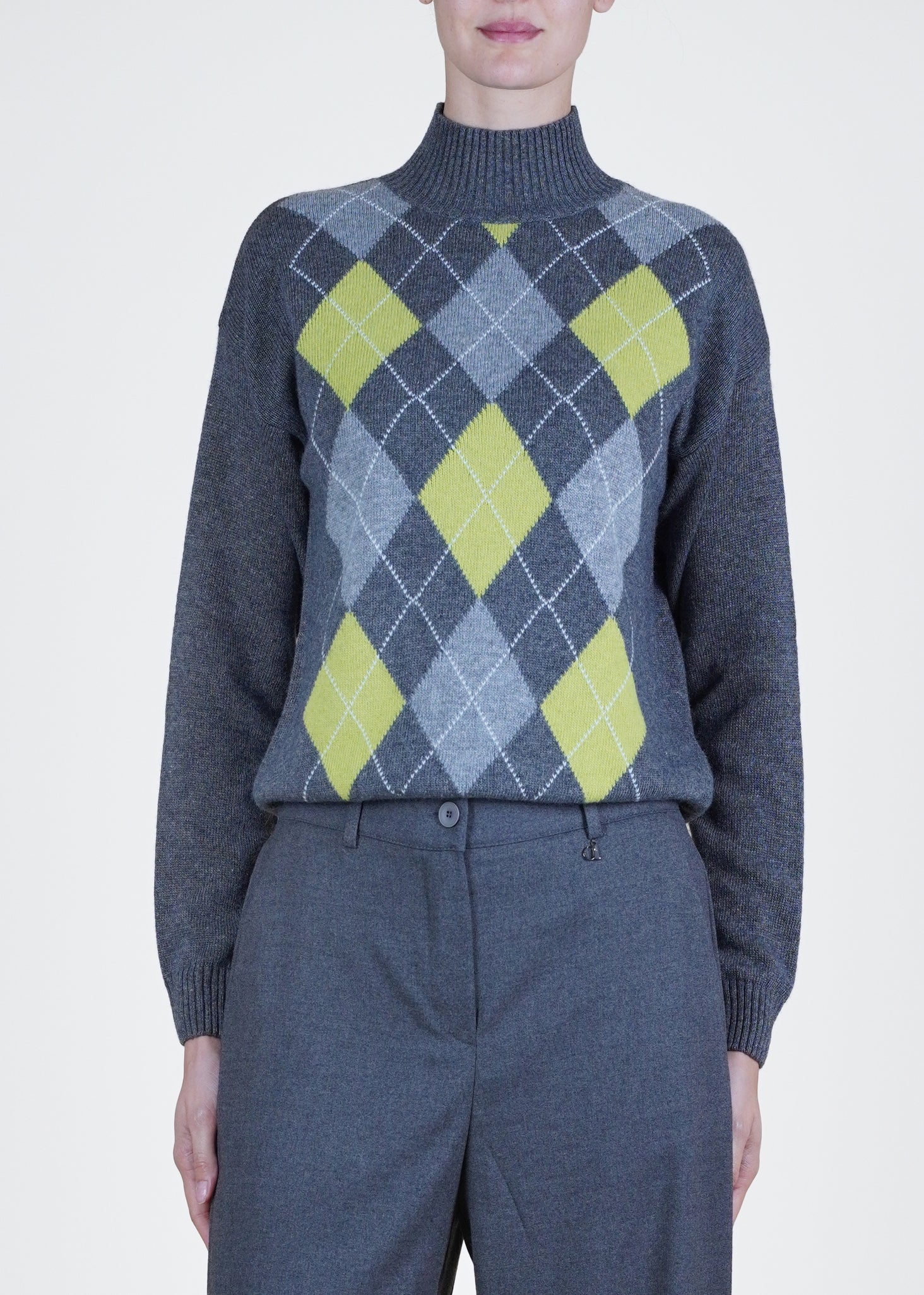 Motel - Maglia a rombi misto lana e cachemire - LIME