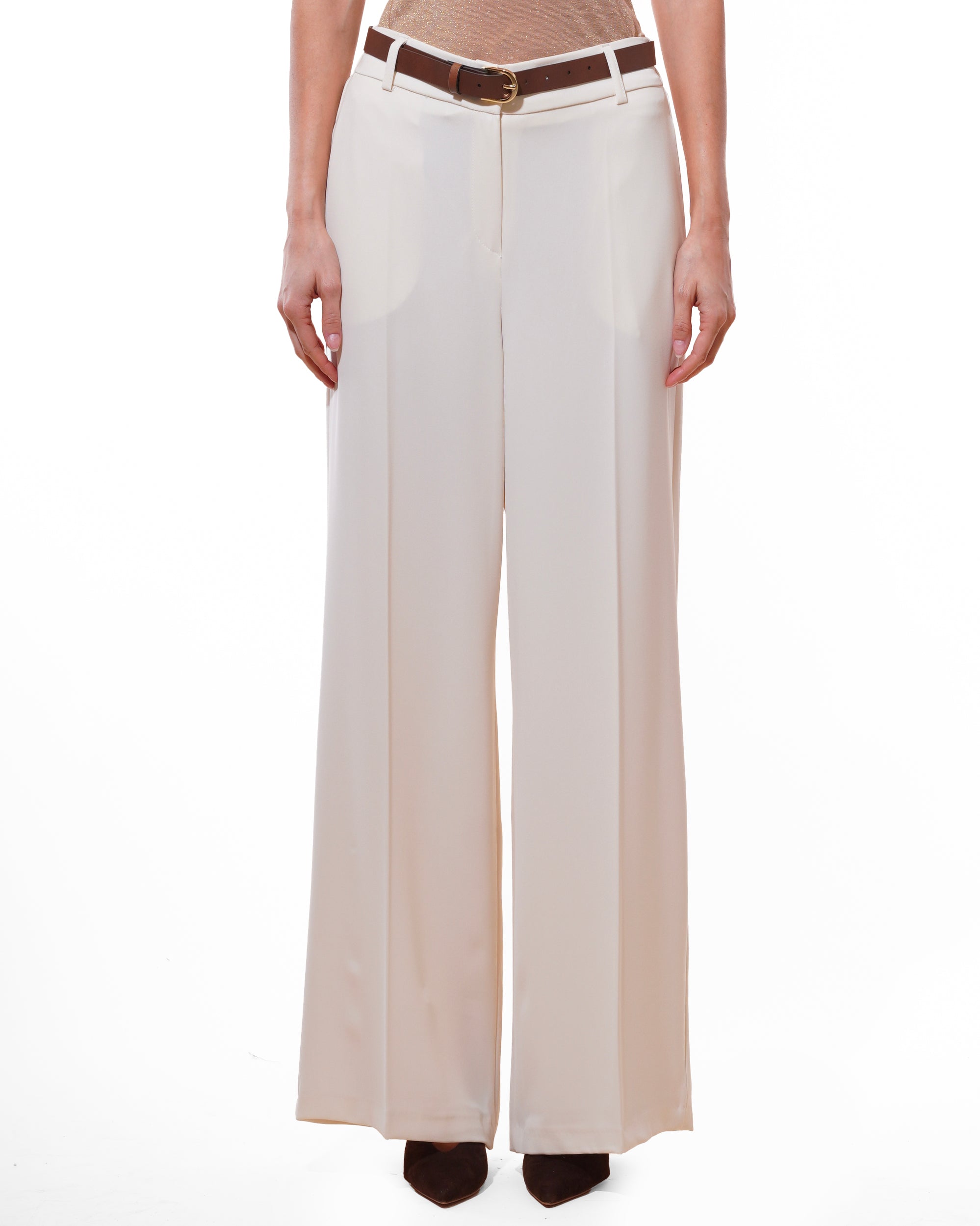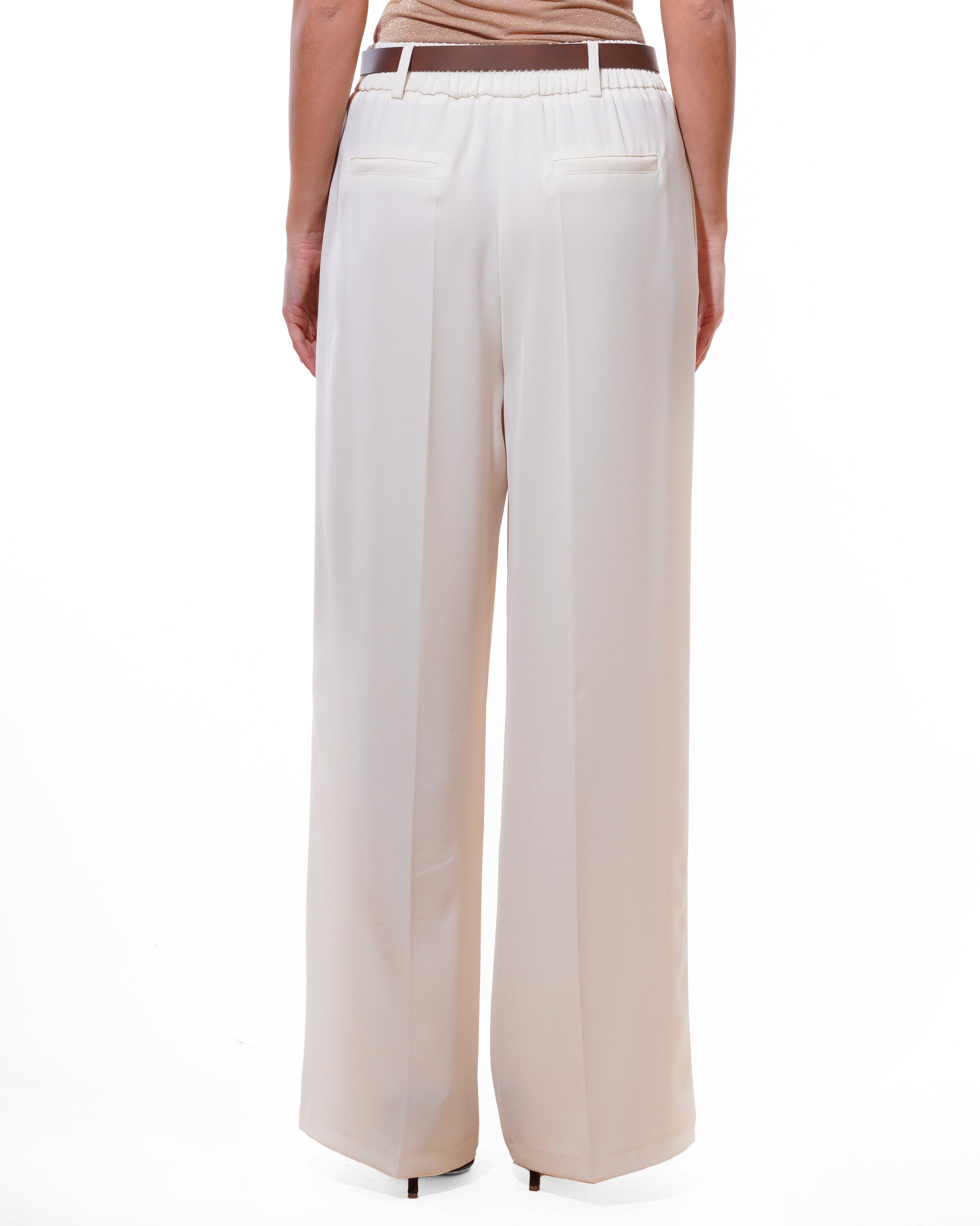 Motel - Pantalone palazzo con elastico in vita - PANNA