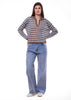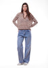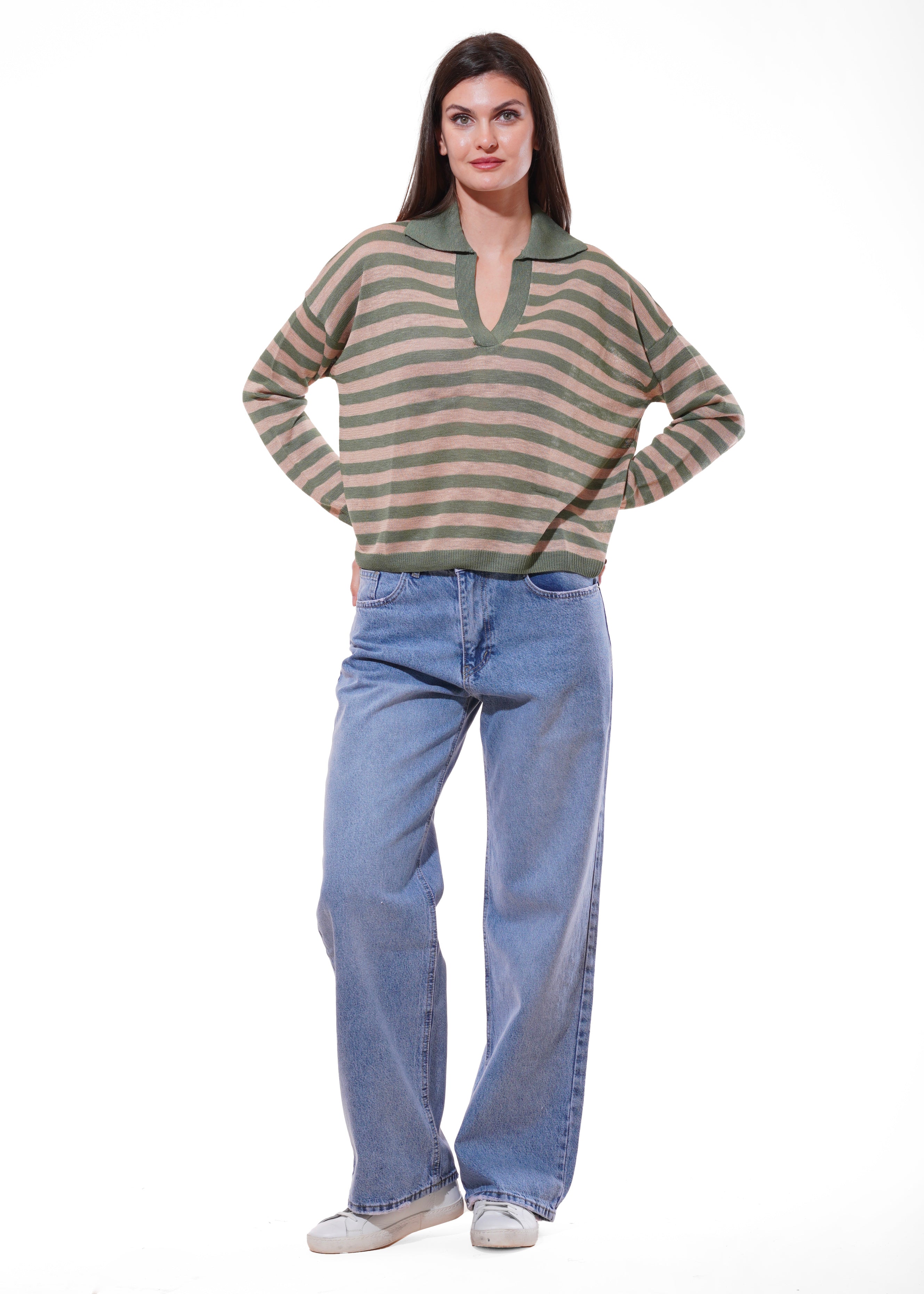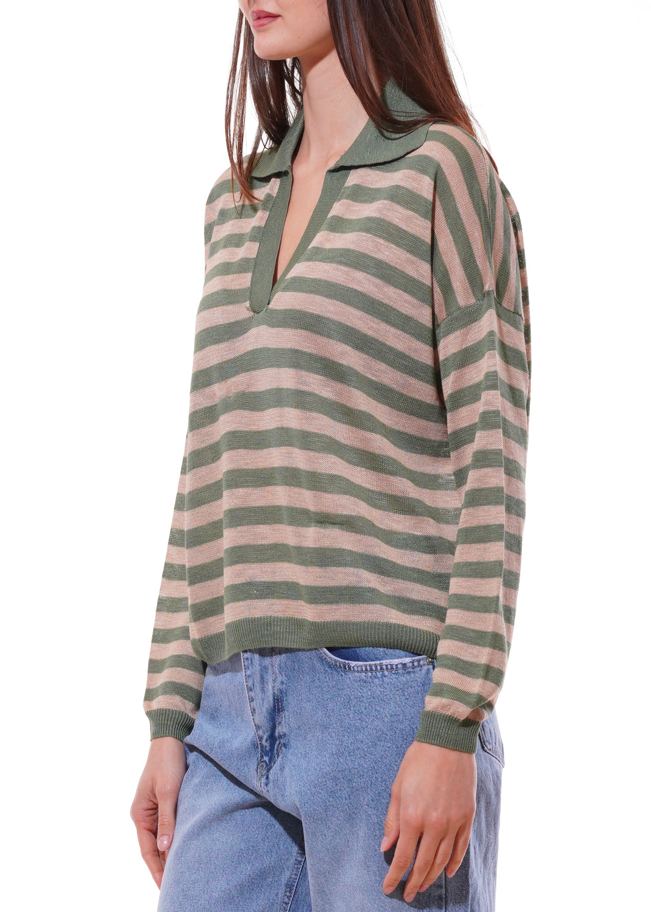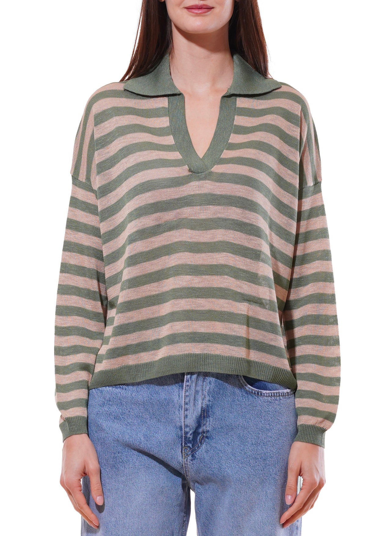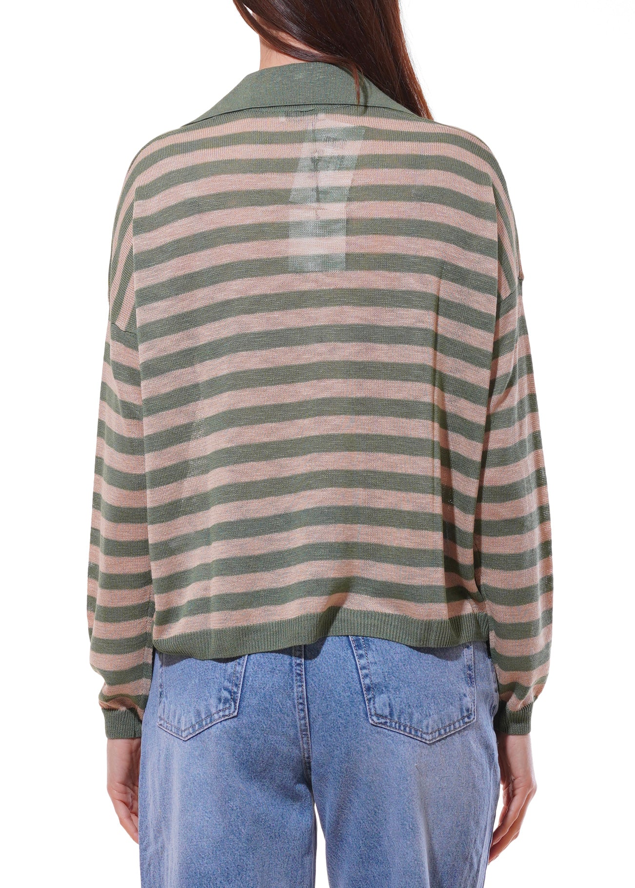 Dixie - Maglia collo polo a righe - MILITARE/BEIGE