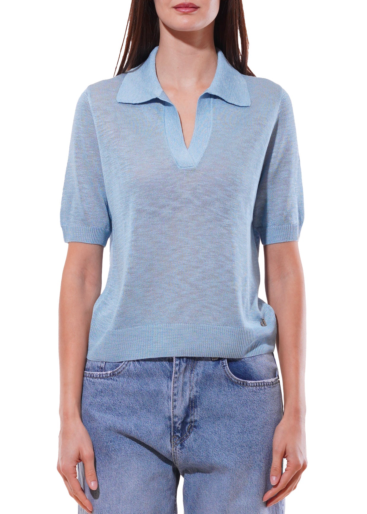 Dixie - Maglia collo polo tinta unita mezza manica - CELESTE