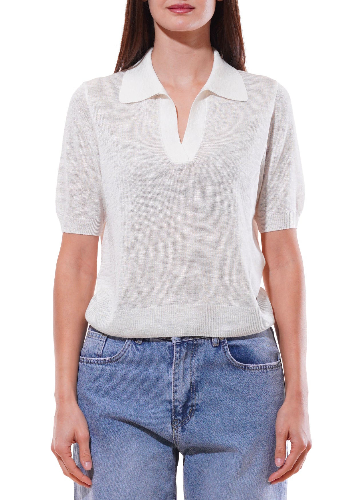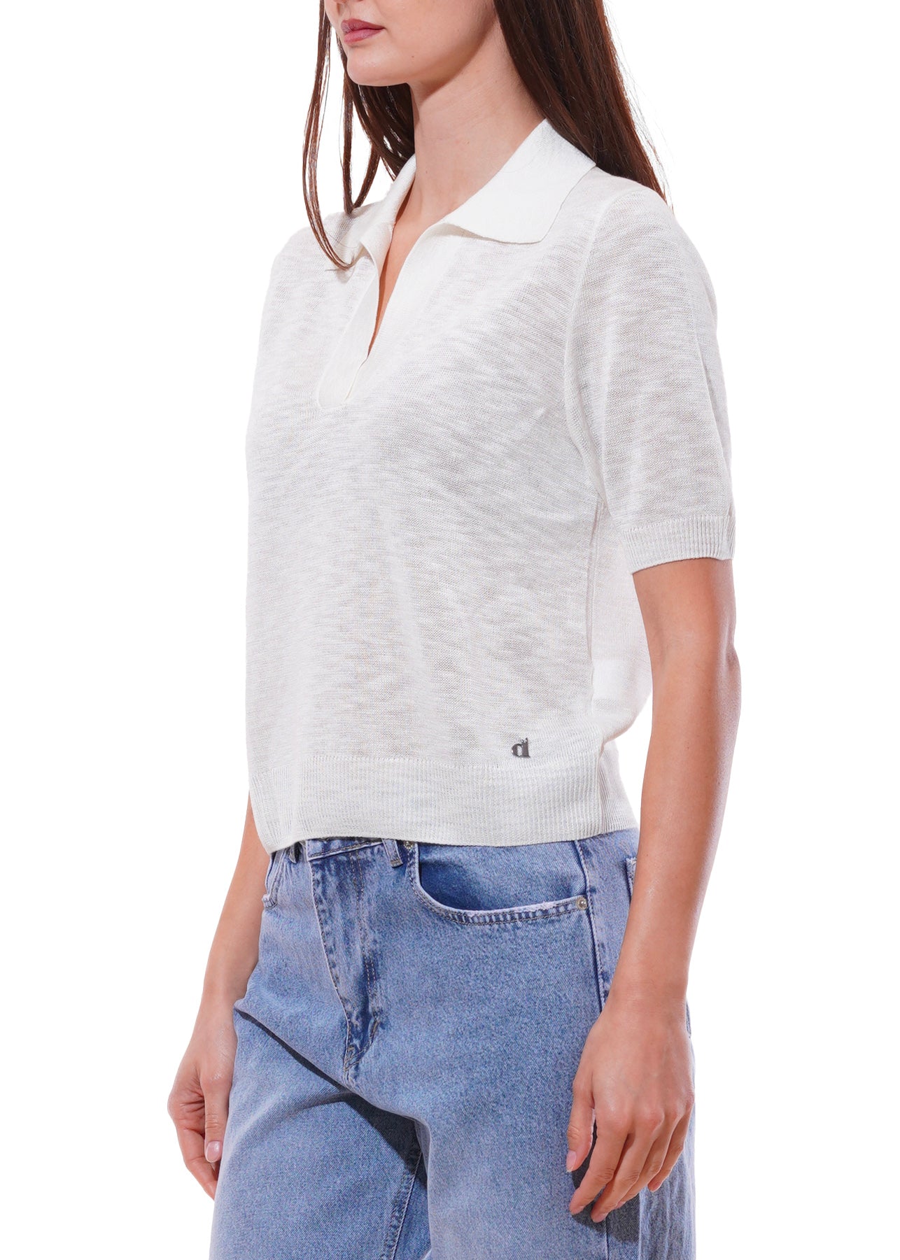 Dixie - Maglia collo polo tinta unita mezza manica - CREMA