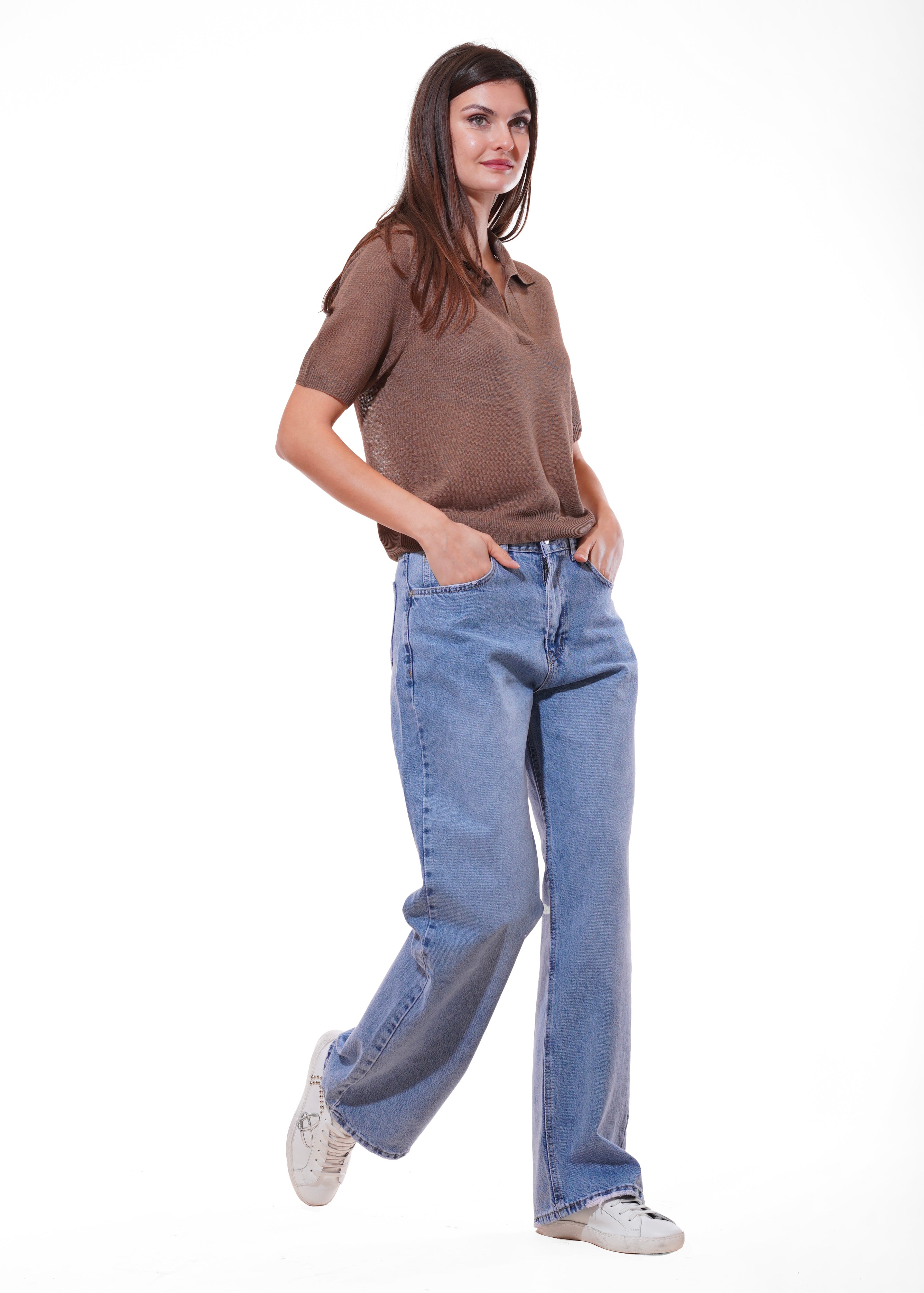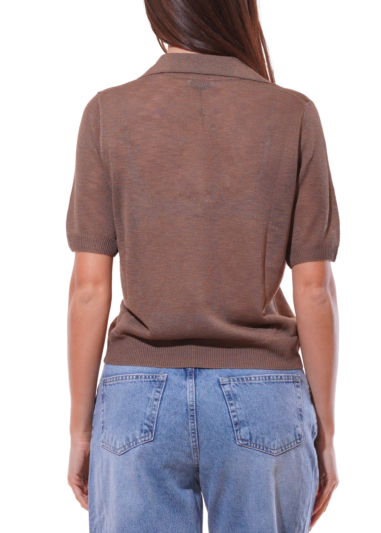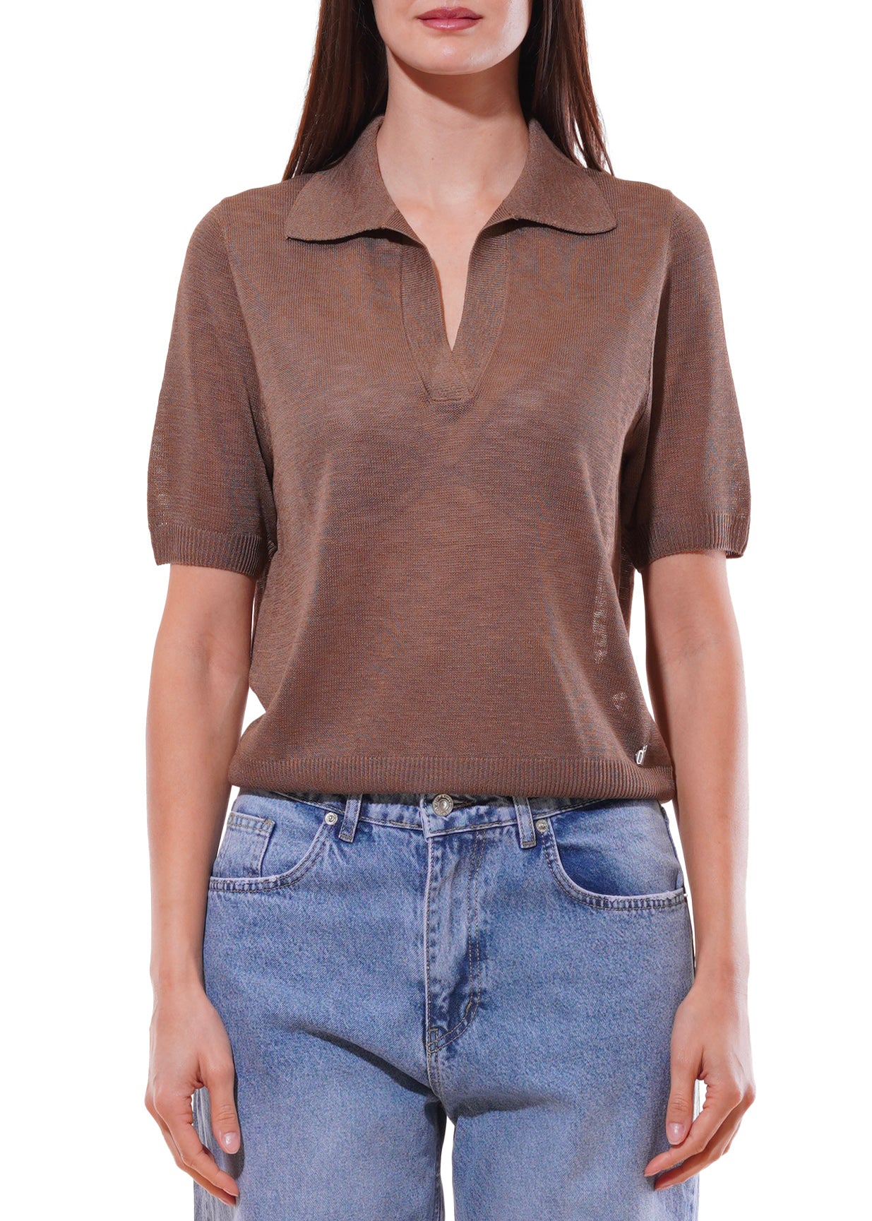 Dixie - Maglia collo polo tinta unita mezza manica - TABACCO