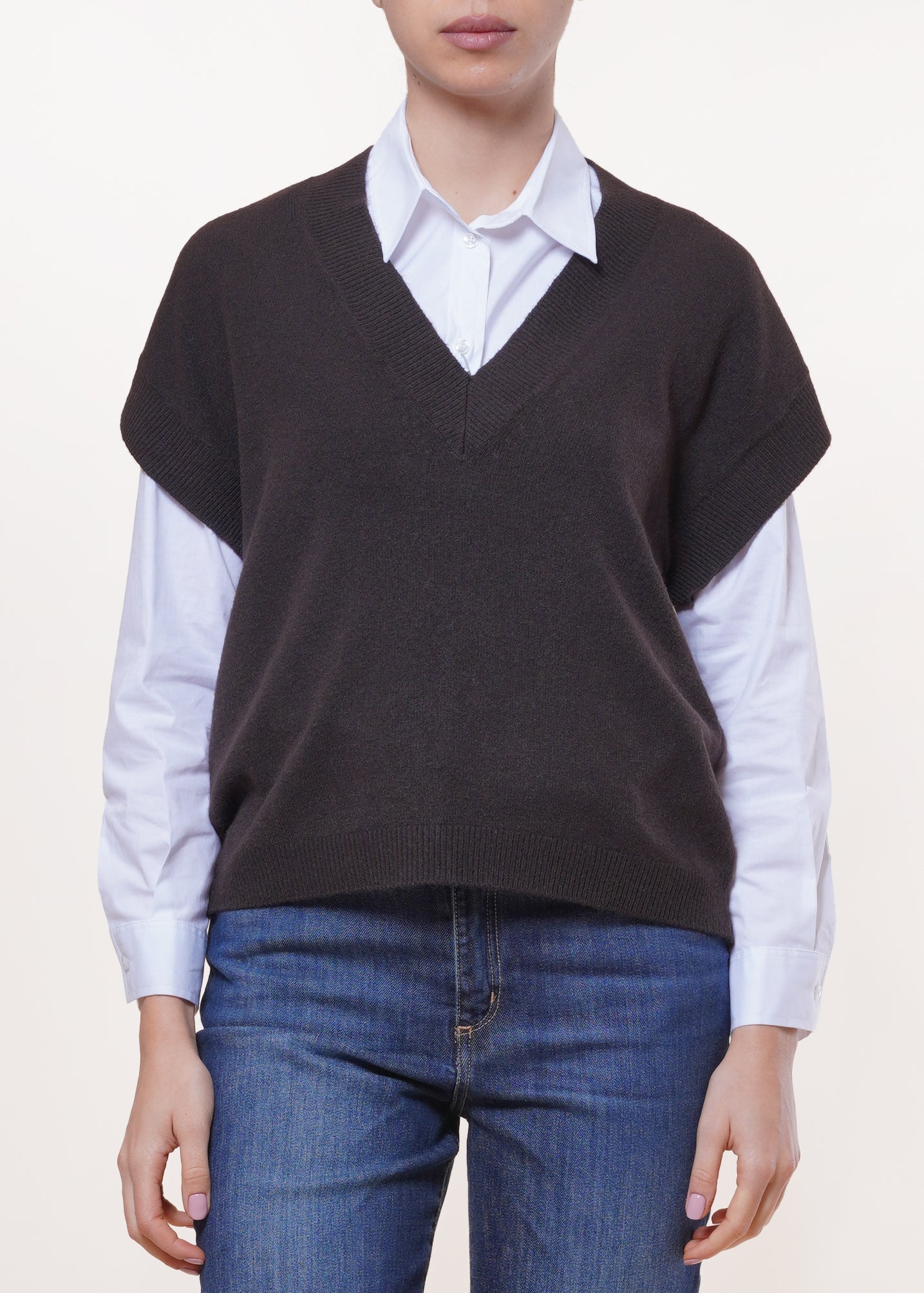 Angela Davis - Gilet in maglia scollo V - MORO