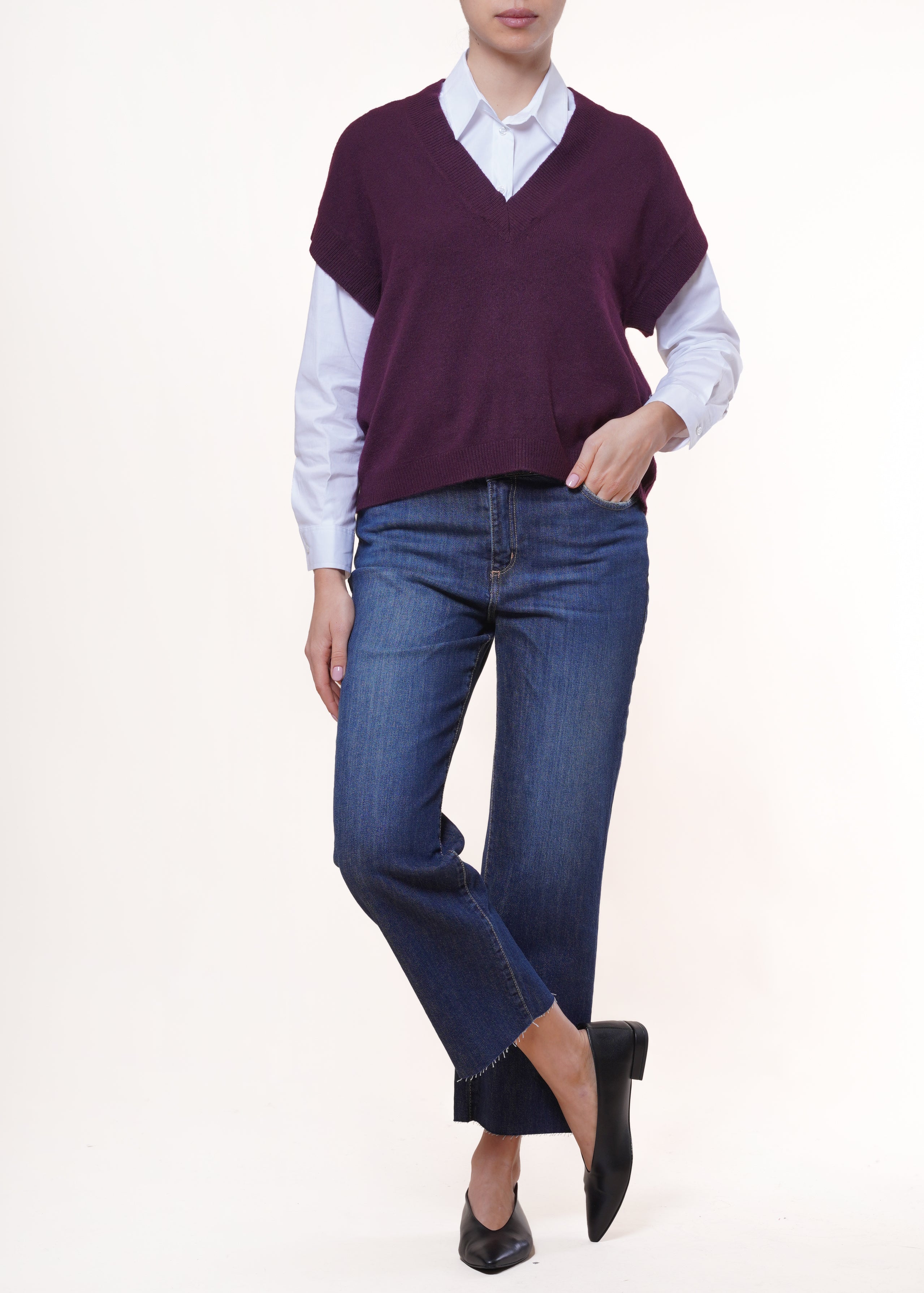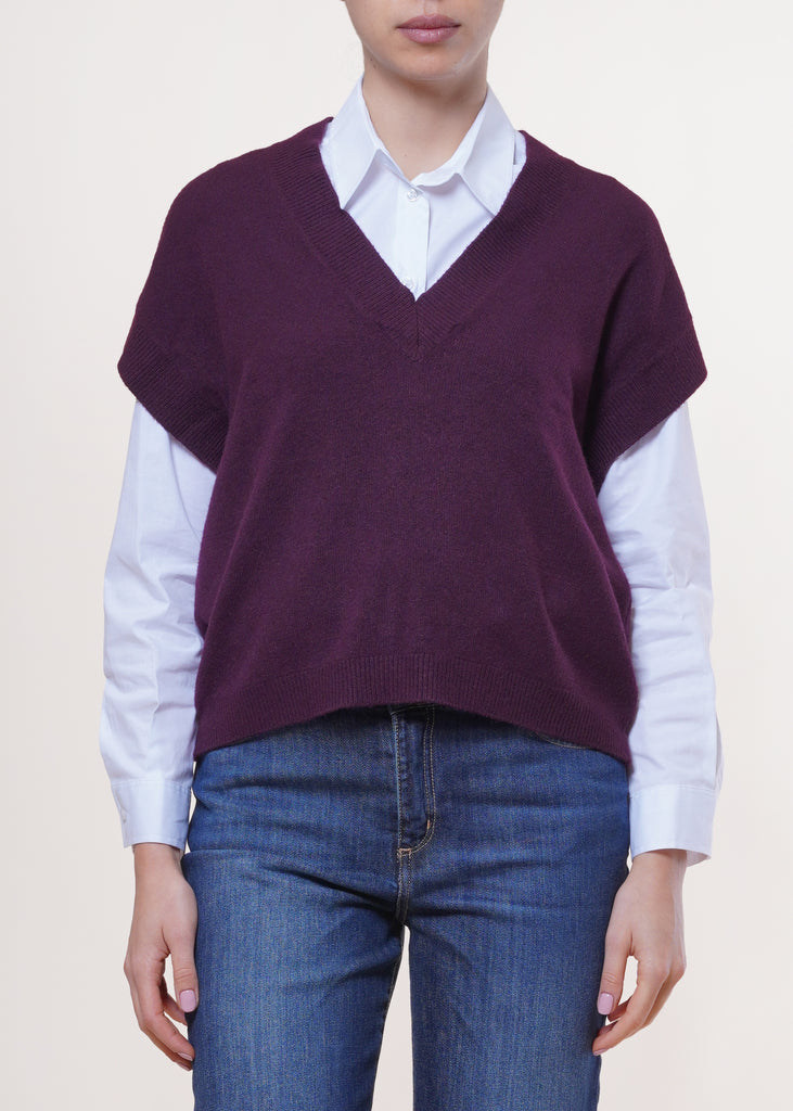 Angela Davis - Gilet in maglia scollo V - VINO