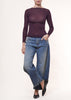 Anì - Cachemirina a righe scollo barca - NERO/VINO