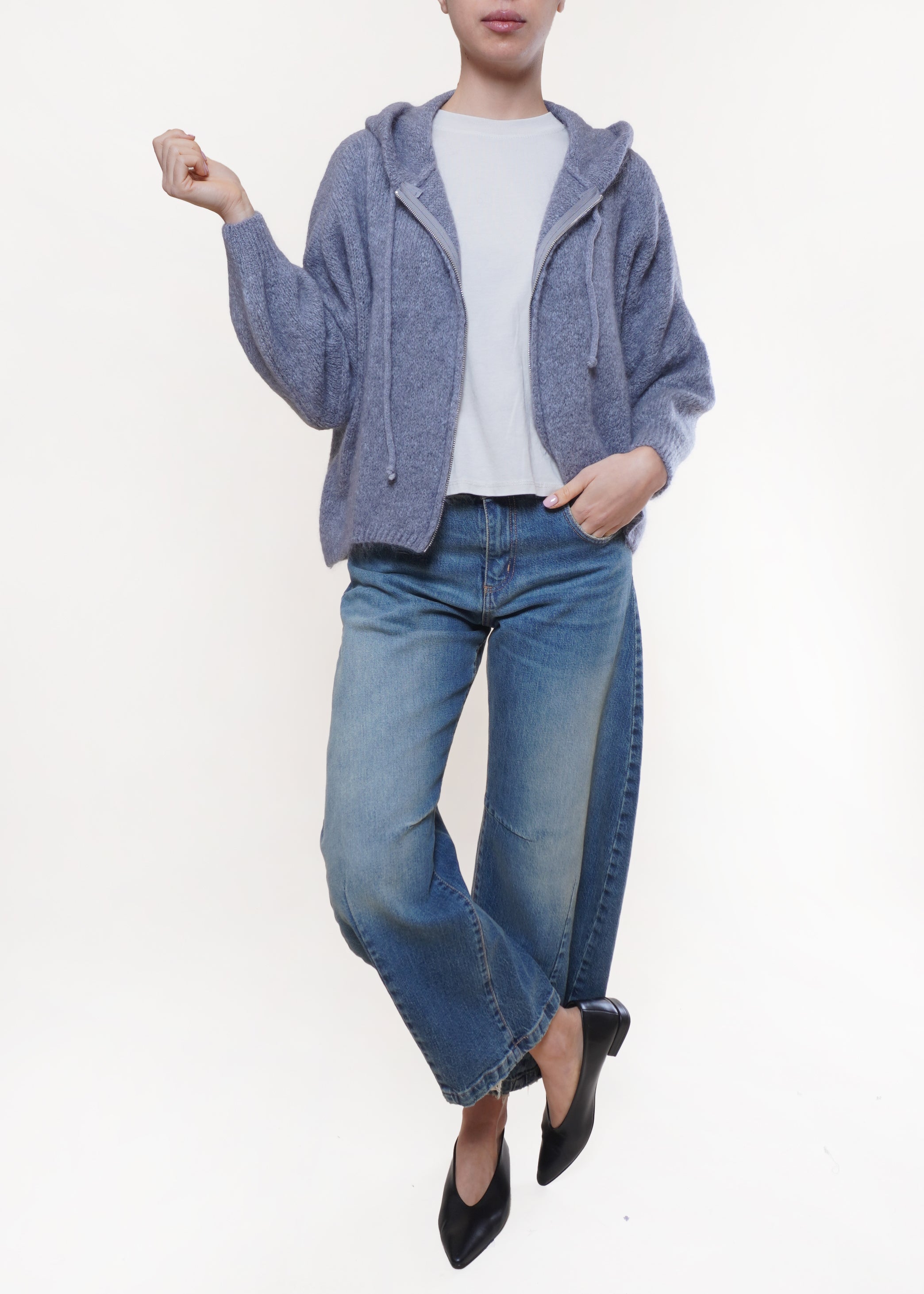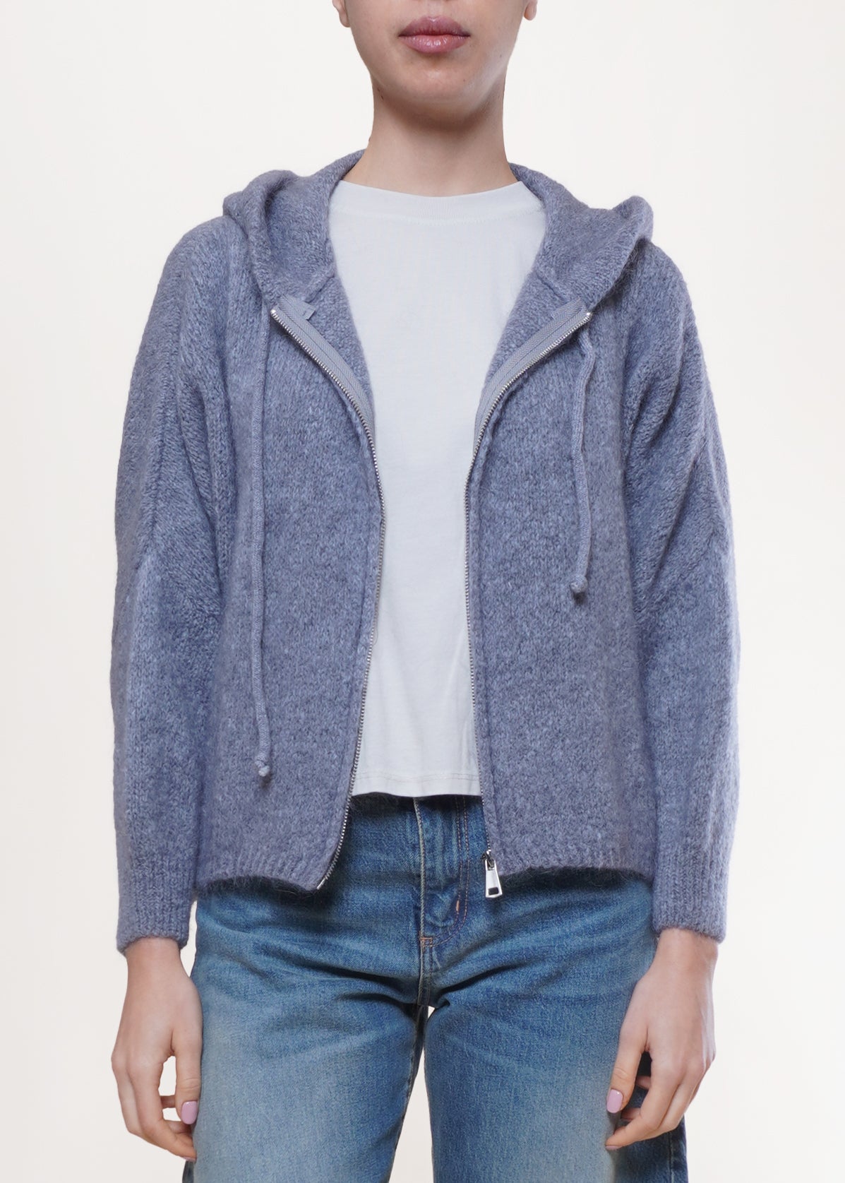 Dixie - Cardigan in mohair con cappuccio - GRIGIO