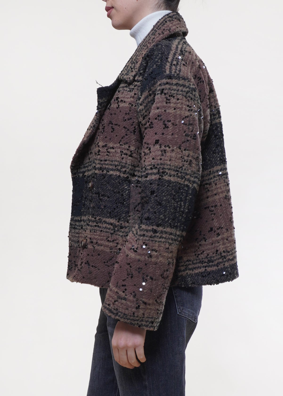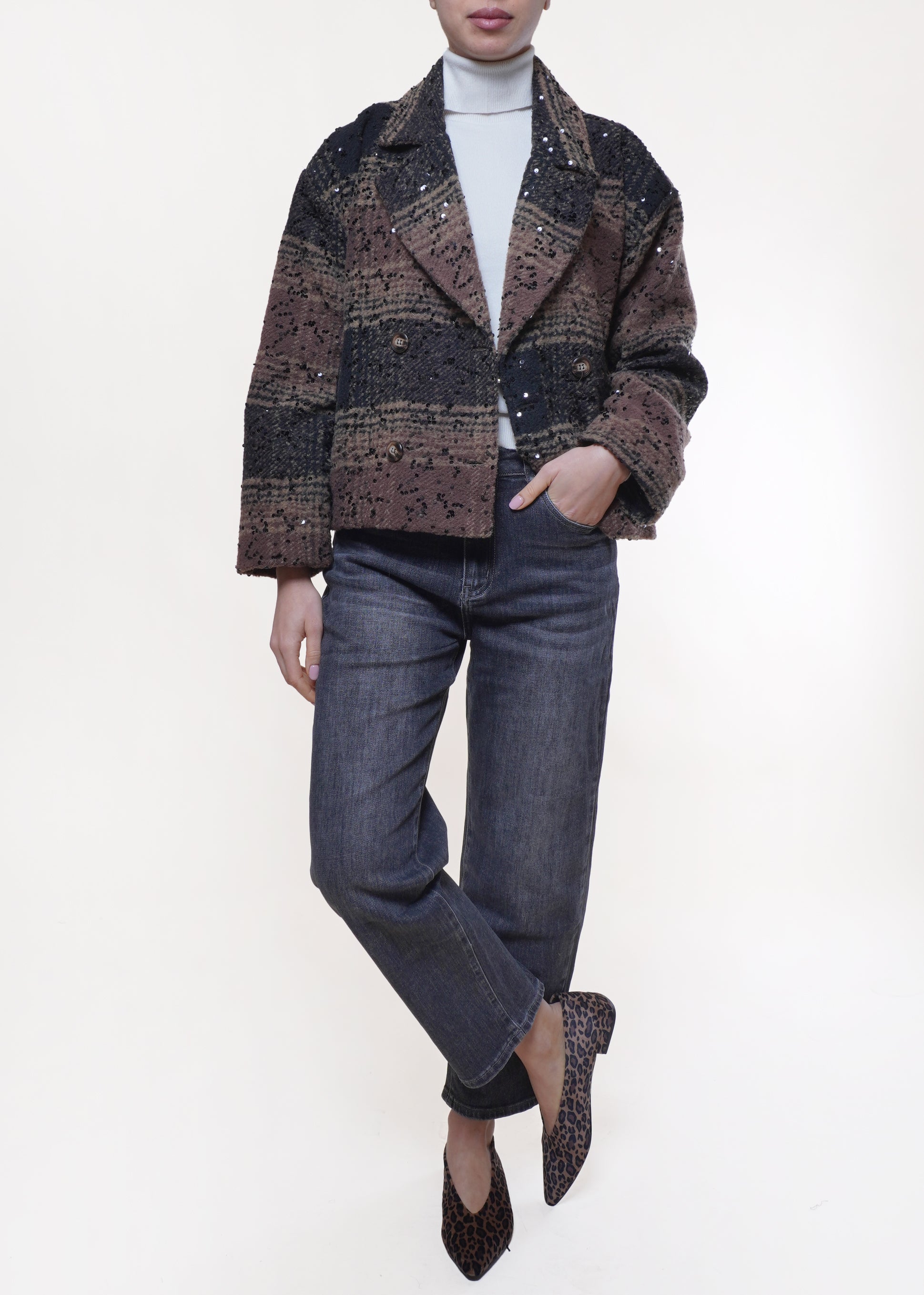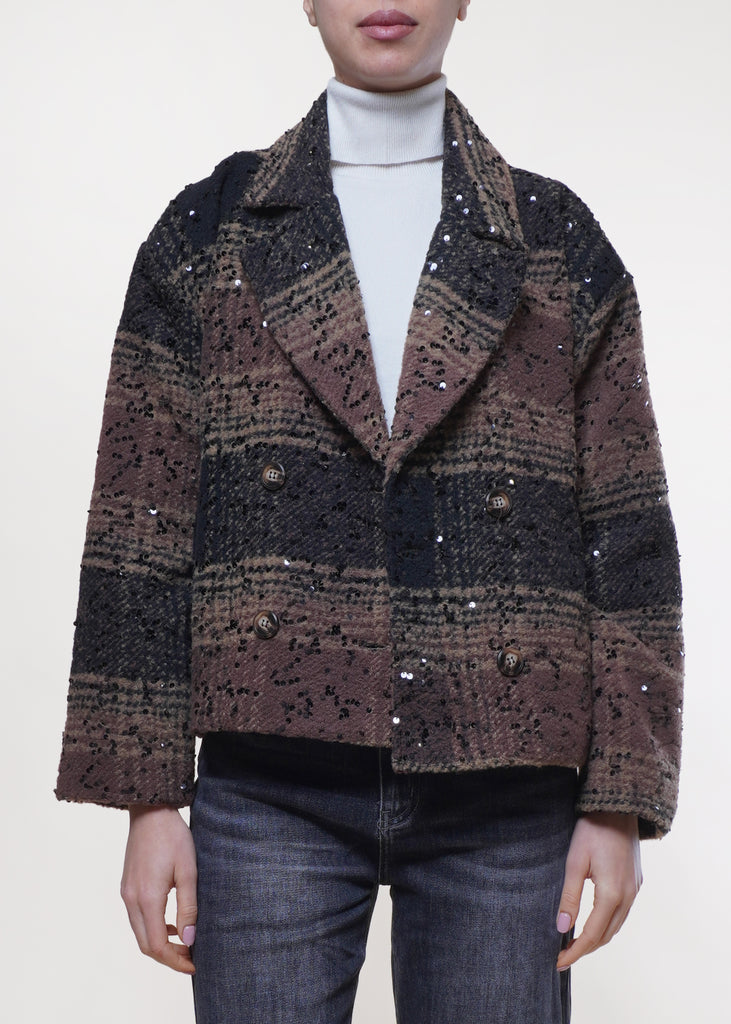 Susy Mix - Cappotto con micropaillettes misto lana - MORO