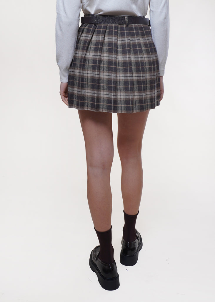 Susy Mix - Gonna a pieghe stampa check con cintura - MORO