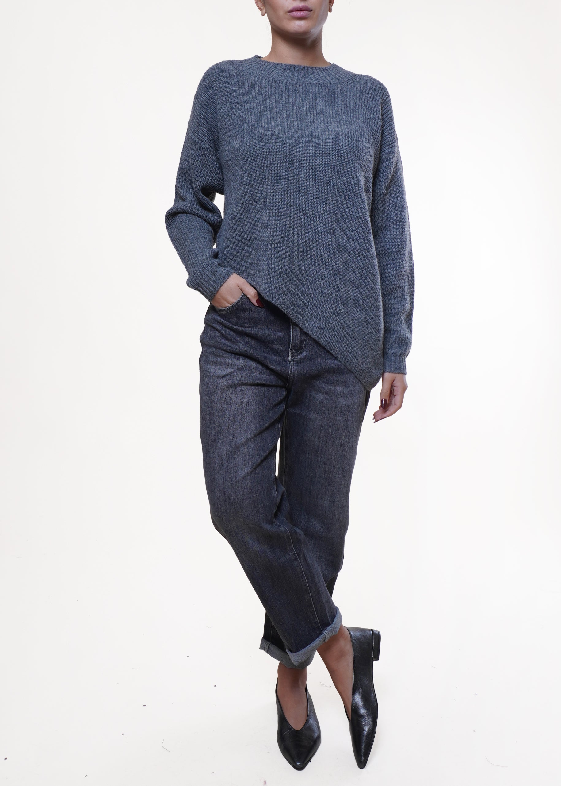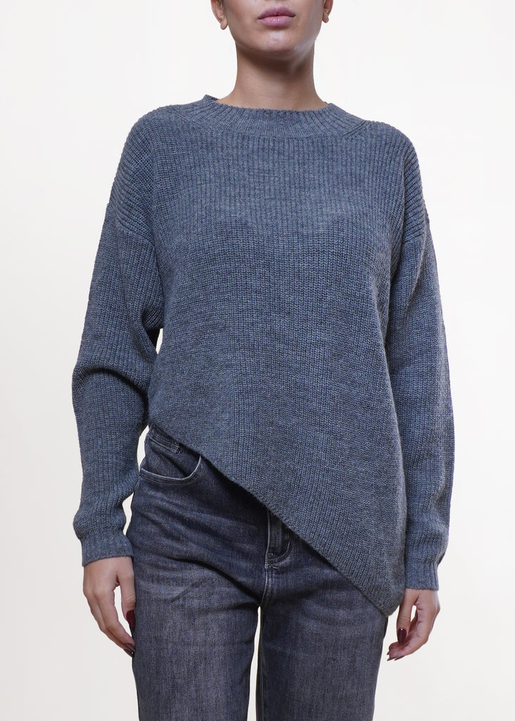 Kontatto - Maglia asimmetrica misto lana e alpaca - GRIGIO