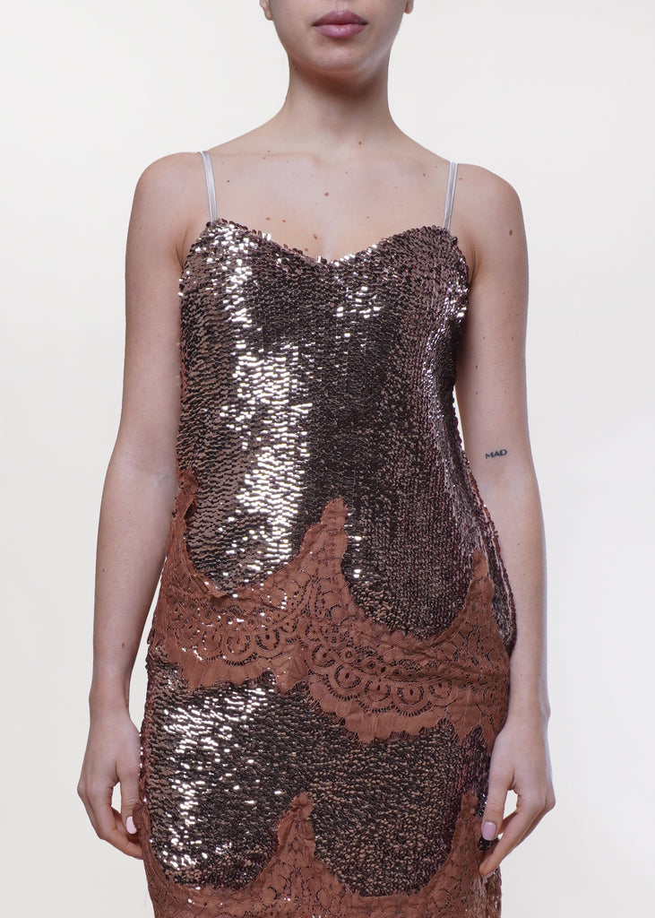 Motel - Top in paillettes con pizzo - AMBRA
