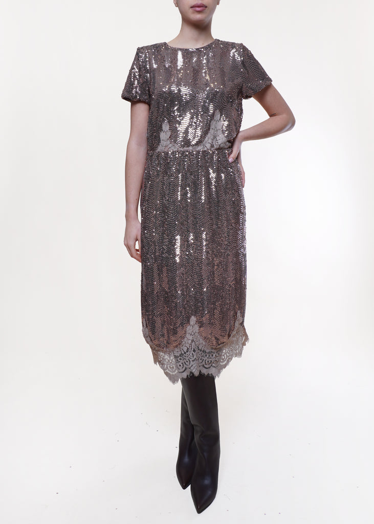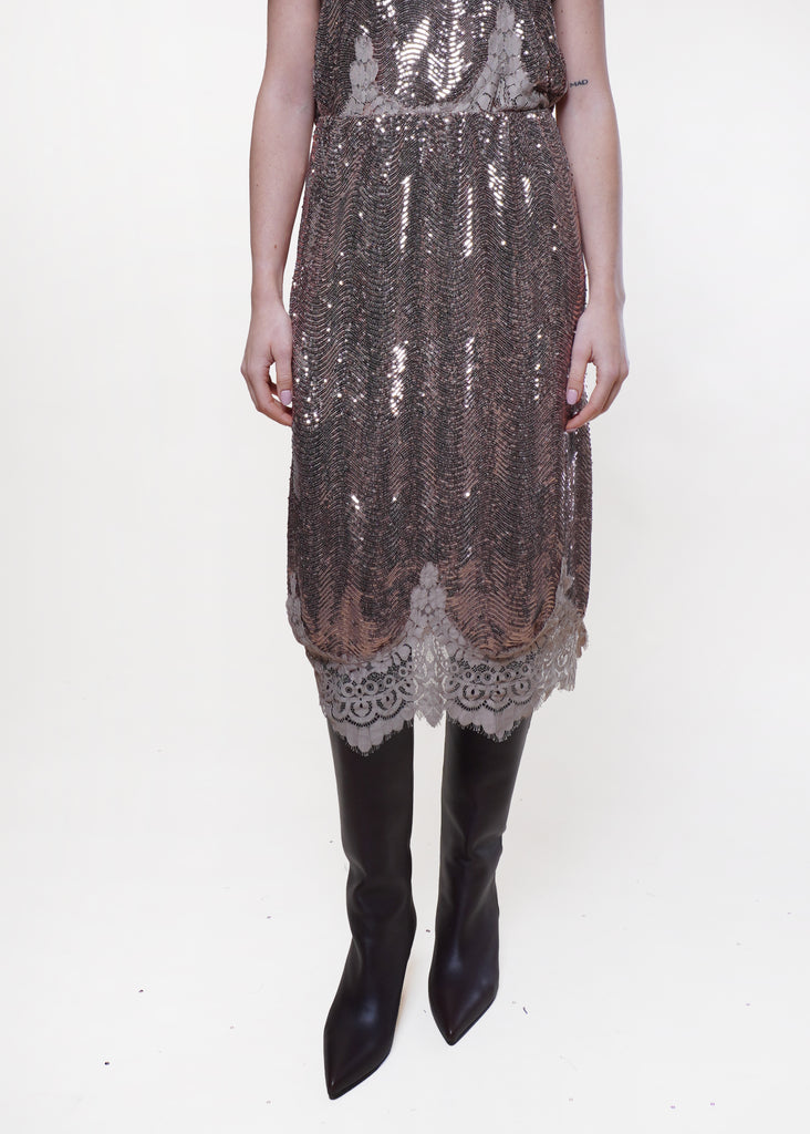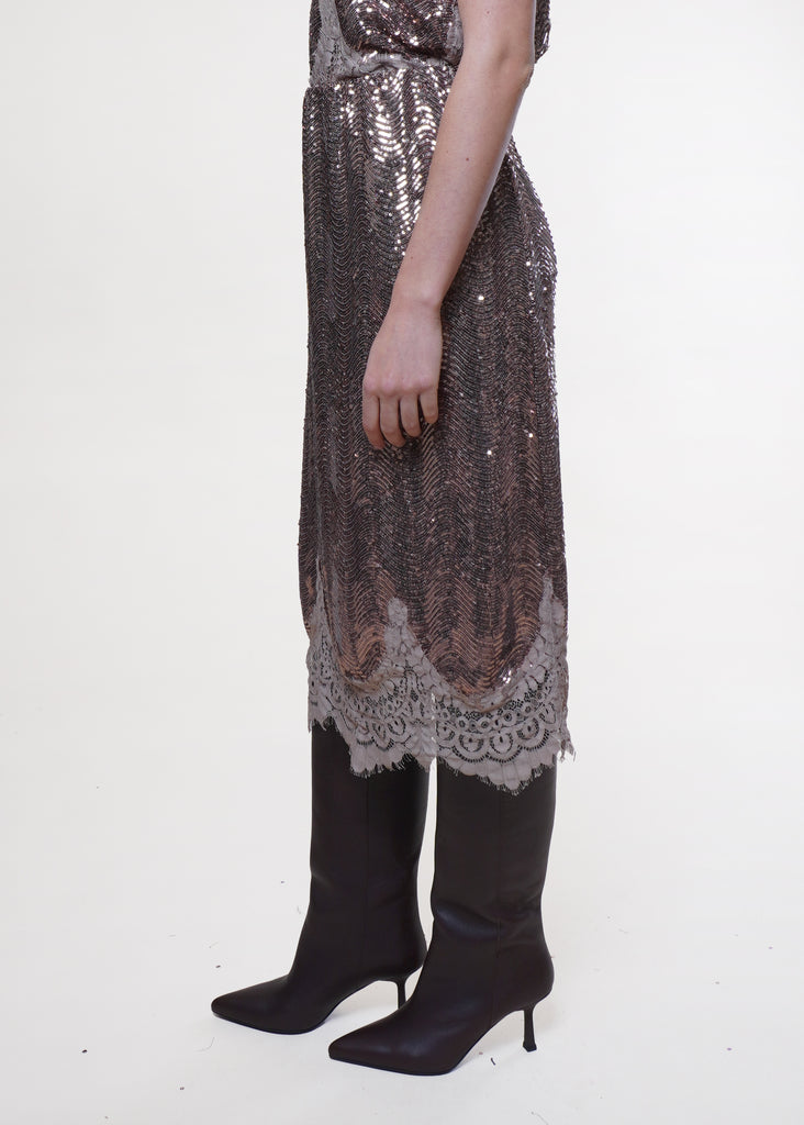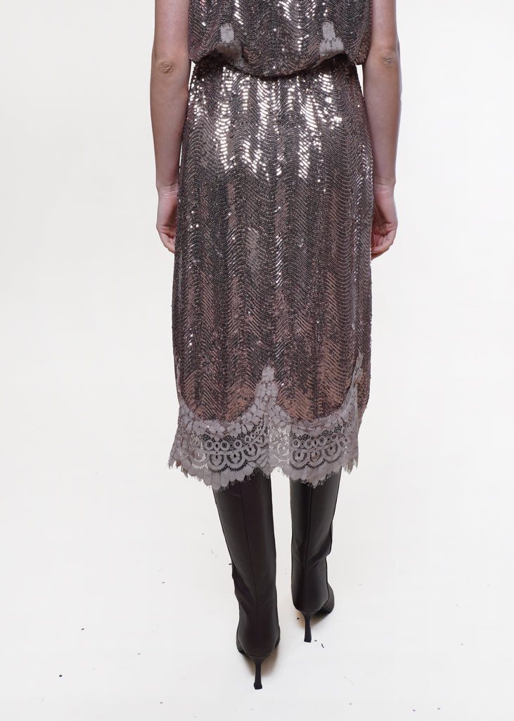 Motel - Gonna in micro paillettes con pizzo - CAMMELLO