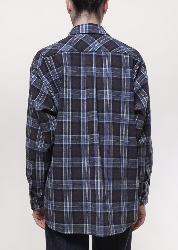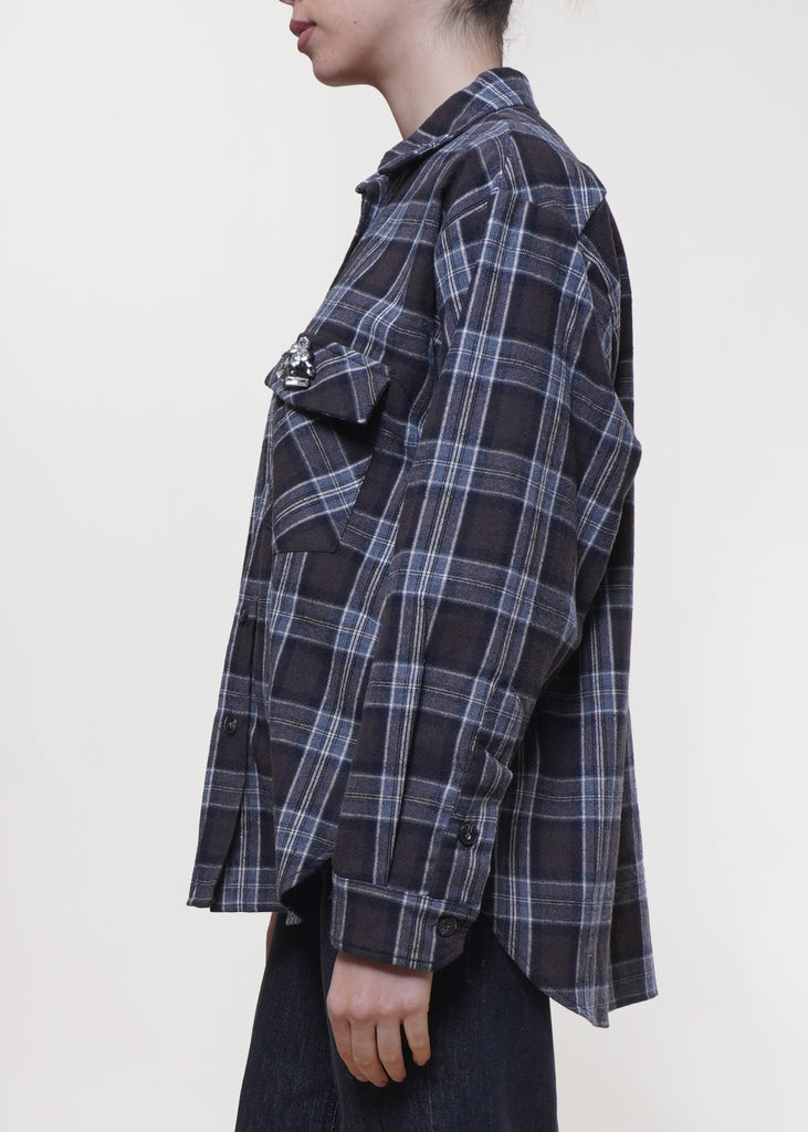 Motel - Camicia stampa check con spilla - MORO