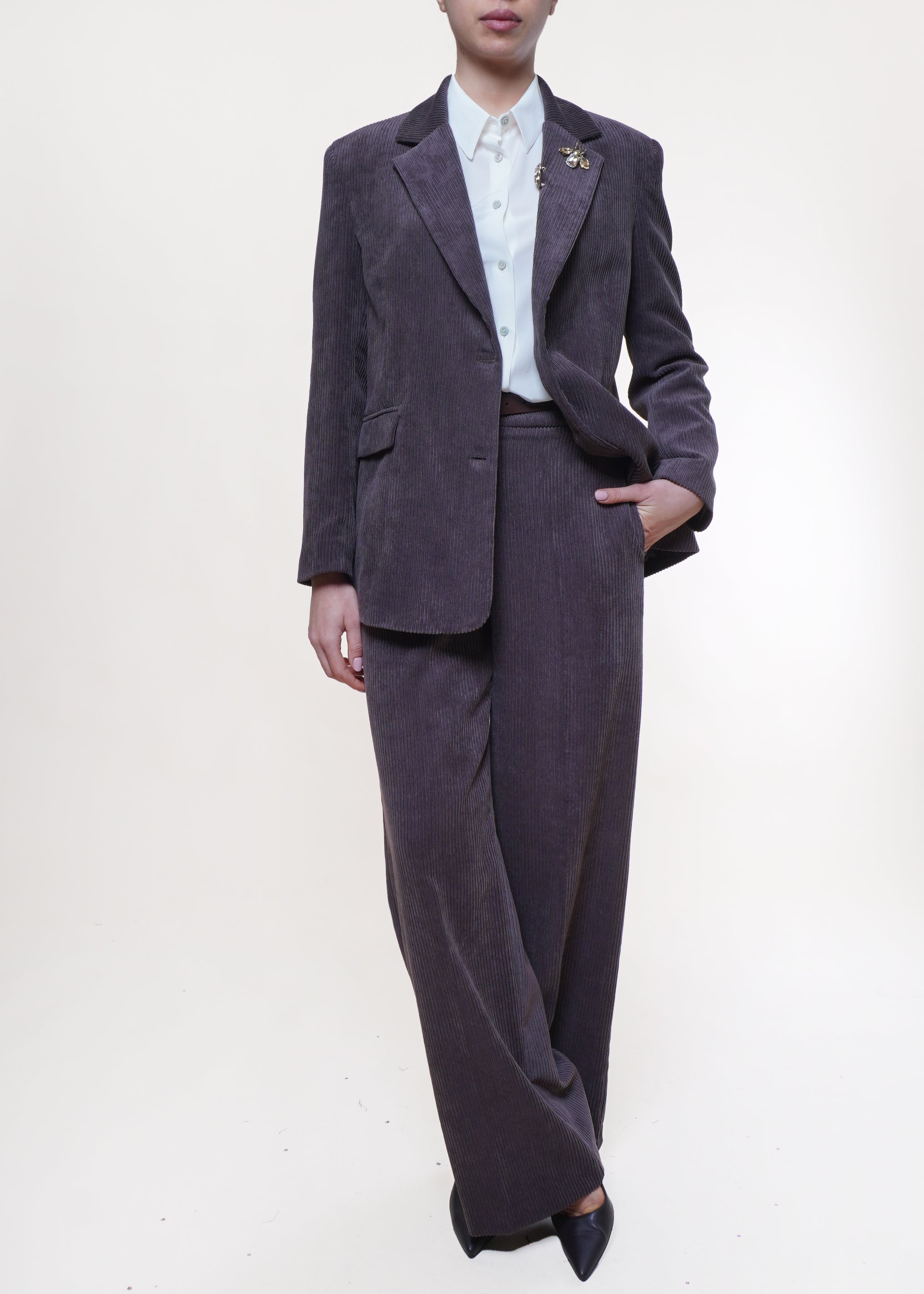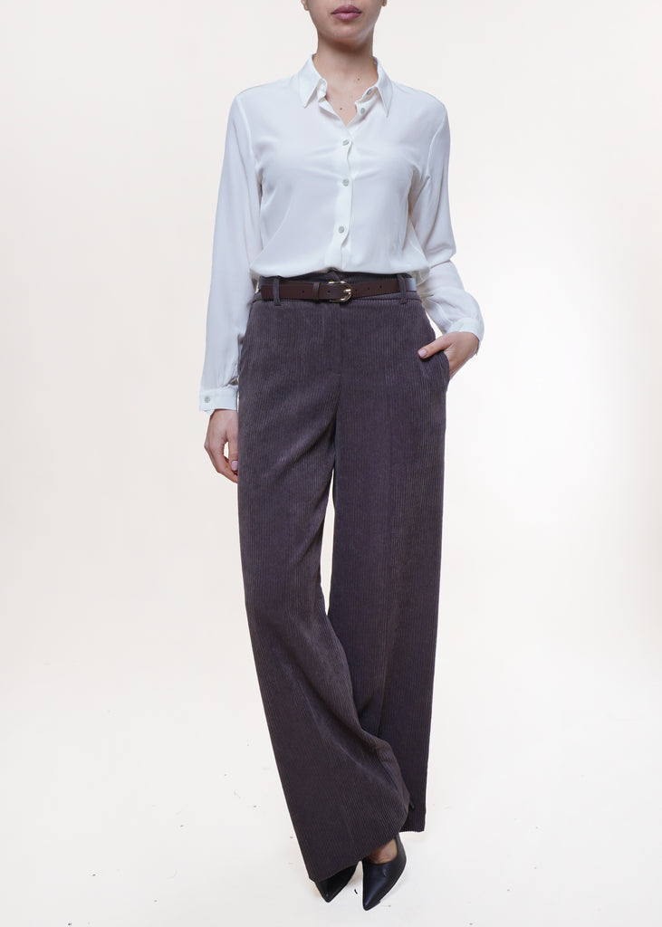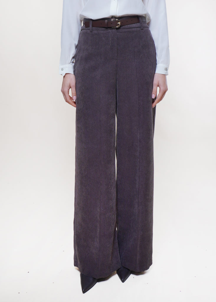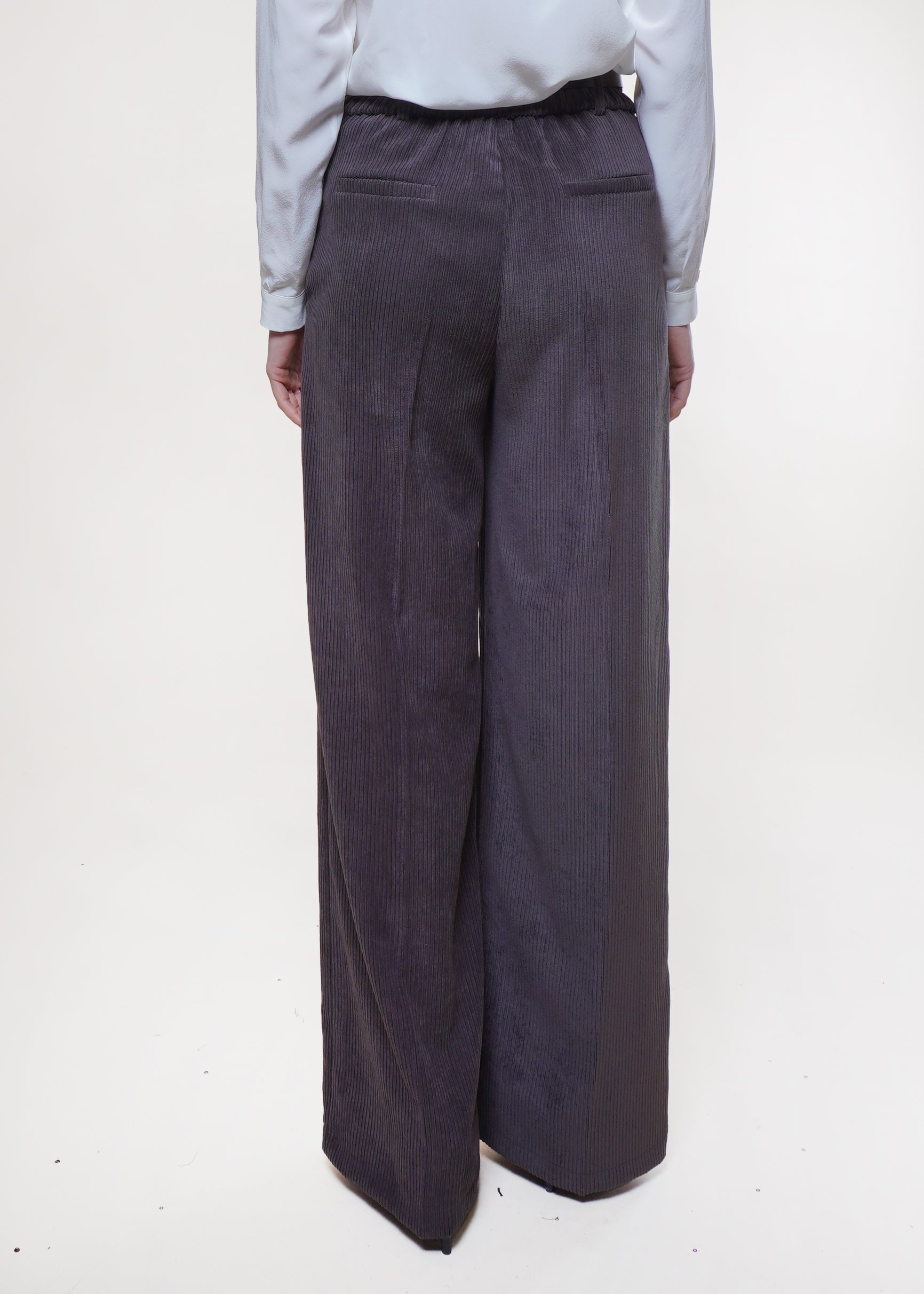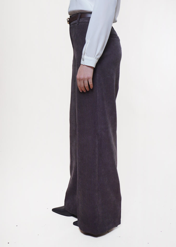 Motel - Pantalone palazzo in velluto rocciatore - MORO
