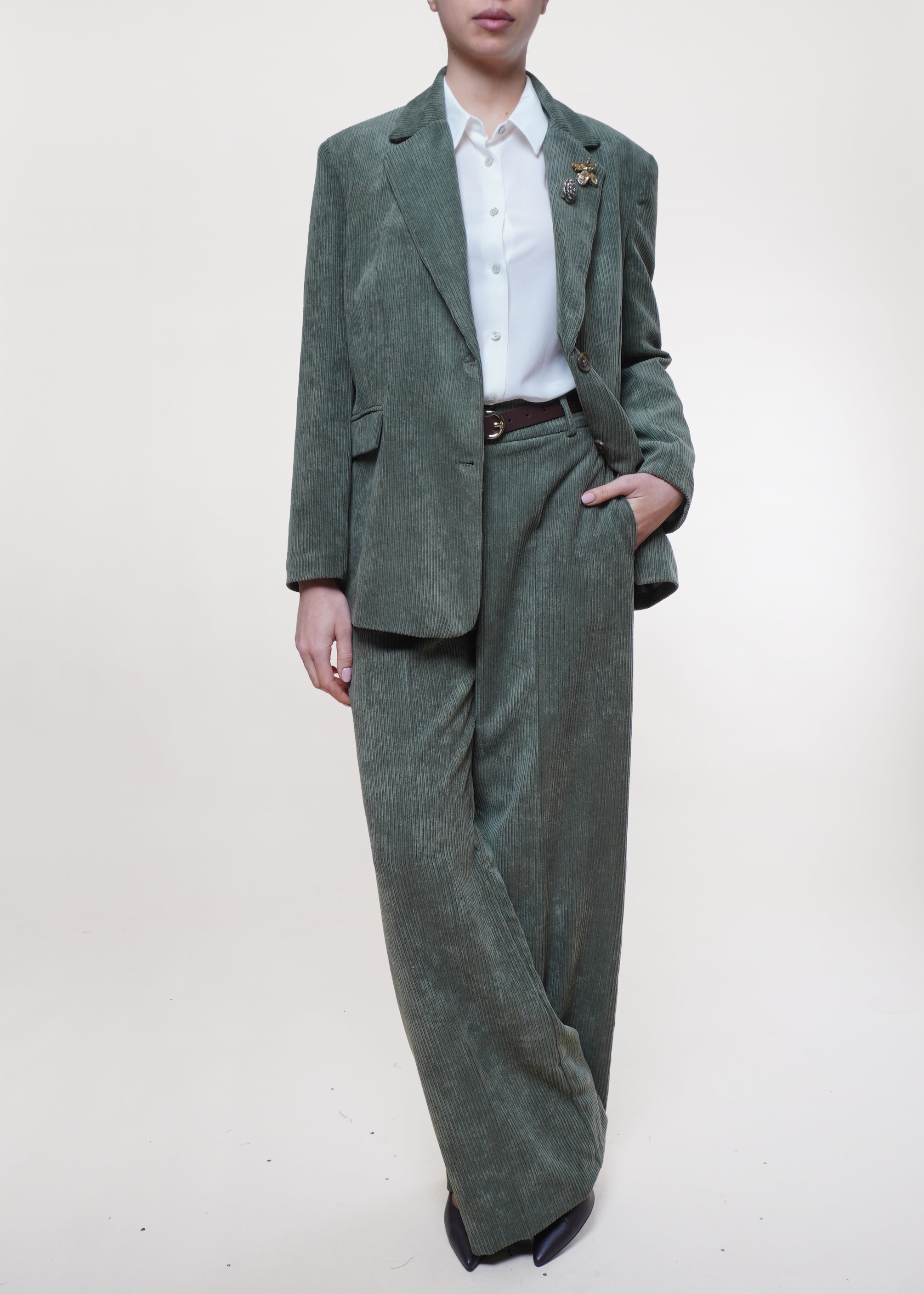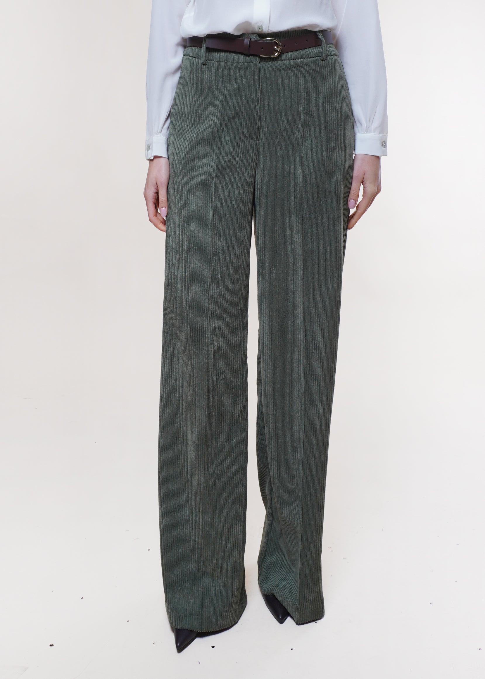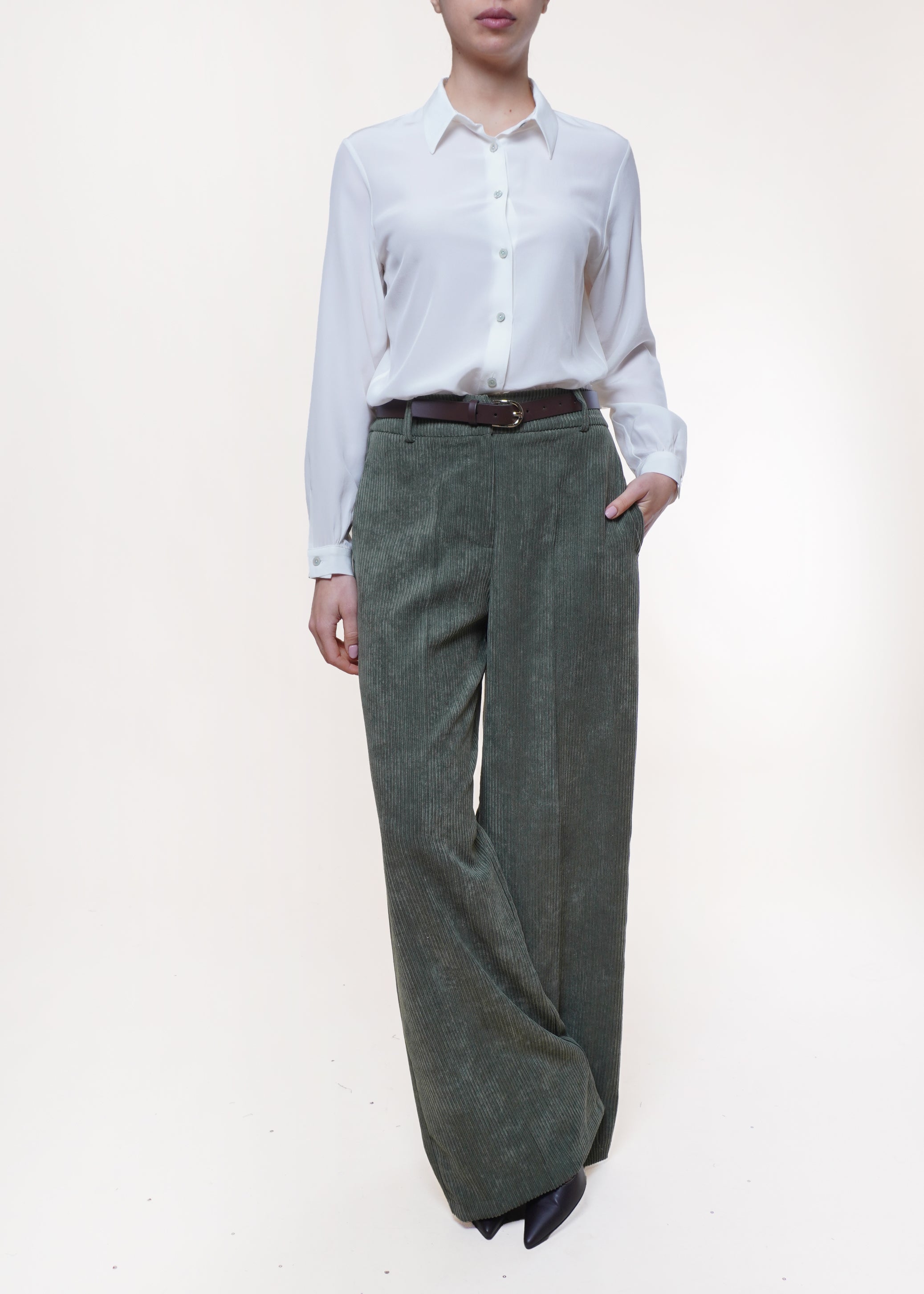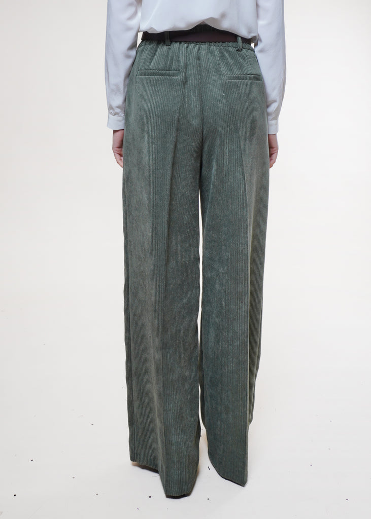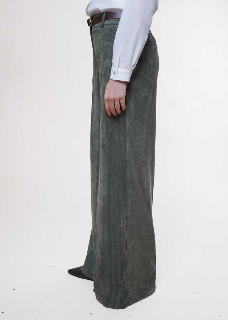 Motel - Pantalone palazzo in velluto rocciatore - OLIVA