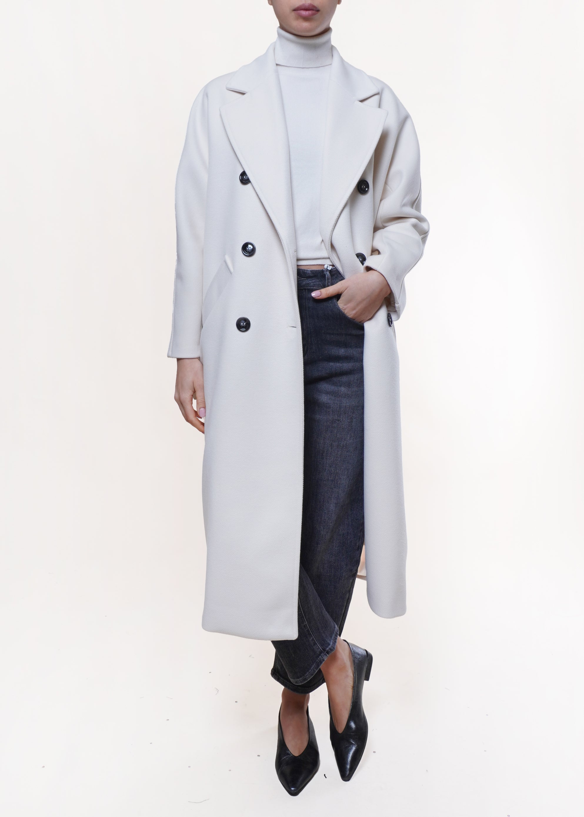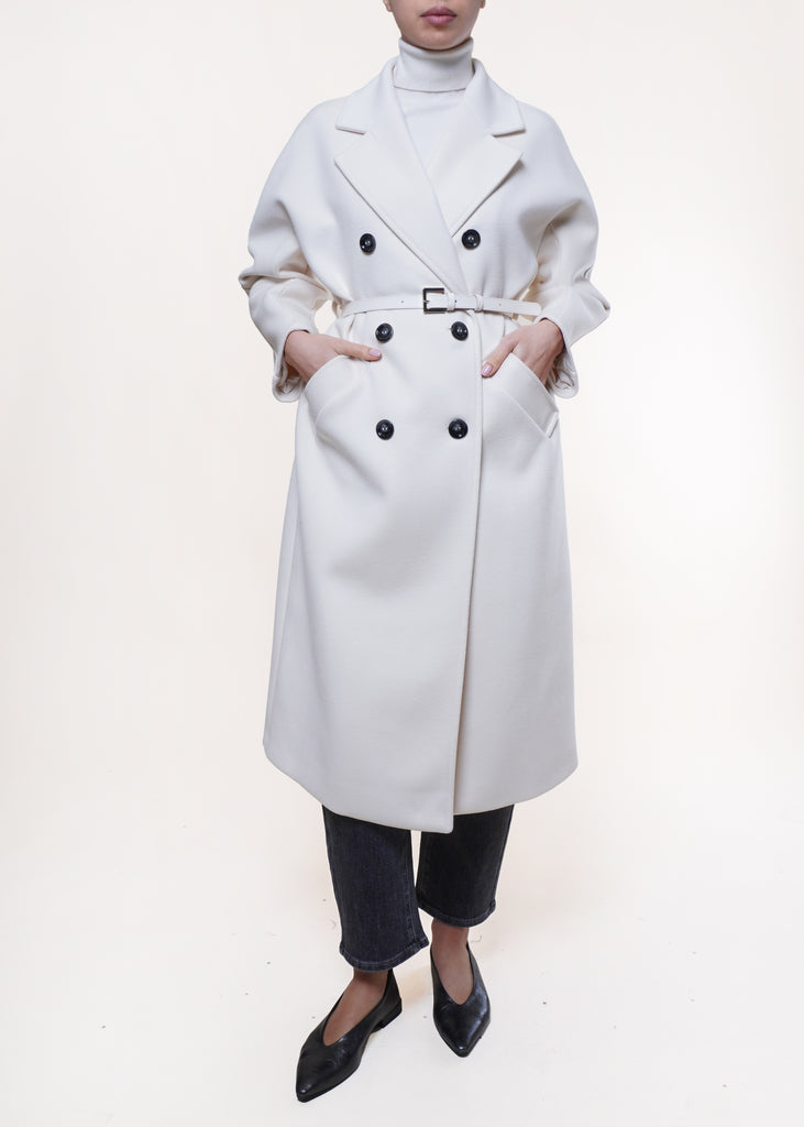 Imperial - Cappotto doppiopetto con cintura - PANNA