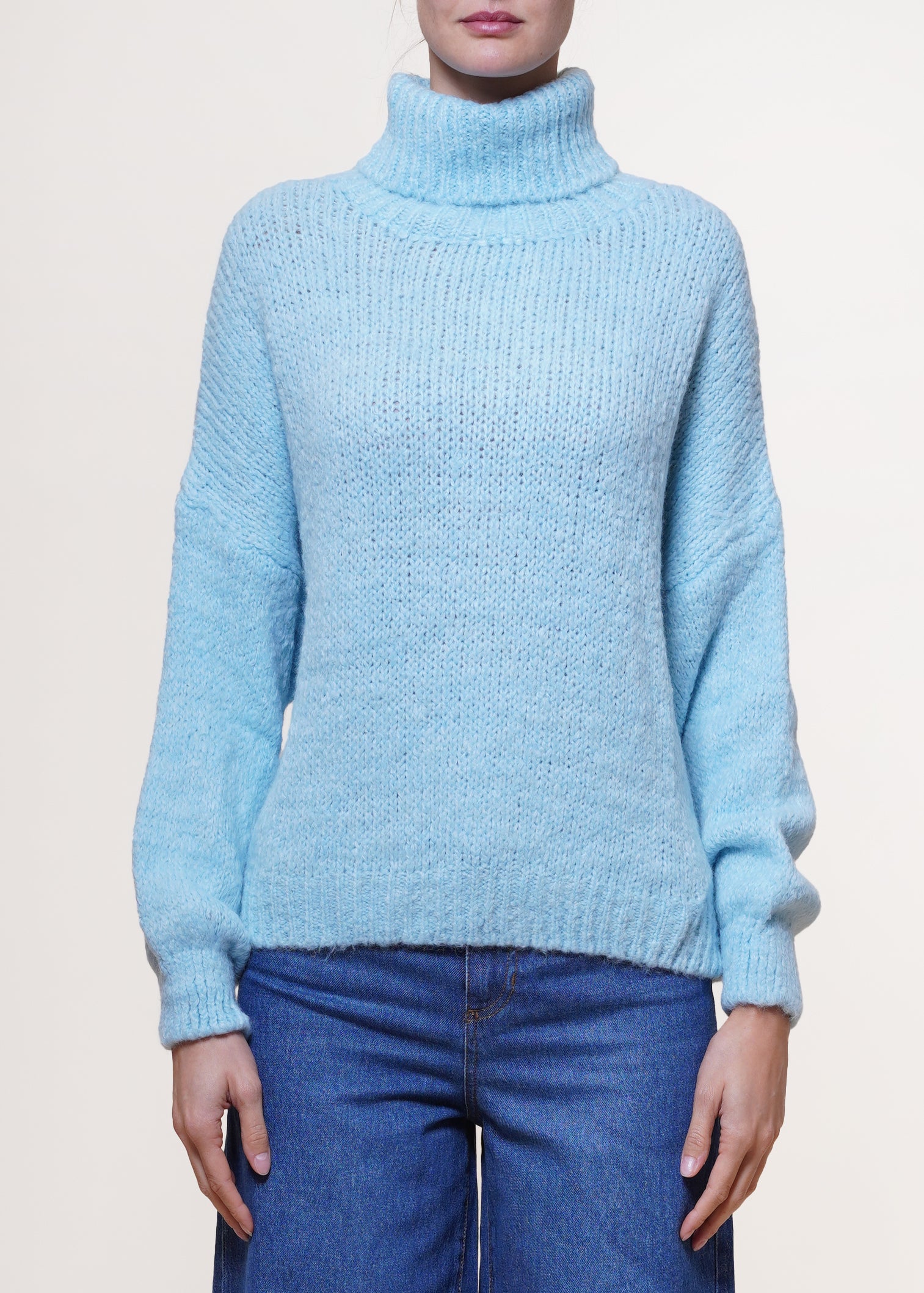Susy Mix - Maglia collo alto in lana mohair - CELESTE