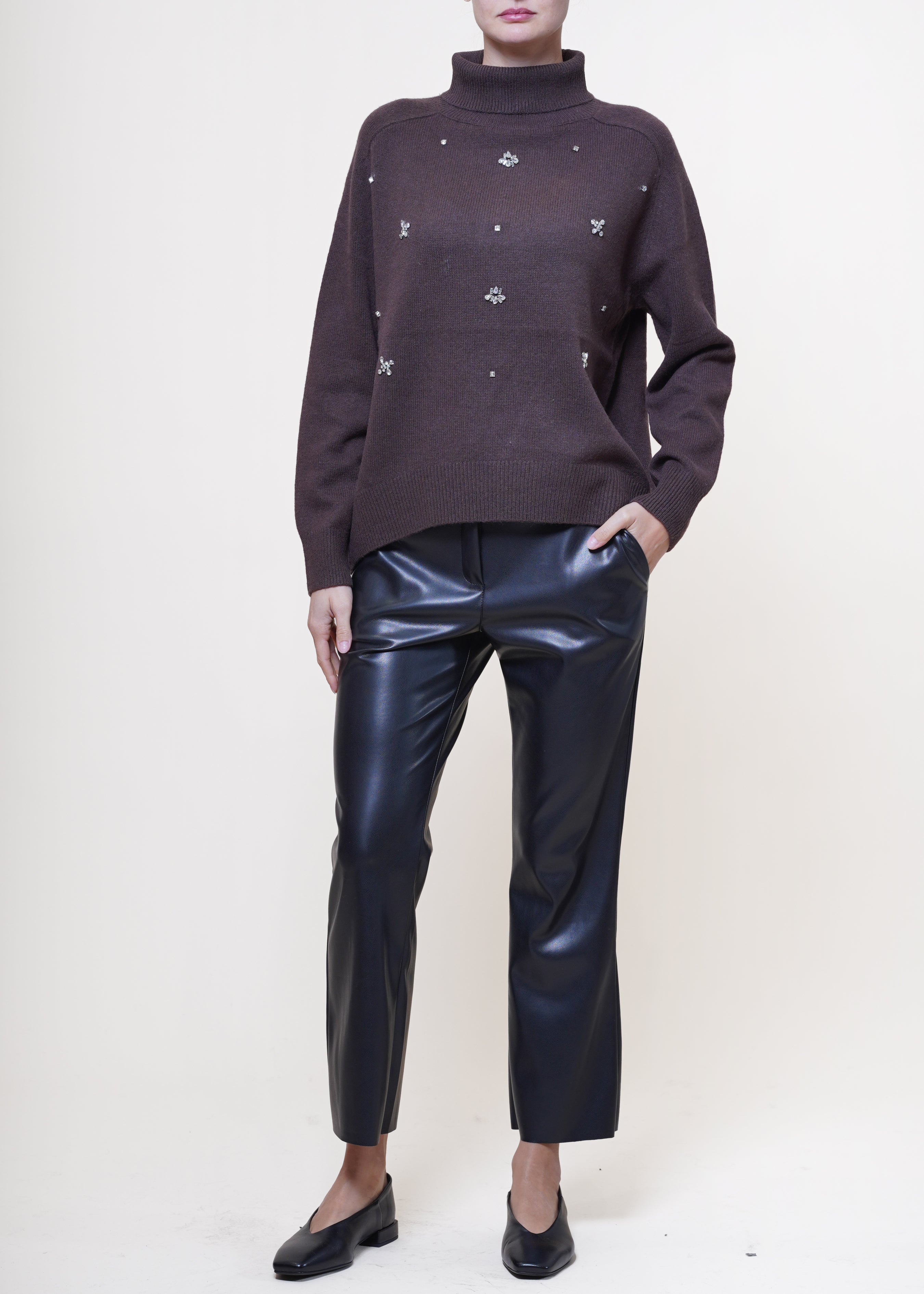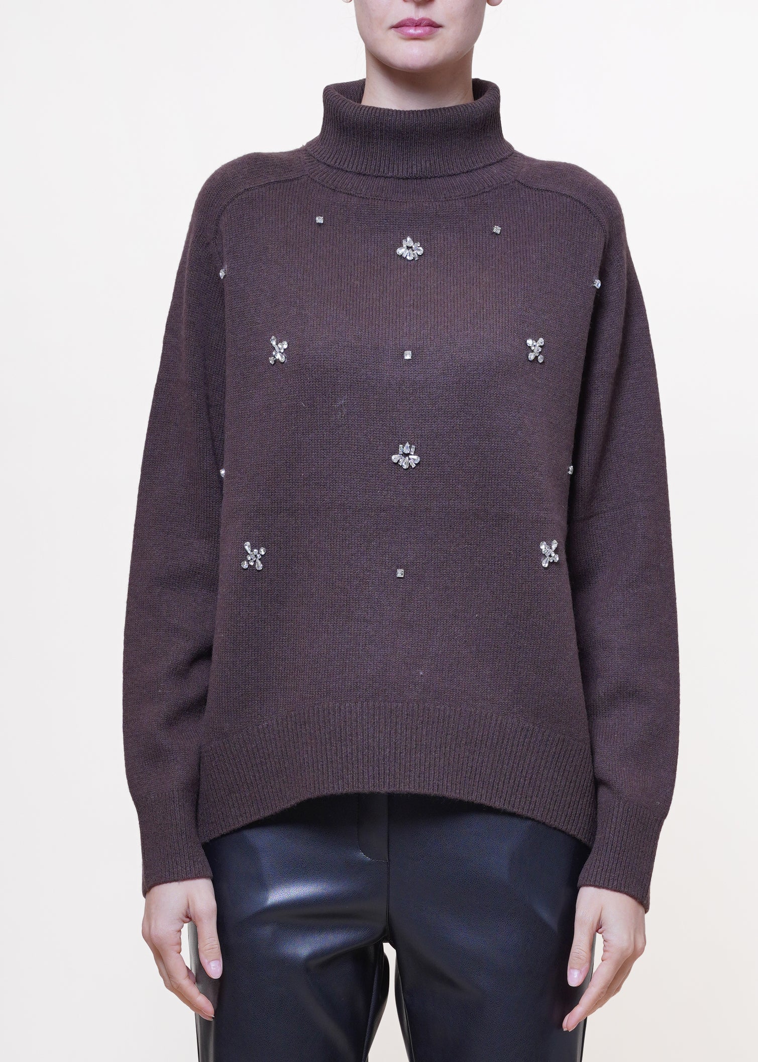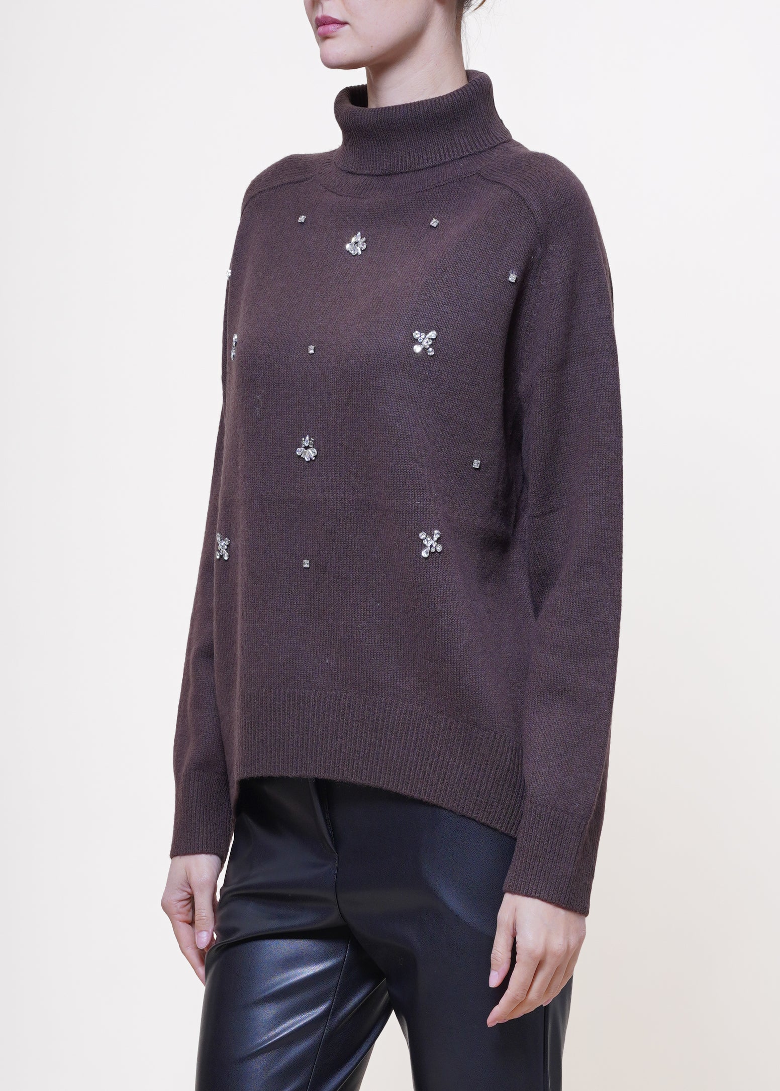 Anì - Maglia collo alto con applicazioni in lana - MORO