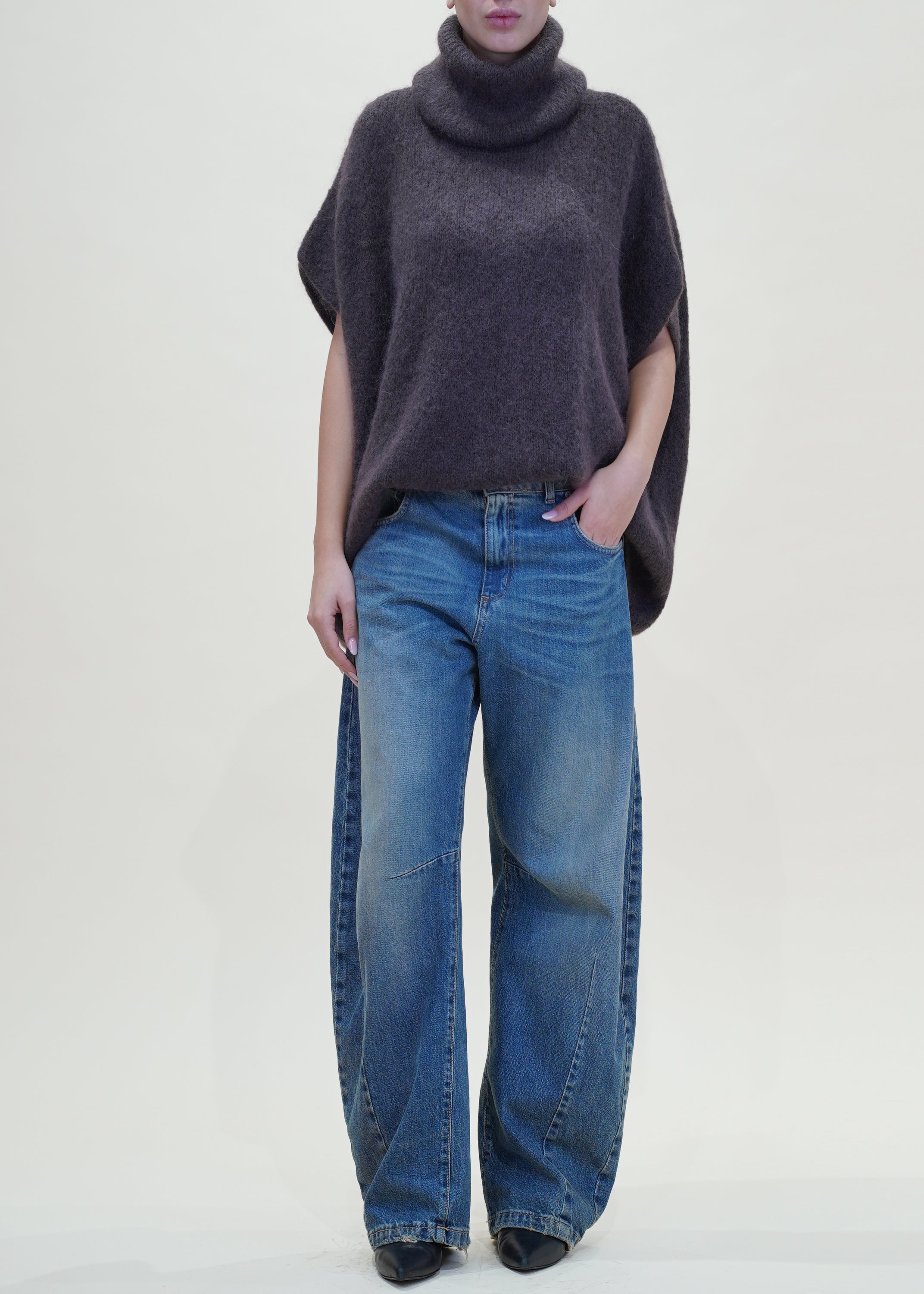 Anì - Maglia collo ciambella in mohair - MORO
