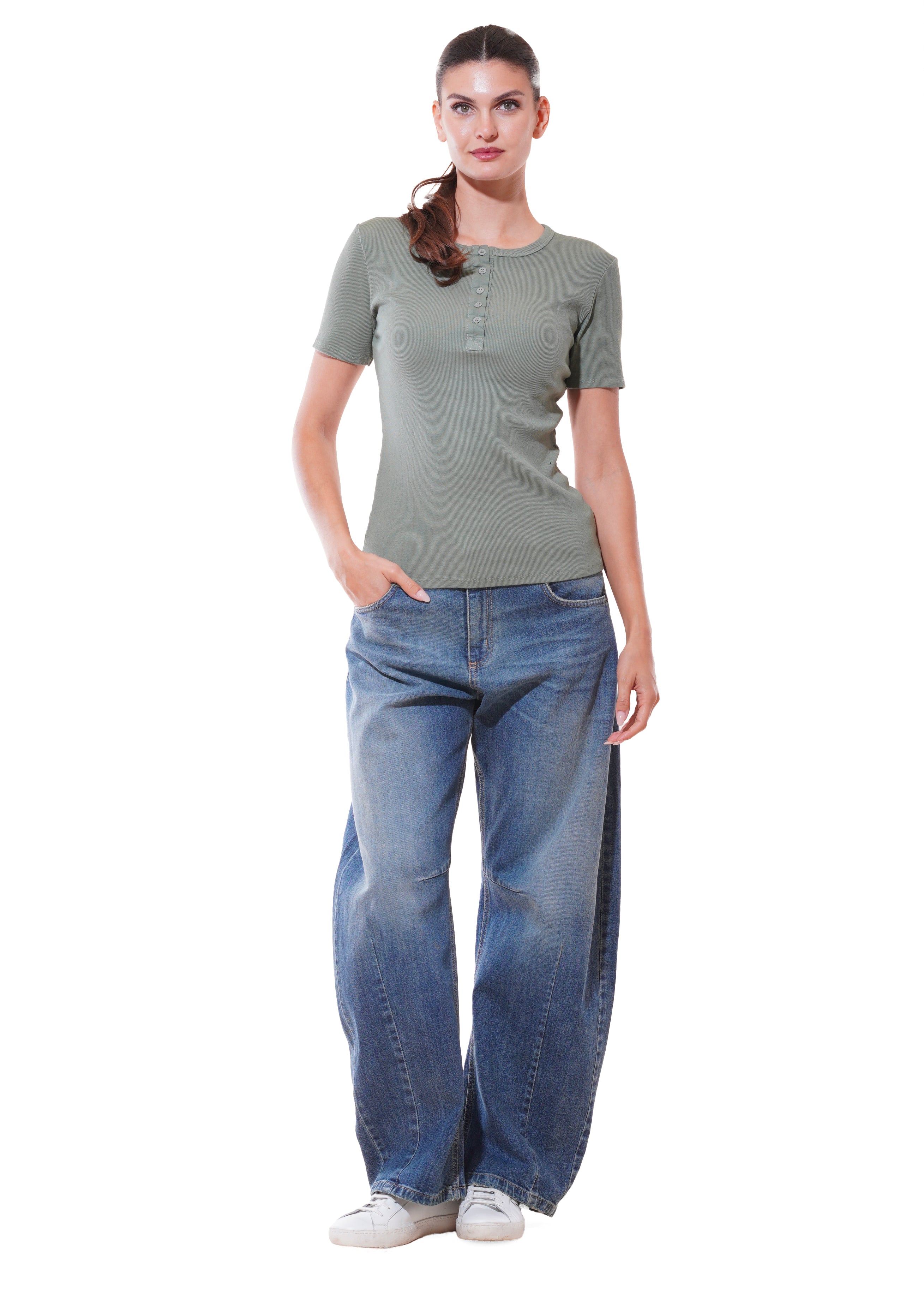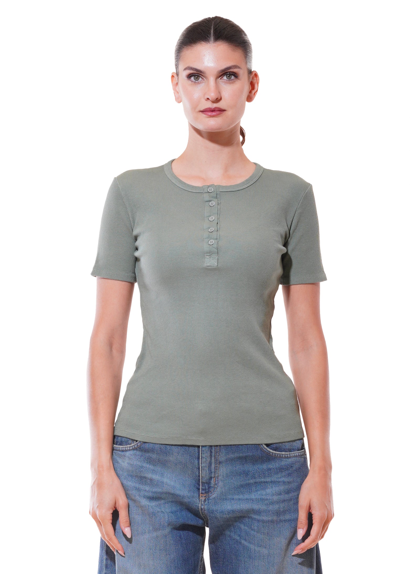 Motel - Maglia chester mezza manica - VERDE MILITARE