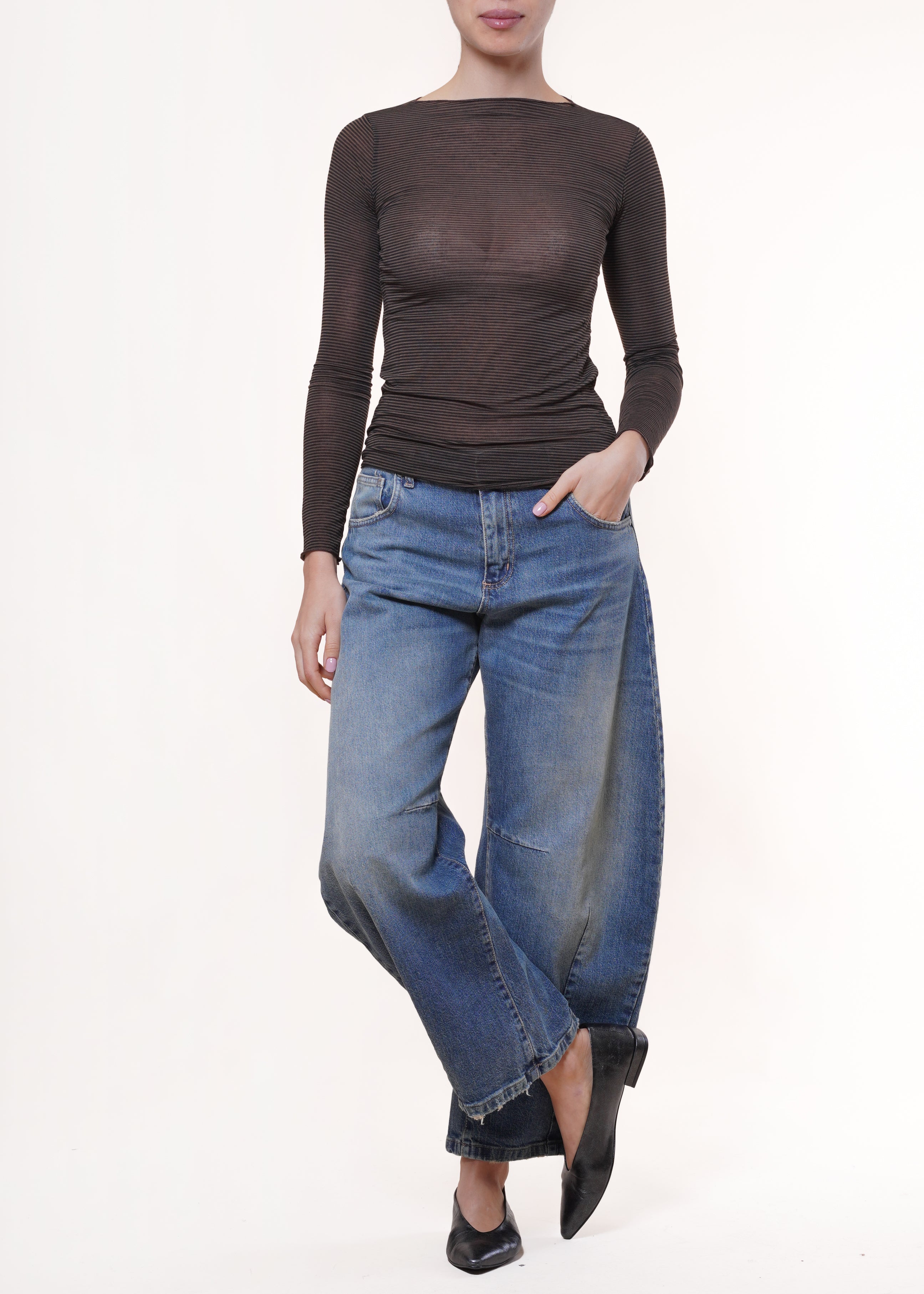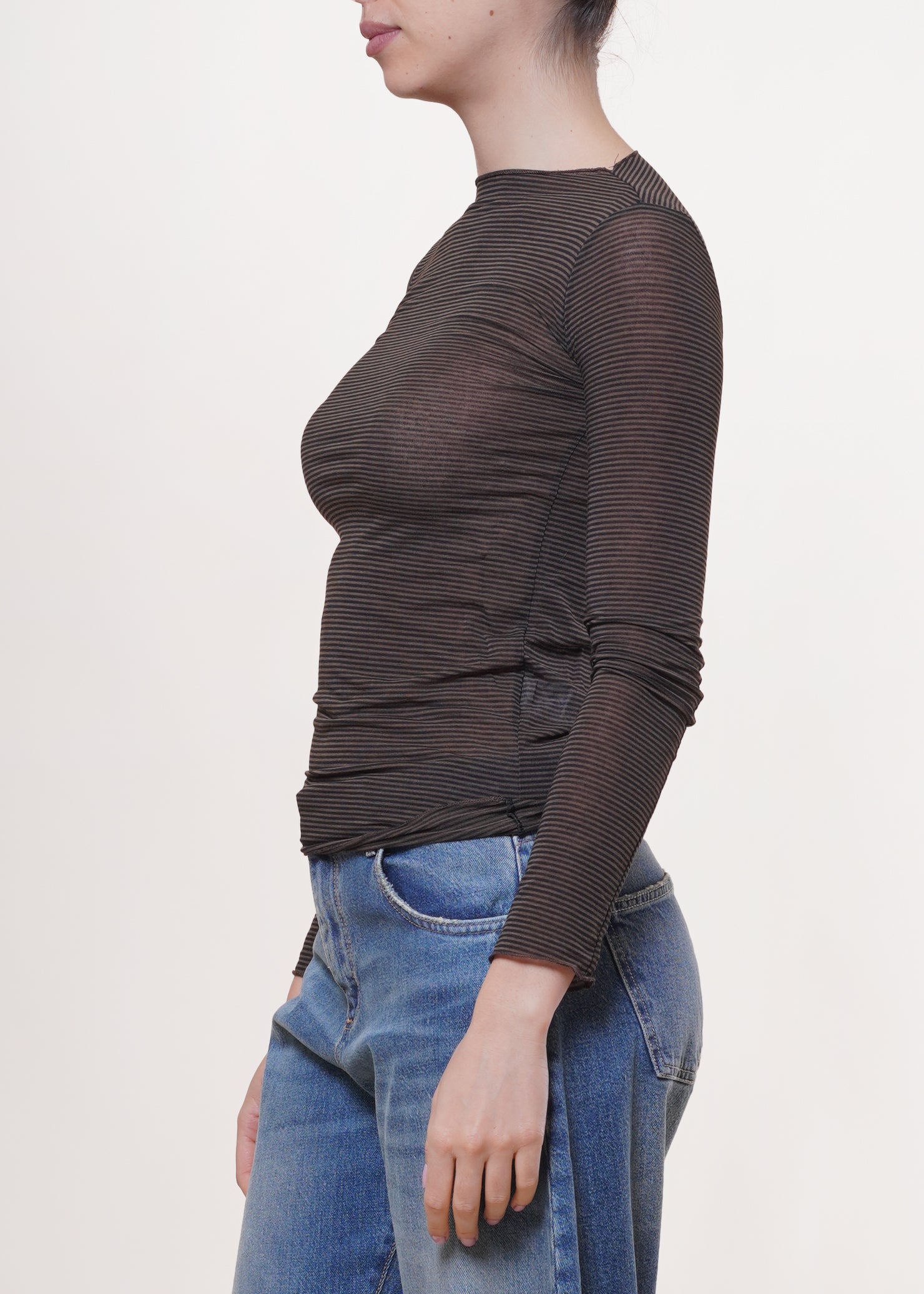 Anì - Cachemirina a righe scollo barca - CAMEL/MORO
