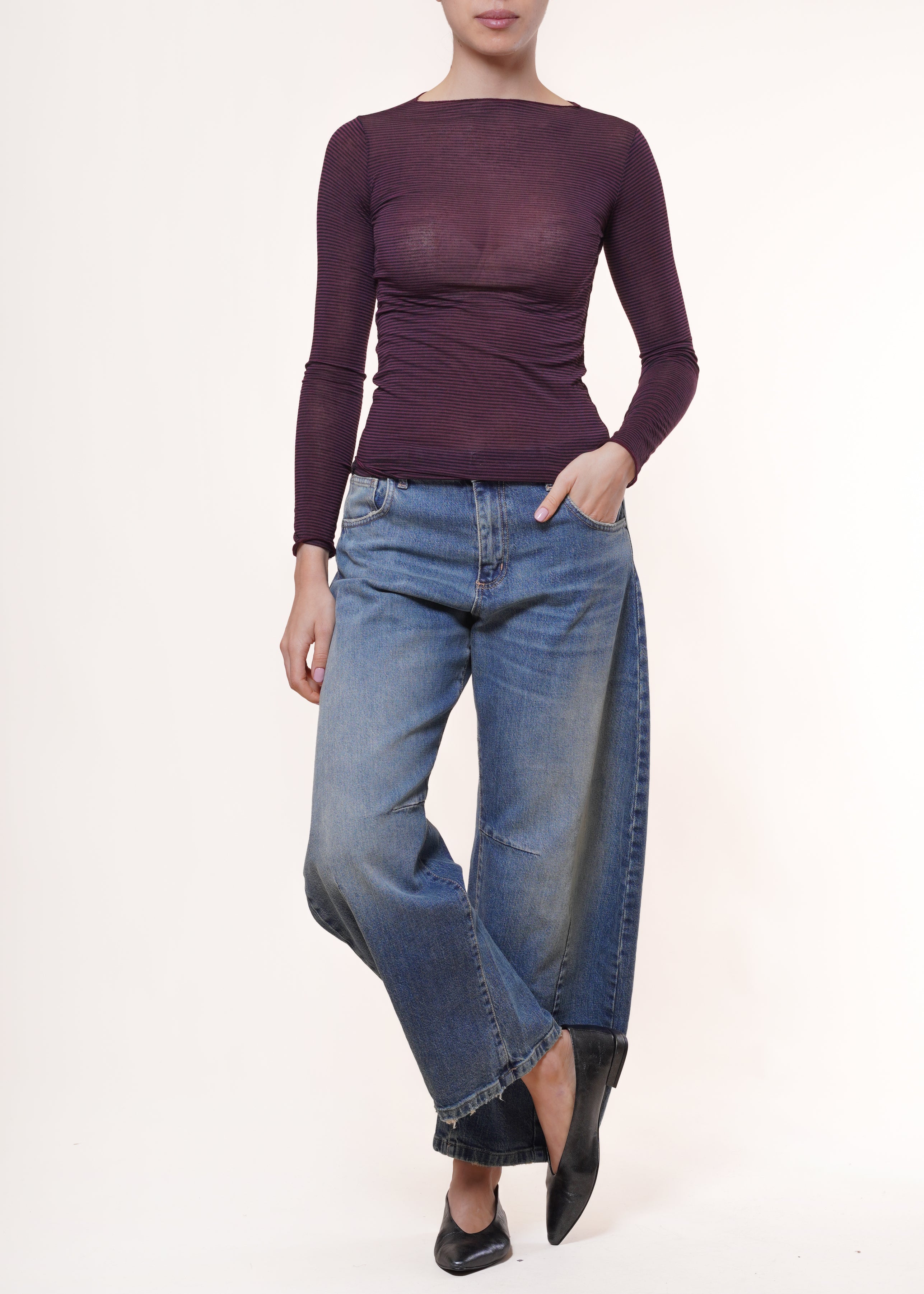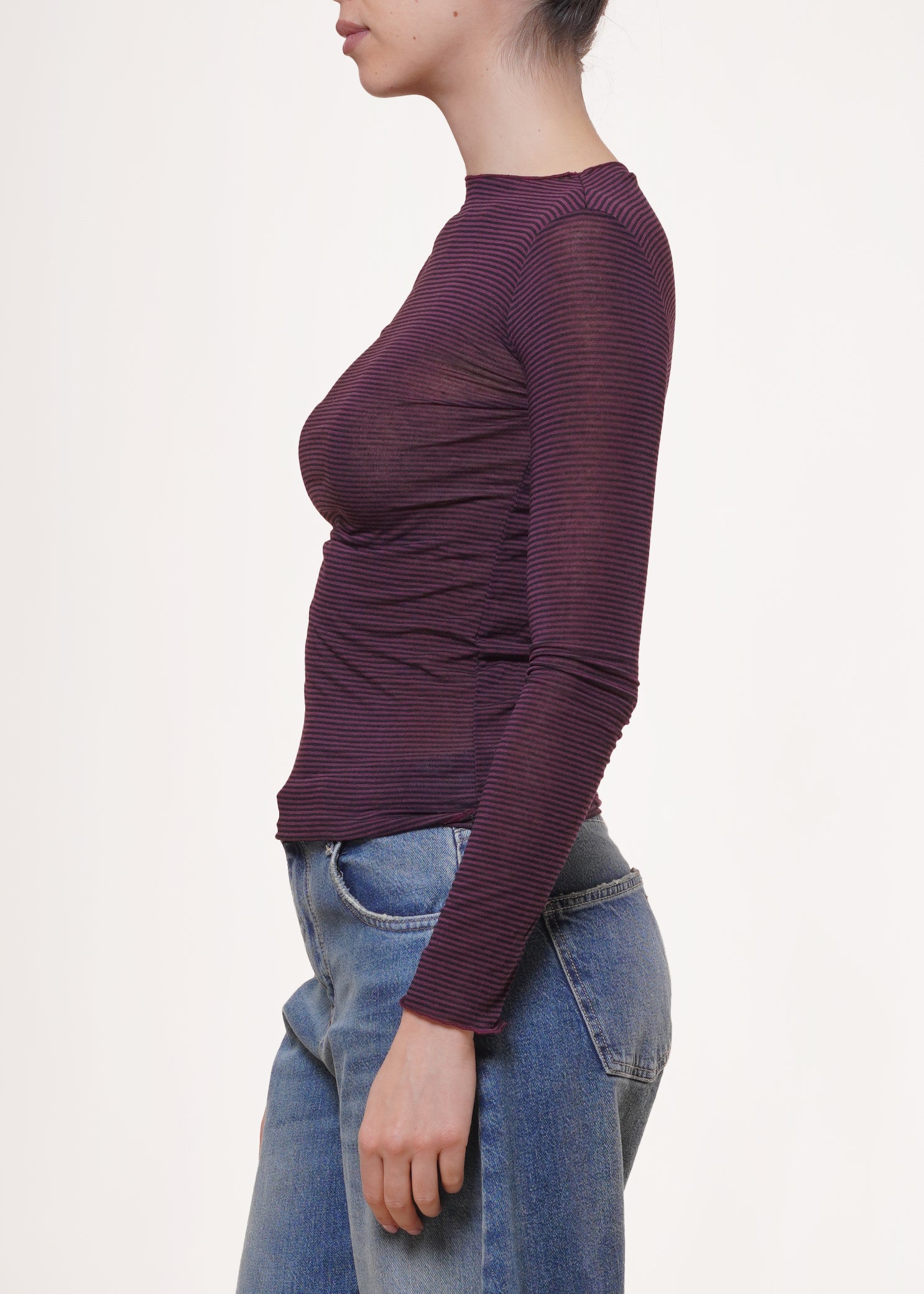 Anì - Cachemirina a righe scollo barca - NERO/VINO
