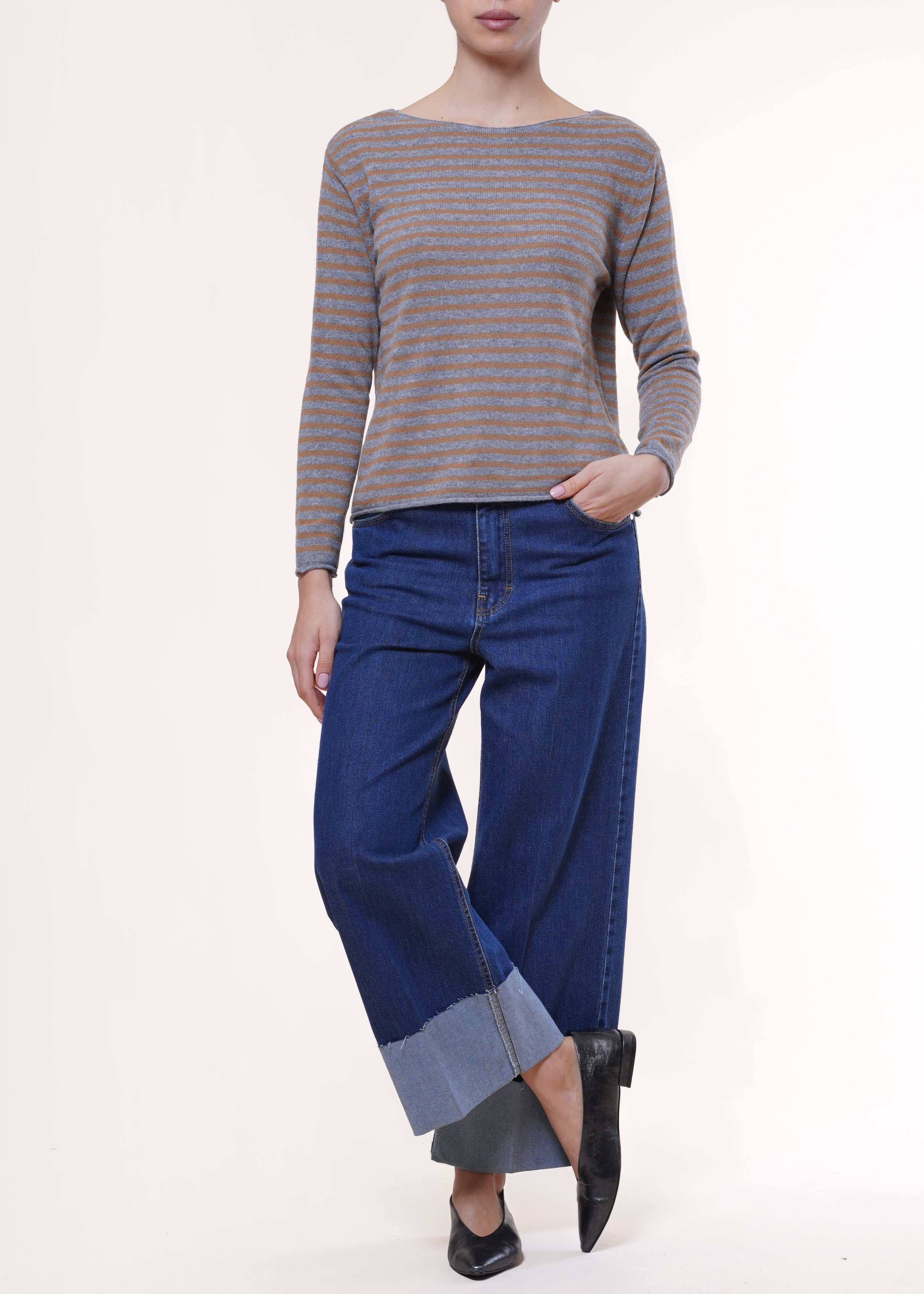 Anì - Maglia a righe misto cachemire e lana - GRIGIO/CAMEL