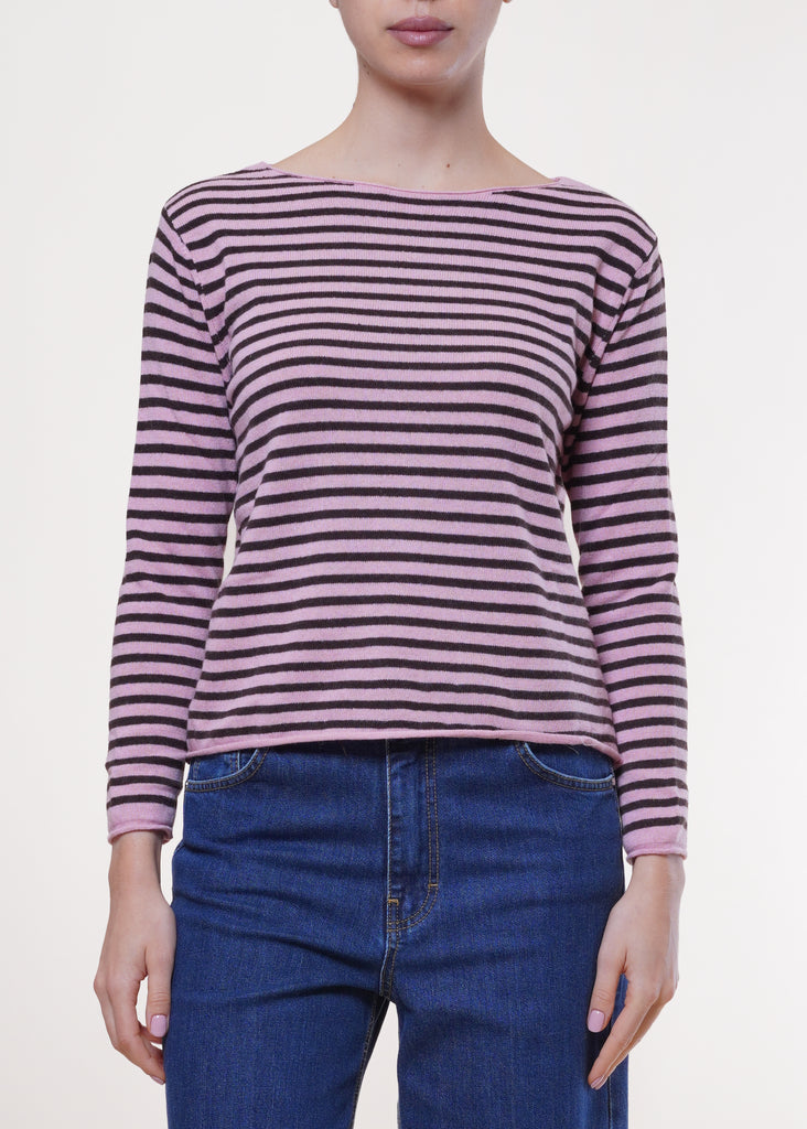 Anì - Maglia a righe misto cachemire e lana - MORO/ROSA