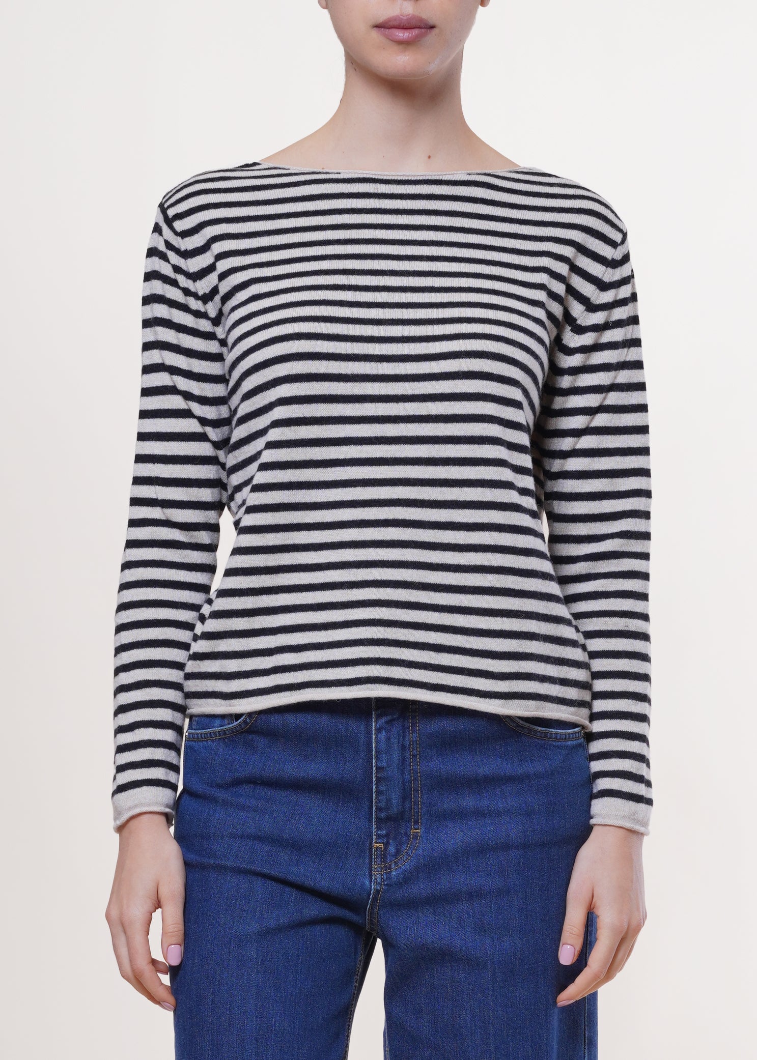 Anì - Maglia a righe misto cachemire e lana - NERO/BEIGE