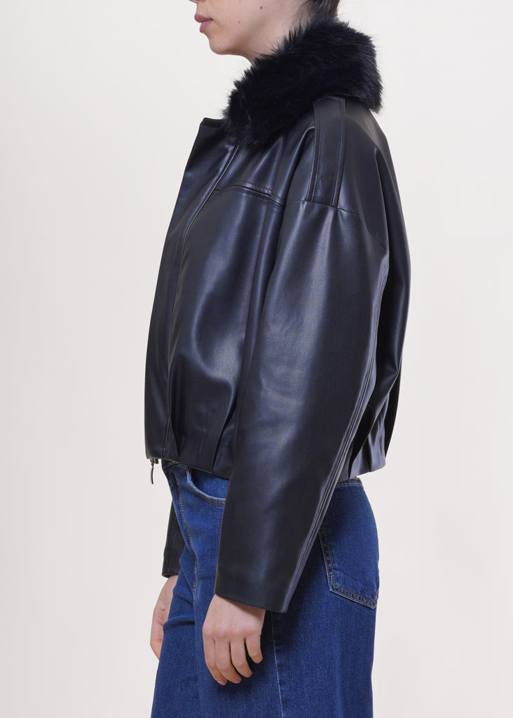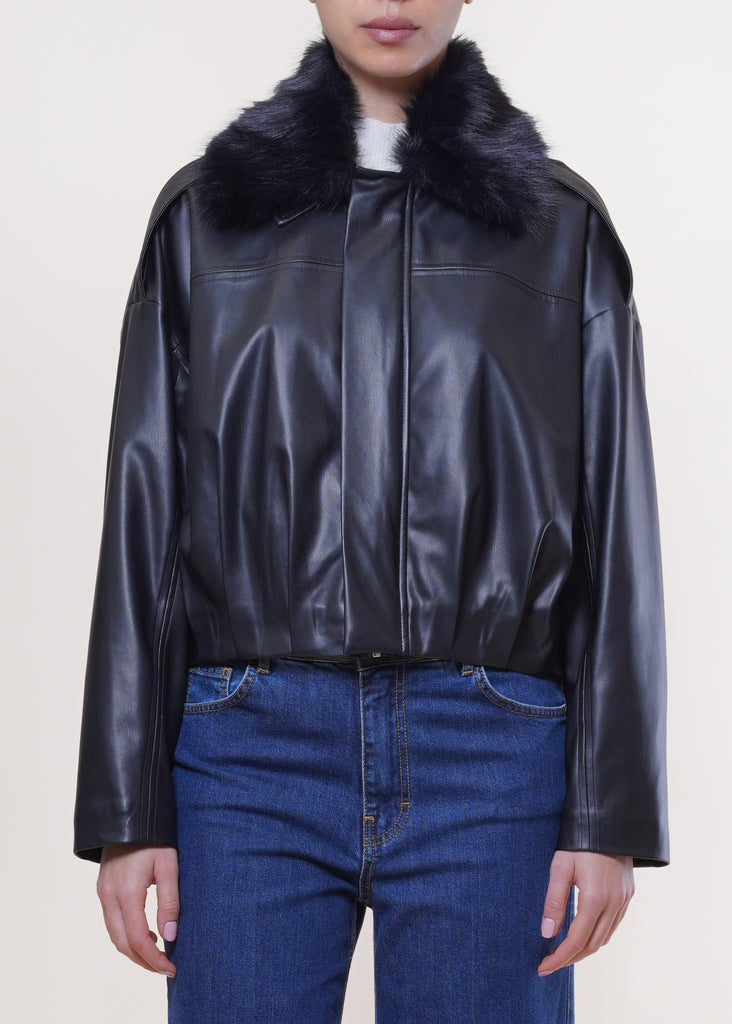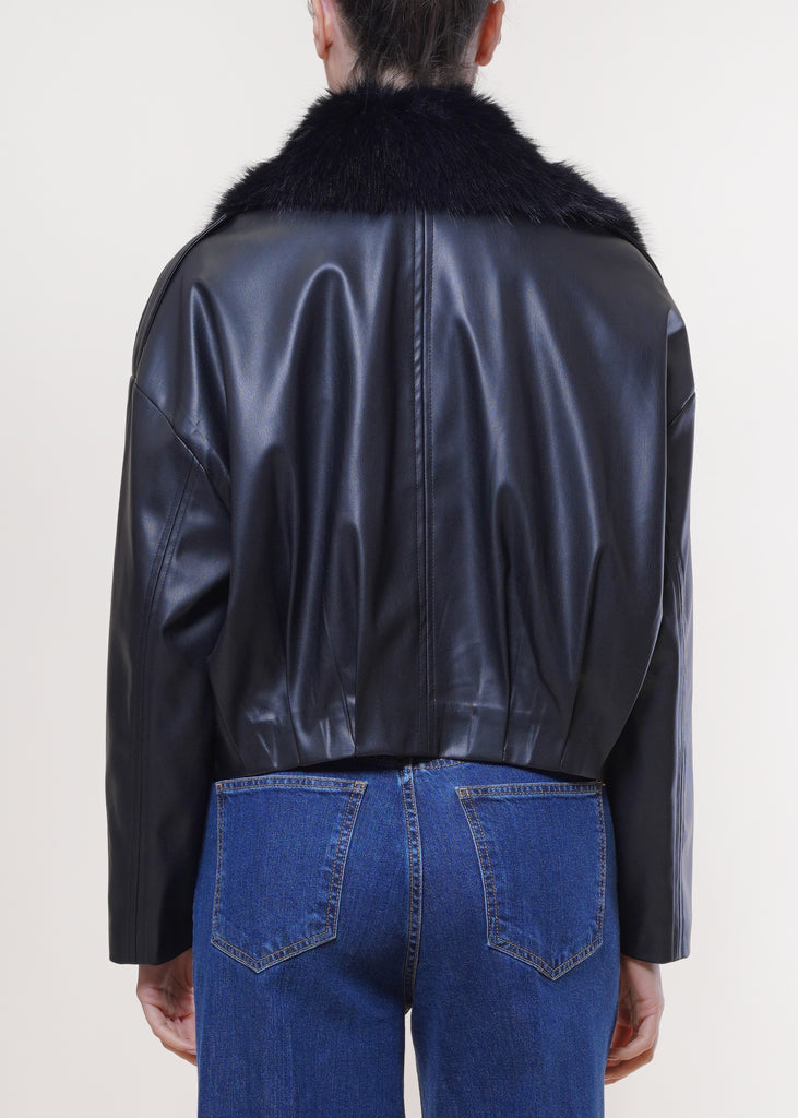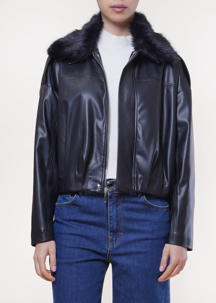 Susy MIX - Giacca bomber in ecopelle con pelliccia - NERO