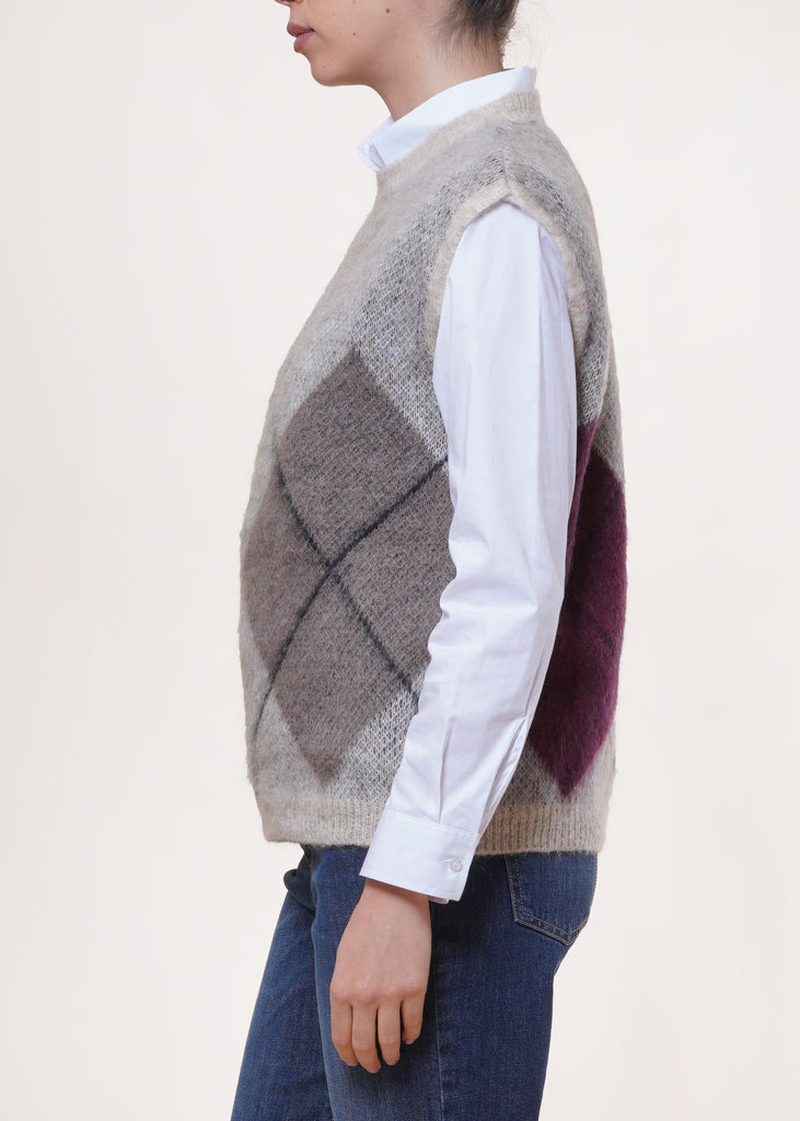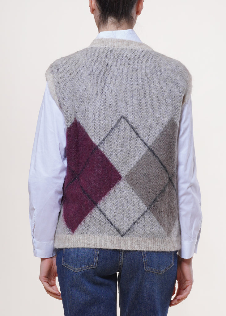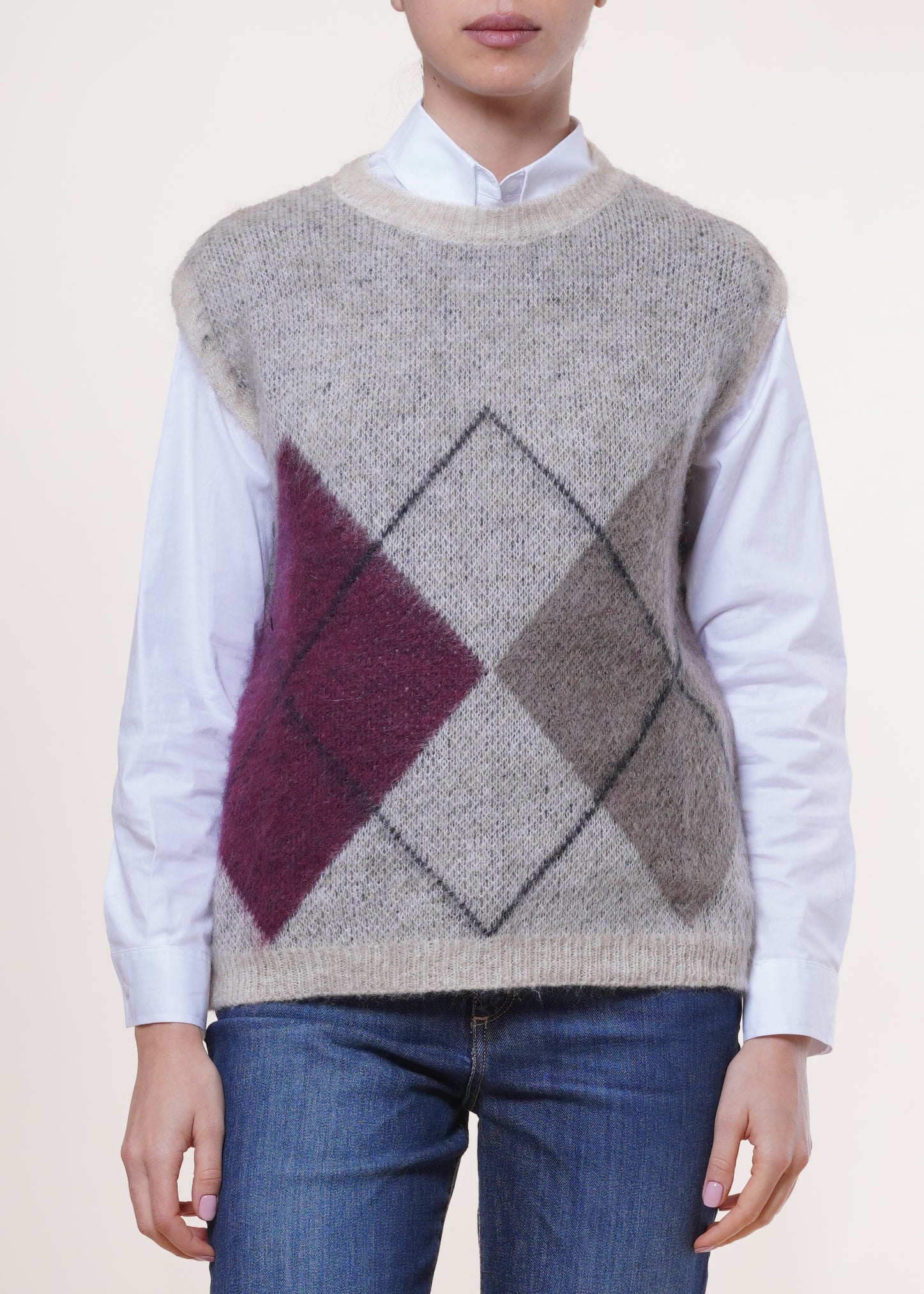 Susy Mix - Gilet in mohair con rombi - LATTE