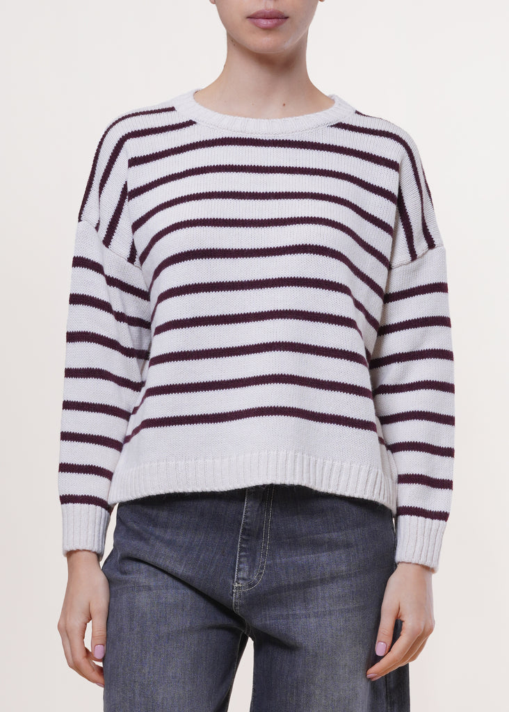 Susy Mix - Maglia a righe in misto lana - CREMA