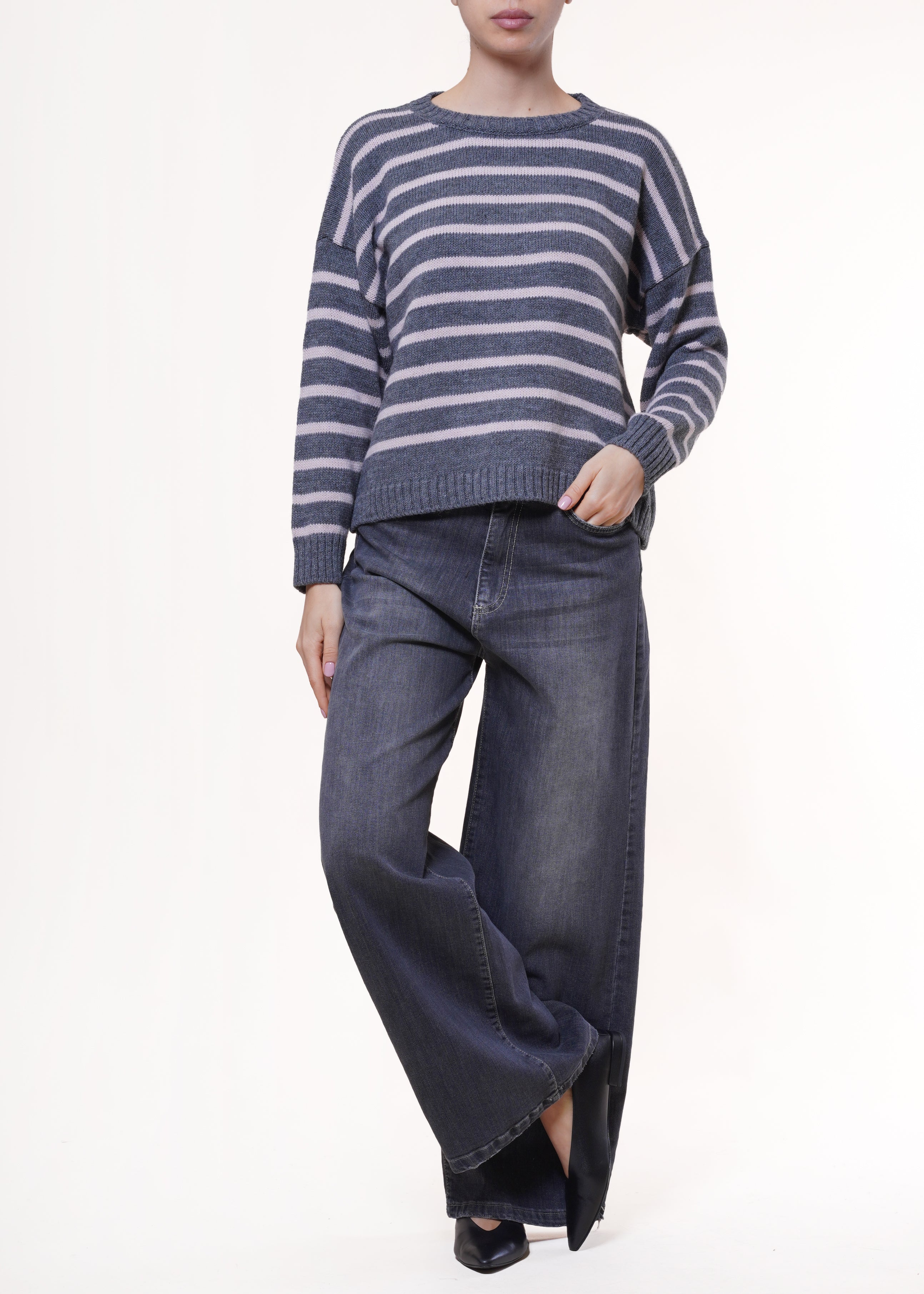Susy Mix - Maglia a righe in misto lana - GRIGIO