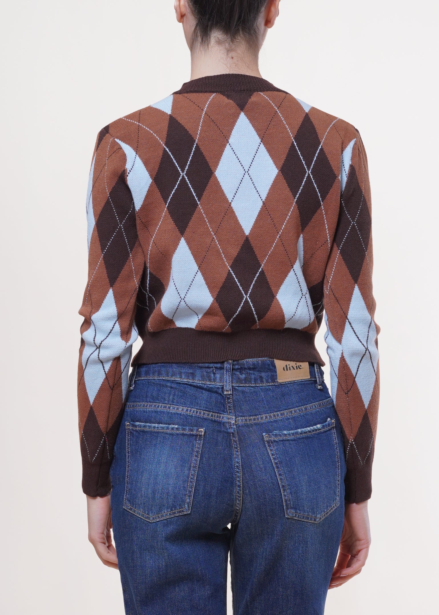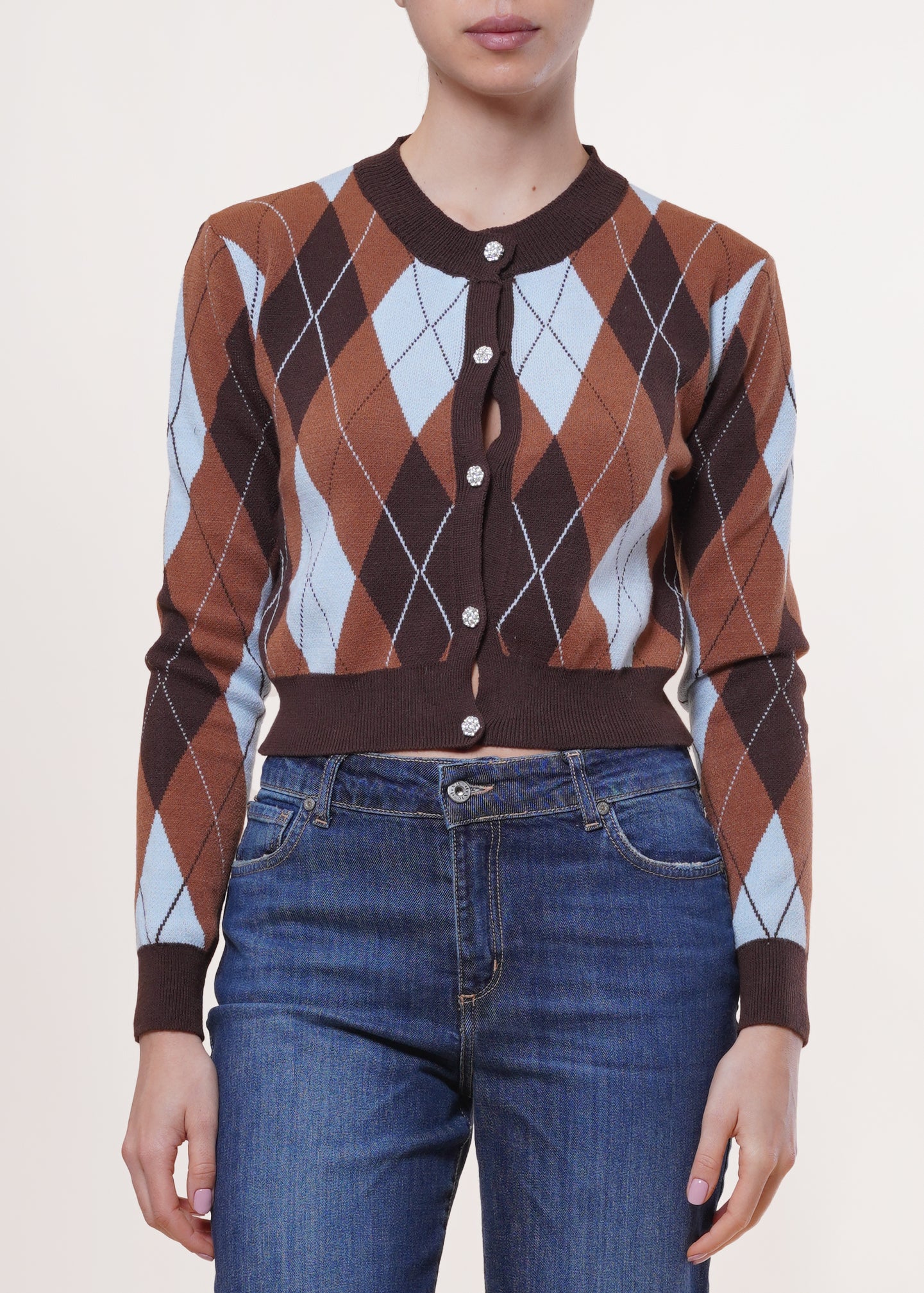 Susy mix - Cardigan a rombi con bottoni gioiello - MORO