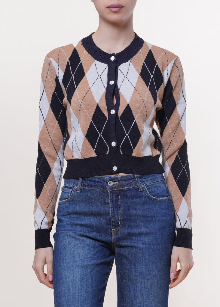 Susy mix - Cardigan a rombi con bottoni gioiello - NERO