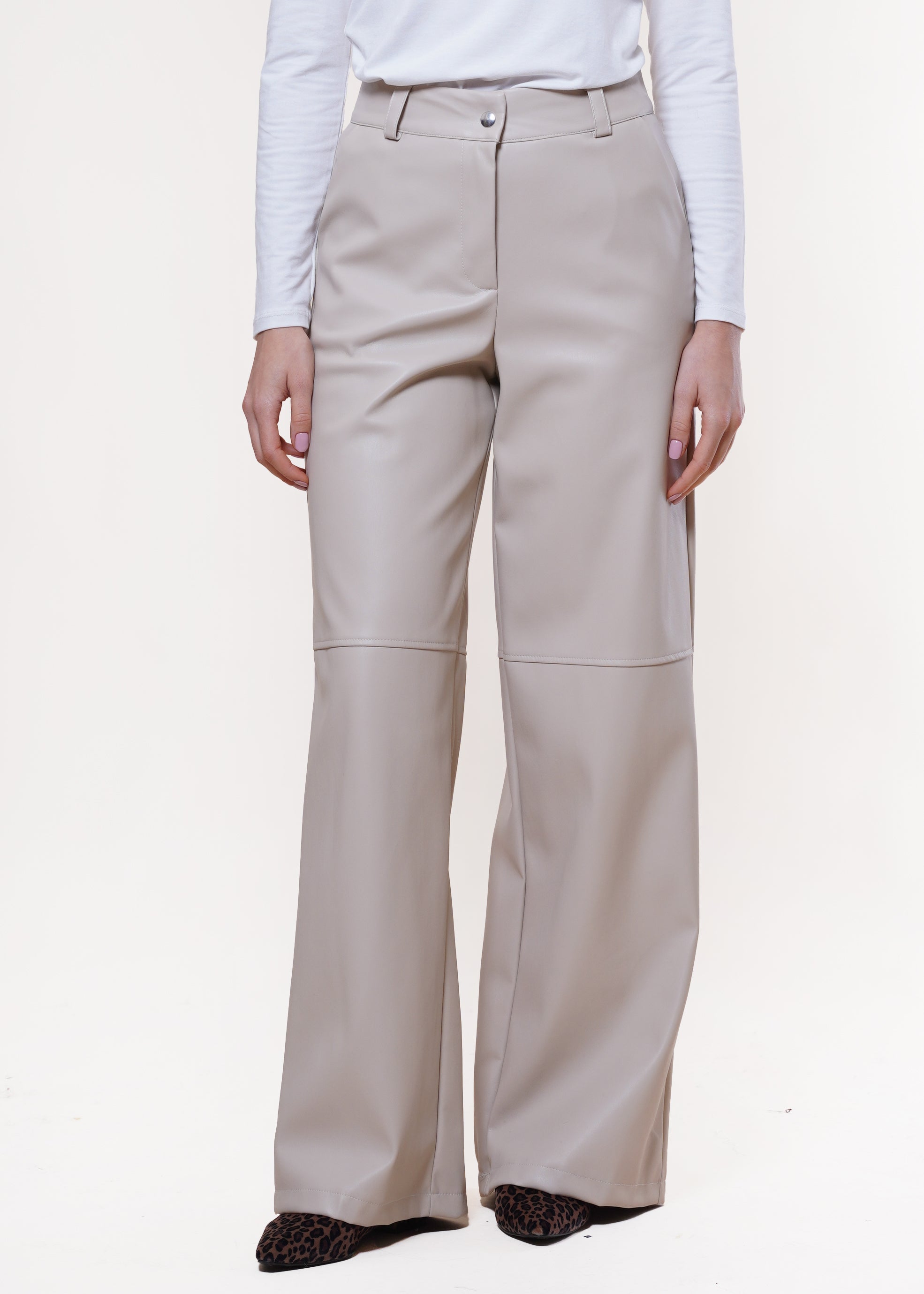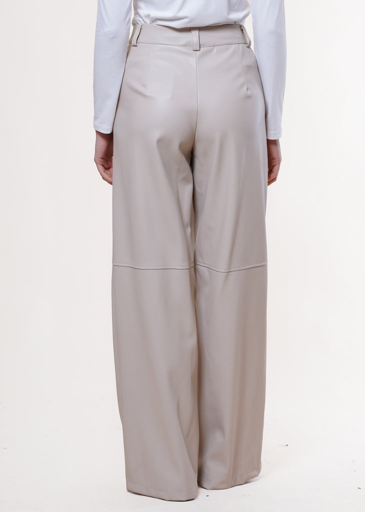 Dixie - Pantalone palazzo in ecopelle - GESSO