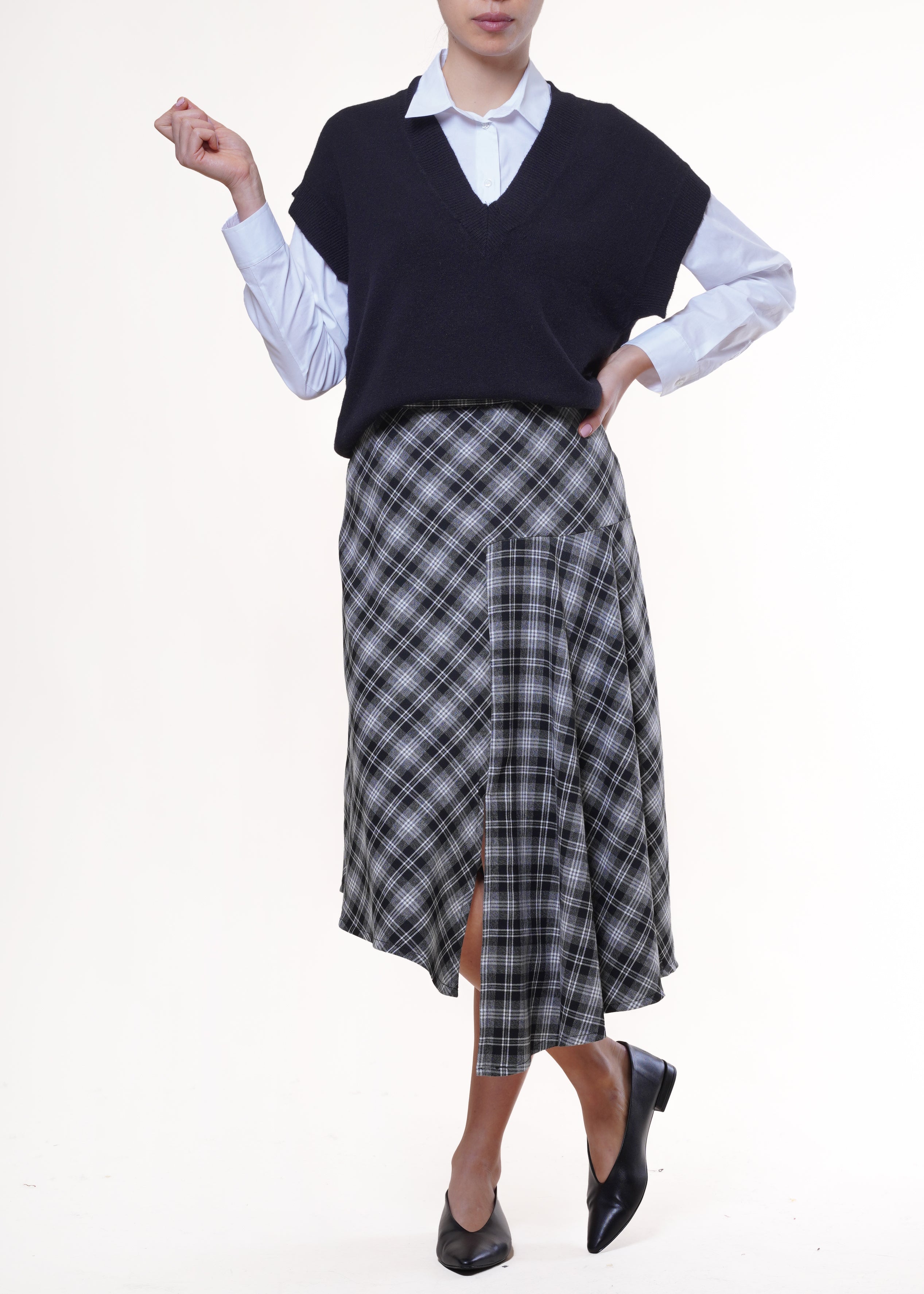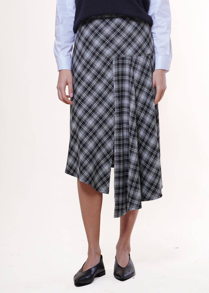 Dixie - Gonna asimmetrica stampa check - GRIGIO